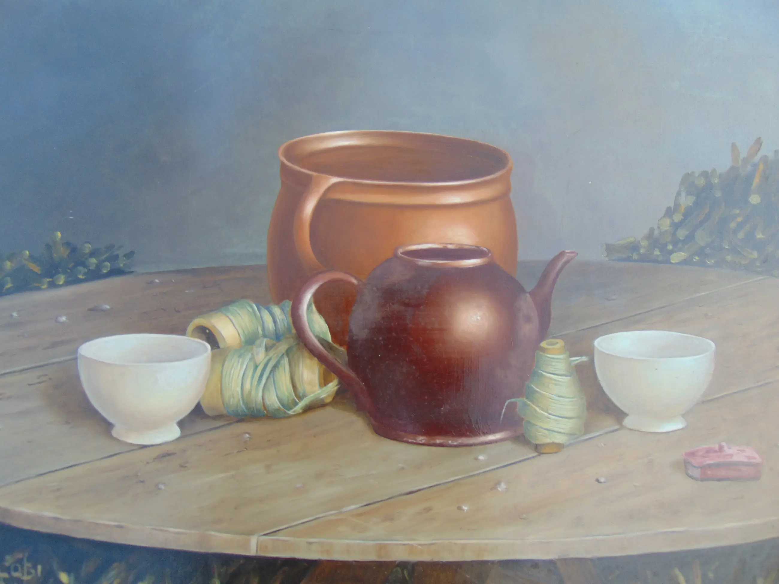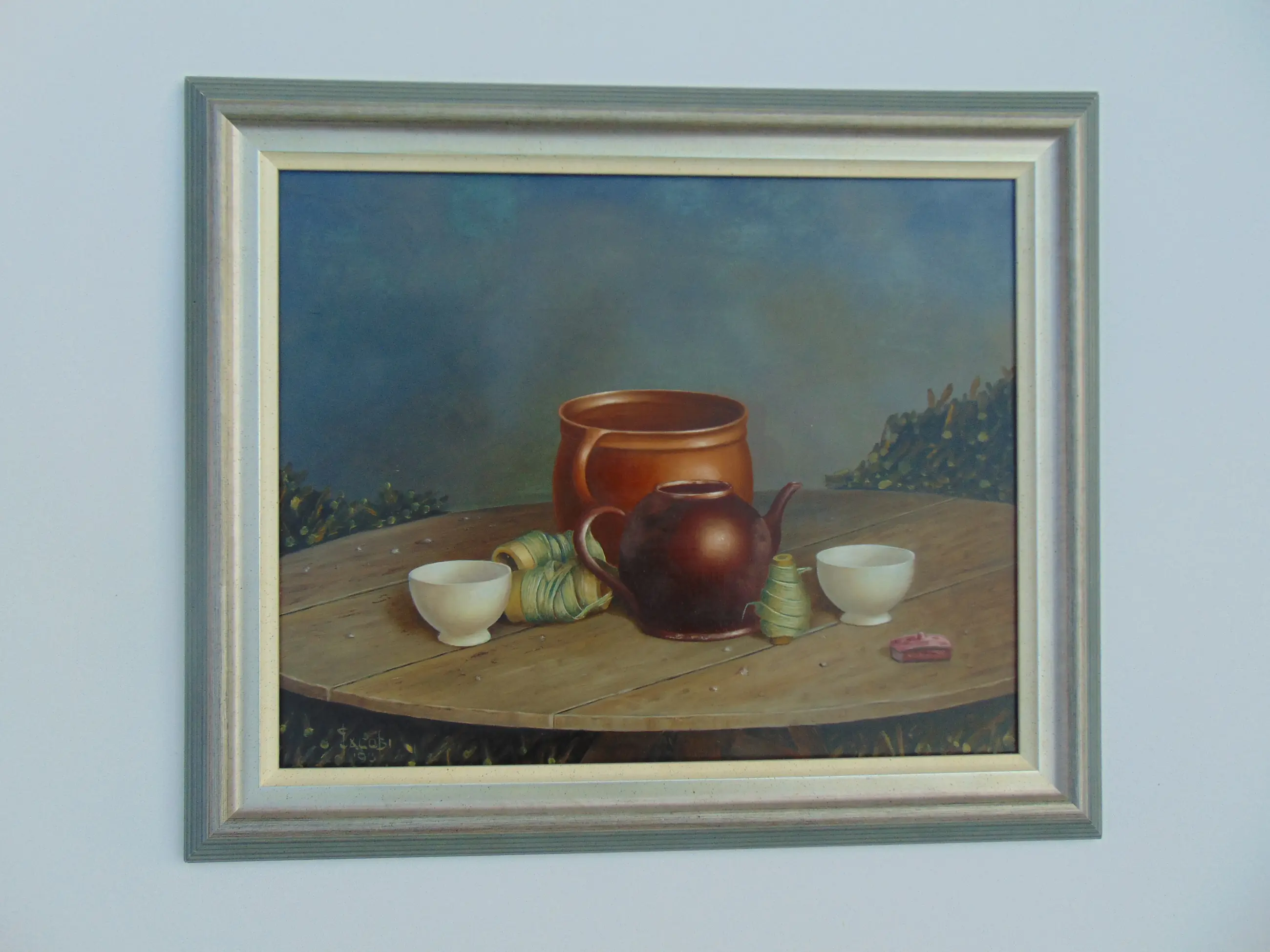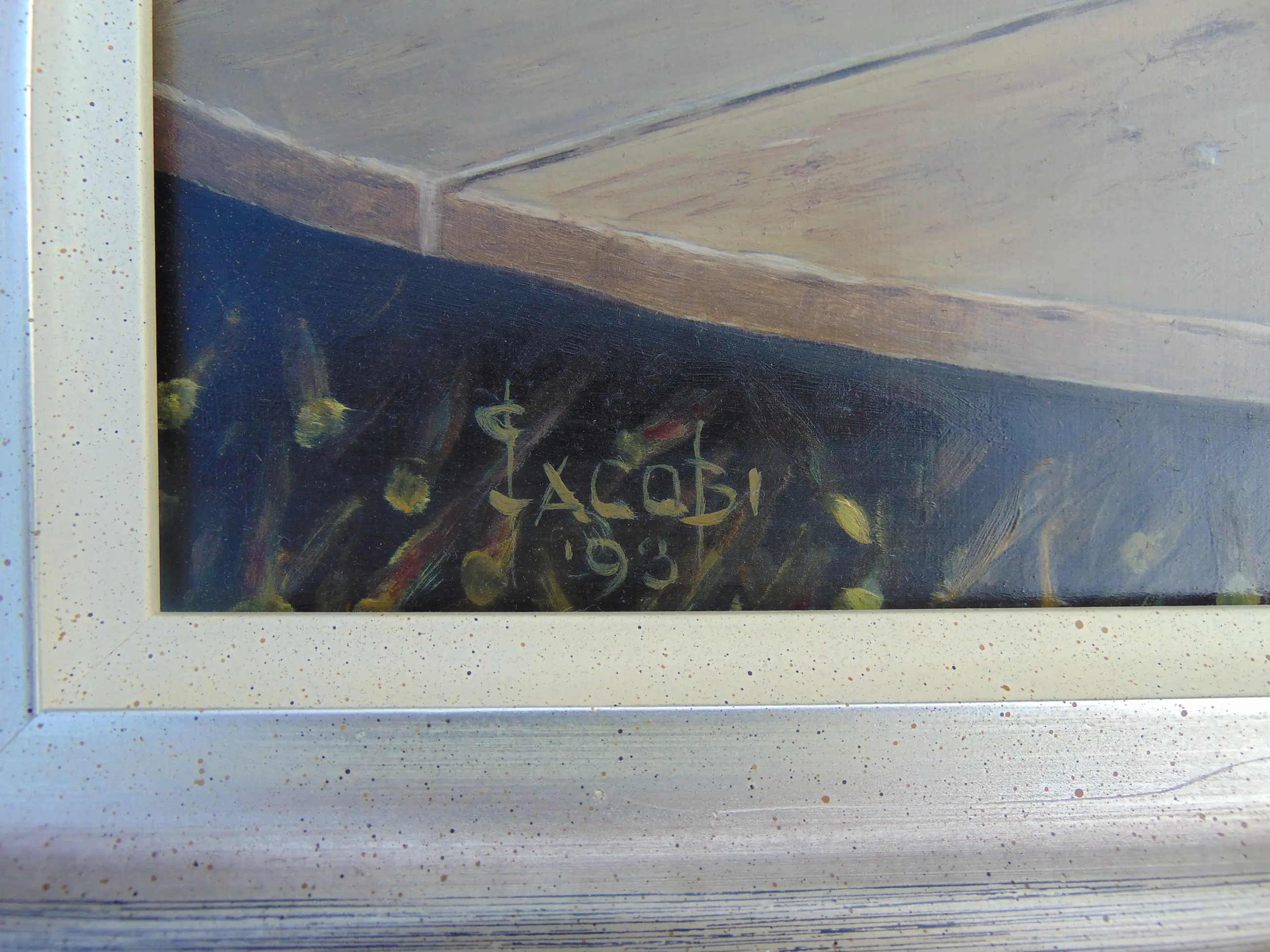 Dit werk is linksonder gesigneerd. Het werk zit in een houten lijst.