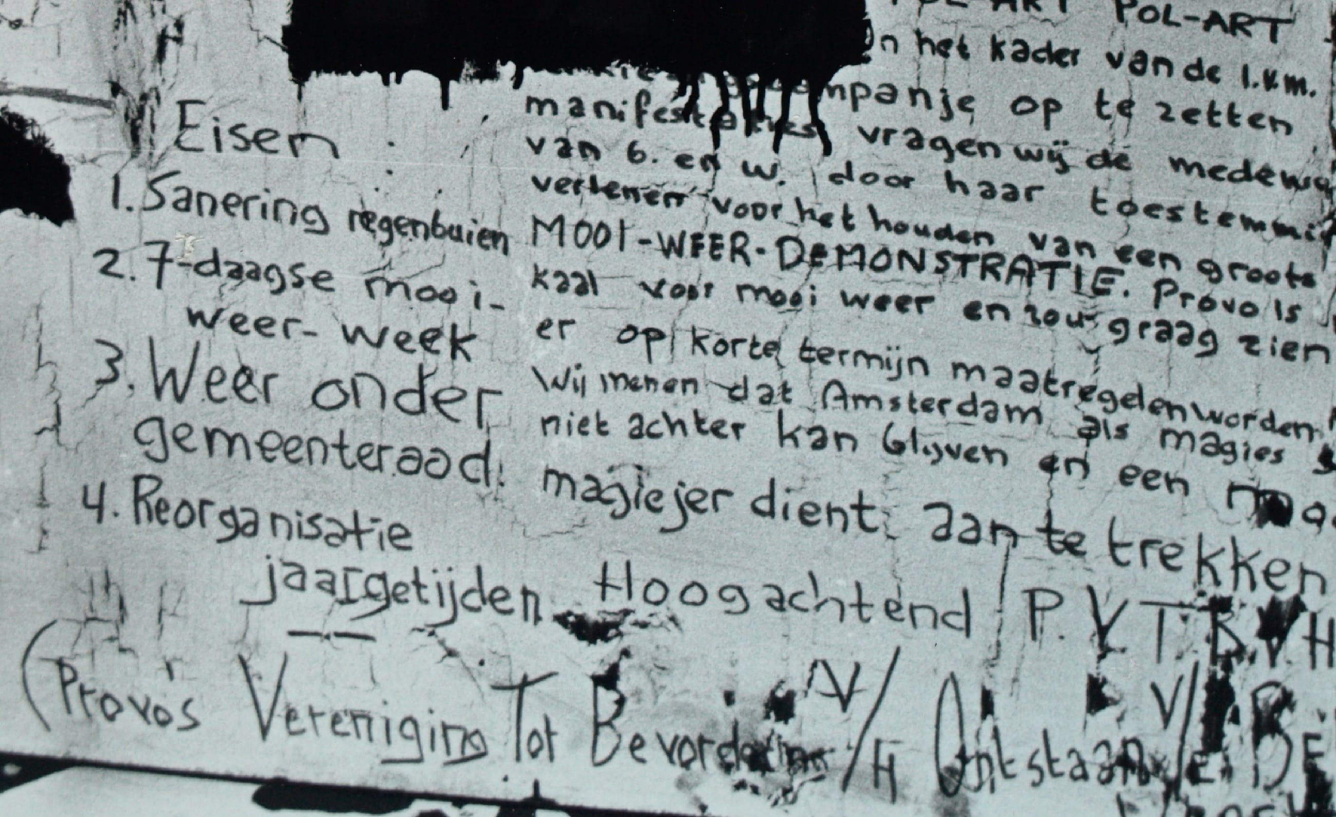 De anarchistische protestbeweging PROVO, opgericht in 1965, won in 1966 één zetel in de Amsterdamse Gemeenteraad. De volgende vier jaar vertegenwoordigden Bernhard de Vries, Luud Schimmelpenninck, Irene van de Wetering en Roel van Duijn ieder één jaar Provo in de raad. De verkiezing in de gemeenteraad betekende tevens het einde van de protestbeweging, omdat Provo nu een gevestigde politieke partij was geworden. De beweging werd op 13 mei 1967 alweer opgeheven tijdens een bijeenkomst in het Vondelpark.