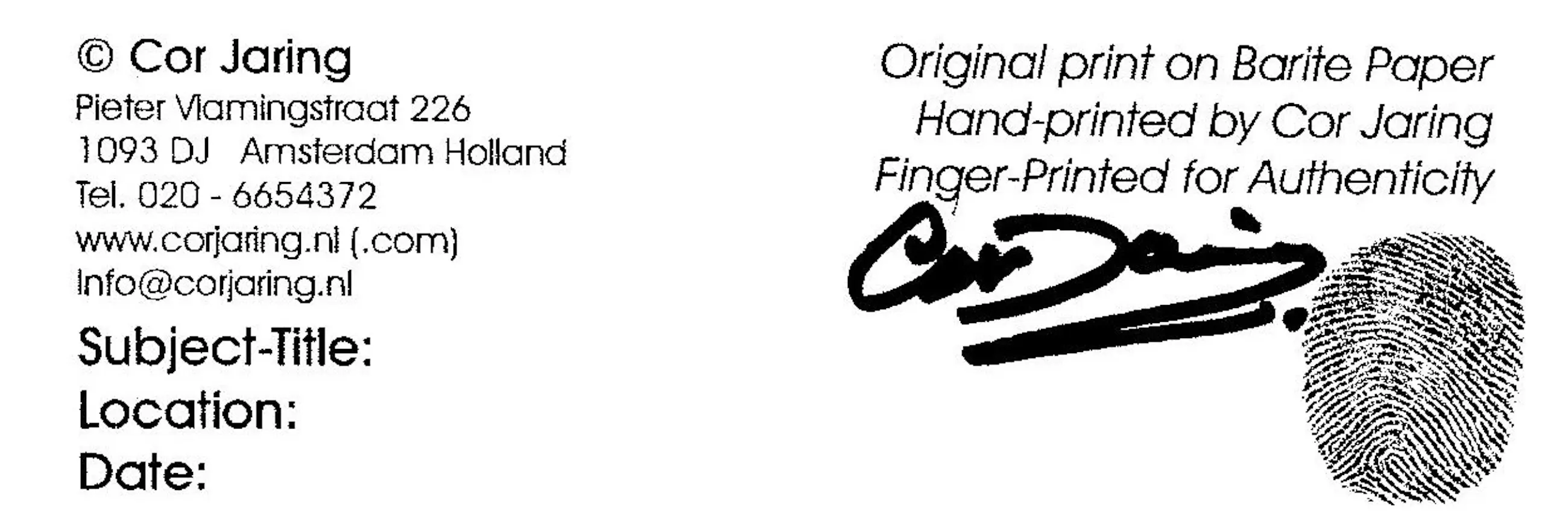 Deze foto is door Cor Jaring zelf met de hand op barietpapier afgedrukt. Het is voorzien van zijn originele handtekening én duimafdruk. Een verzamelobject.