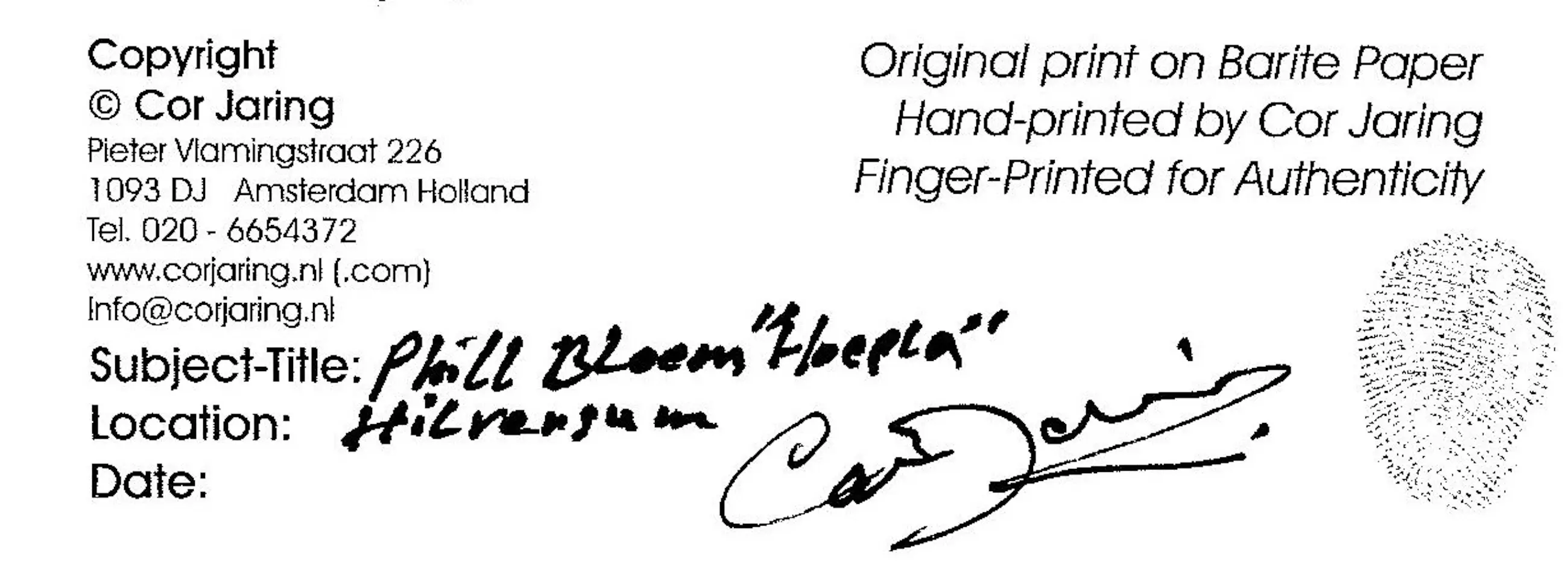 Deze foto is door Cor Jaring zelf met de hand op barietpapier afgedrukt. Het is voorzien van zijn originele handtekening én duimafdruk. Een verzamelobject.