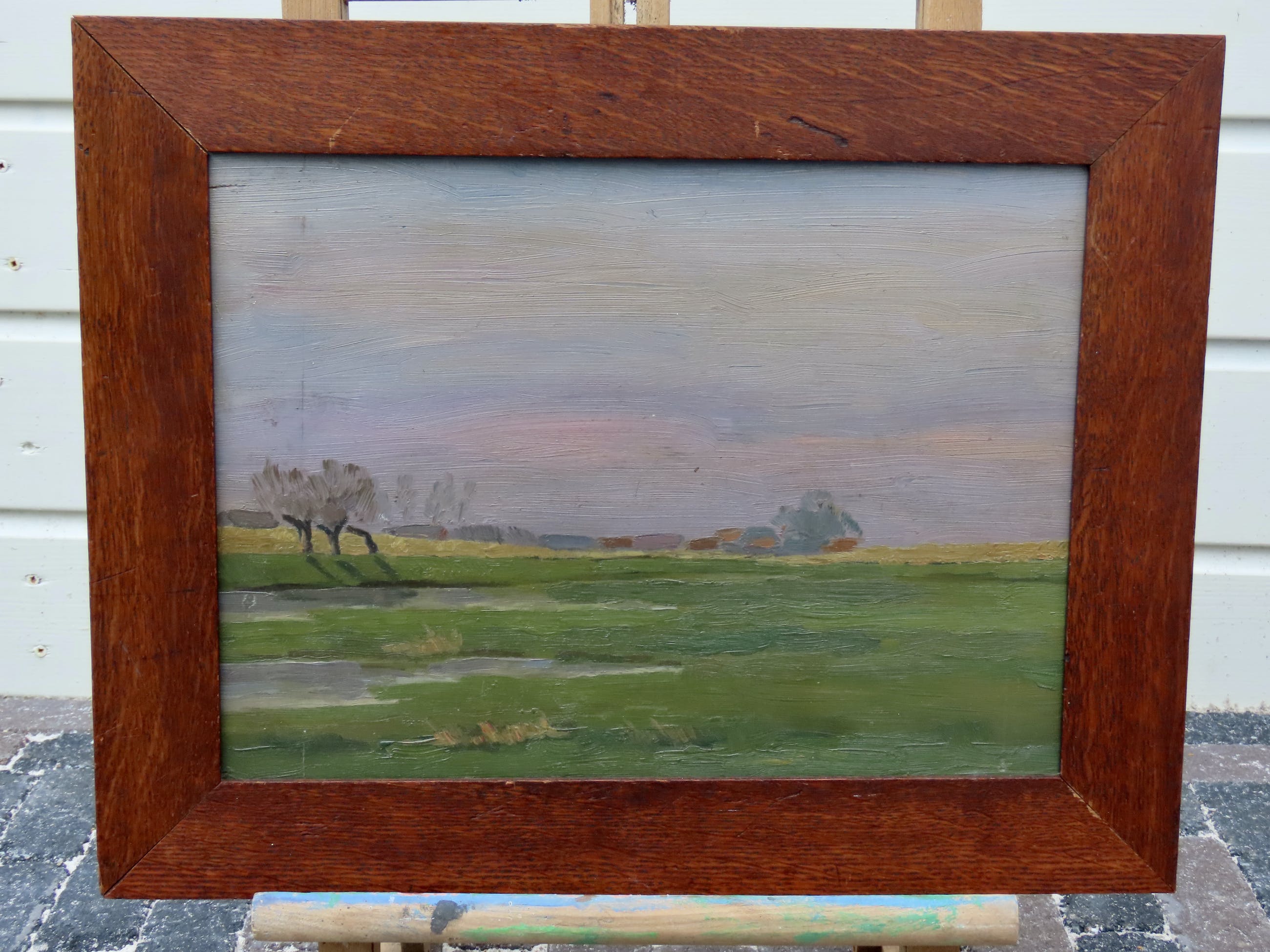 Algemene conditie is goed te noemen. Er loopt een horizontaal streepje over het werk, zie foto's, dat zou kunnen worden verwijderd. Wat beduimeld, m.a.w. het schilderij zou moeten worden schoongemaakt. Hiermee is rekening gehouden bij het bepalen van de prijs.