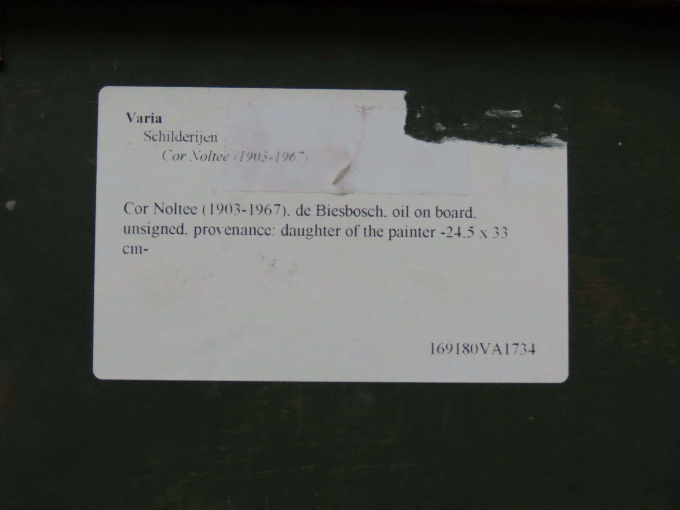 Cor Noltee kreeg zijn opleiding aan de Haagse kunstacademie, waar hij de invloed van Willem de Zwart (1862-1931) onderging. In Dordrecht werd hij een bekende figuur, zowel door werk als door zijn bohémienachtig voorkomen. Noltee stond aan de basis van een lokale herleving van het impressionisme en werd wel ‘de Dordtse Breitner’ genoemd, vanwege zijn overeenkomst met Breitner qua stijl en onderwerpen.Veelal schilderde hij de oude stad van Rotterdam en Dordrecht en het rivierlandschap in de omgeving. Rond 1961 sloeg Noltee een andere richting in en zijn laatste werken hebben een uitgesproken expressionistisch karakter.