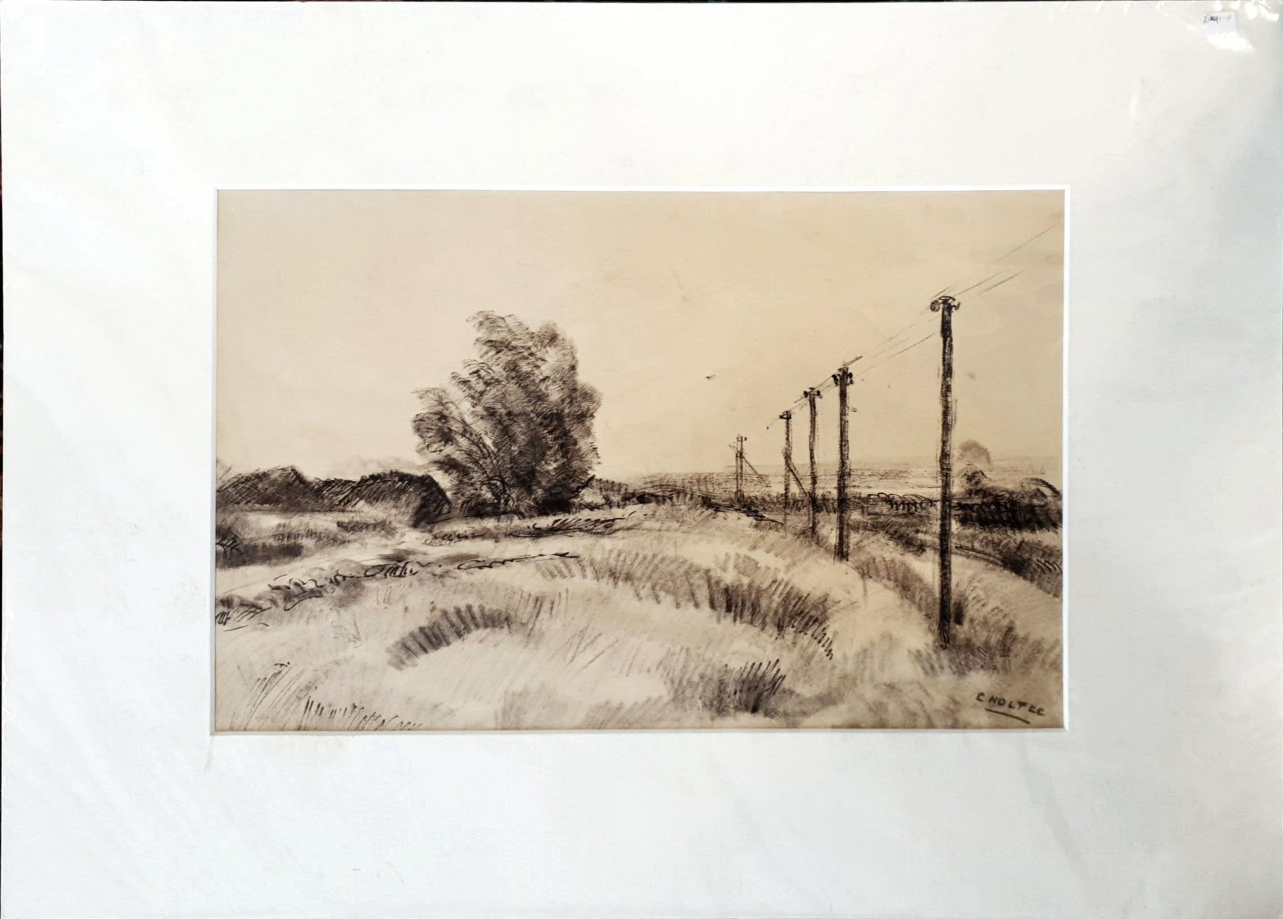 | Papier en passe-partout verkleurd door de tijd. Netjes verpakt in plastic. | |