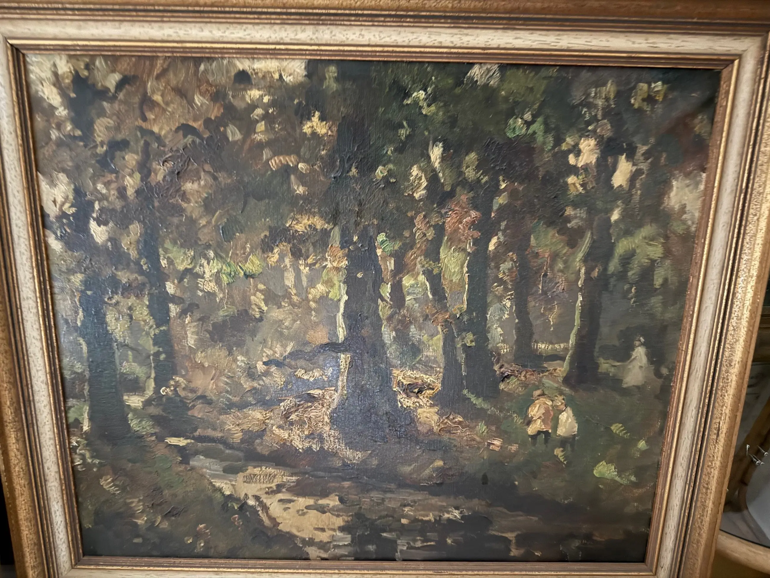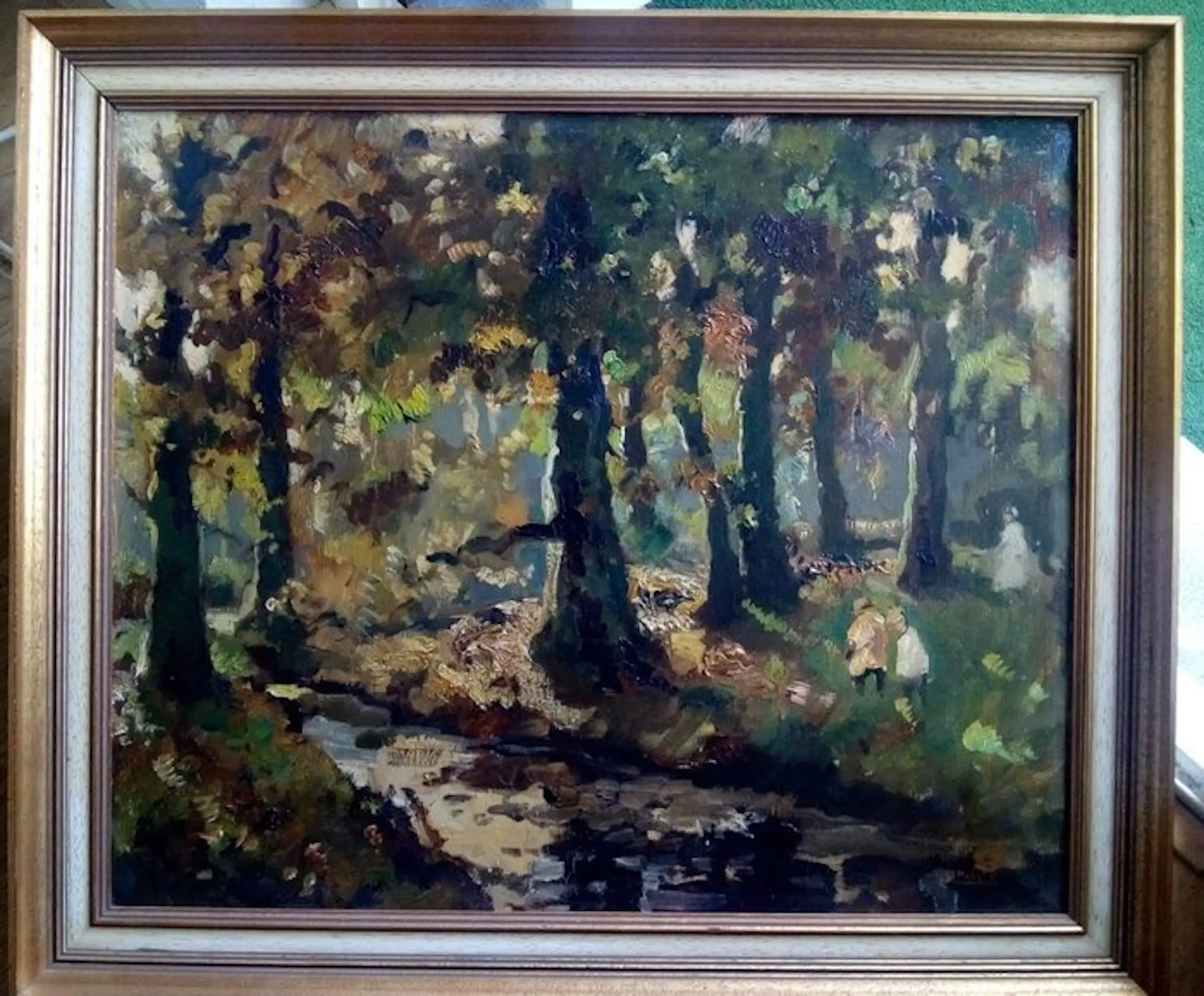 Zeer fraai impressionistisch olieverf op doek met als voorstelling een Boslandschap met kabbelend beekje,