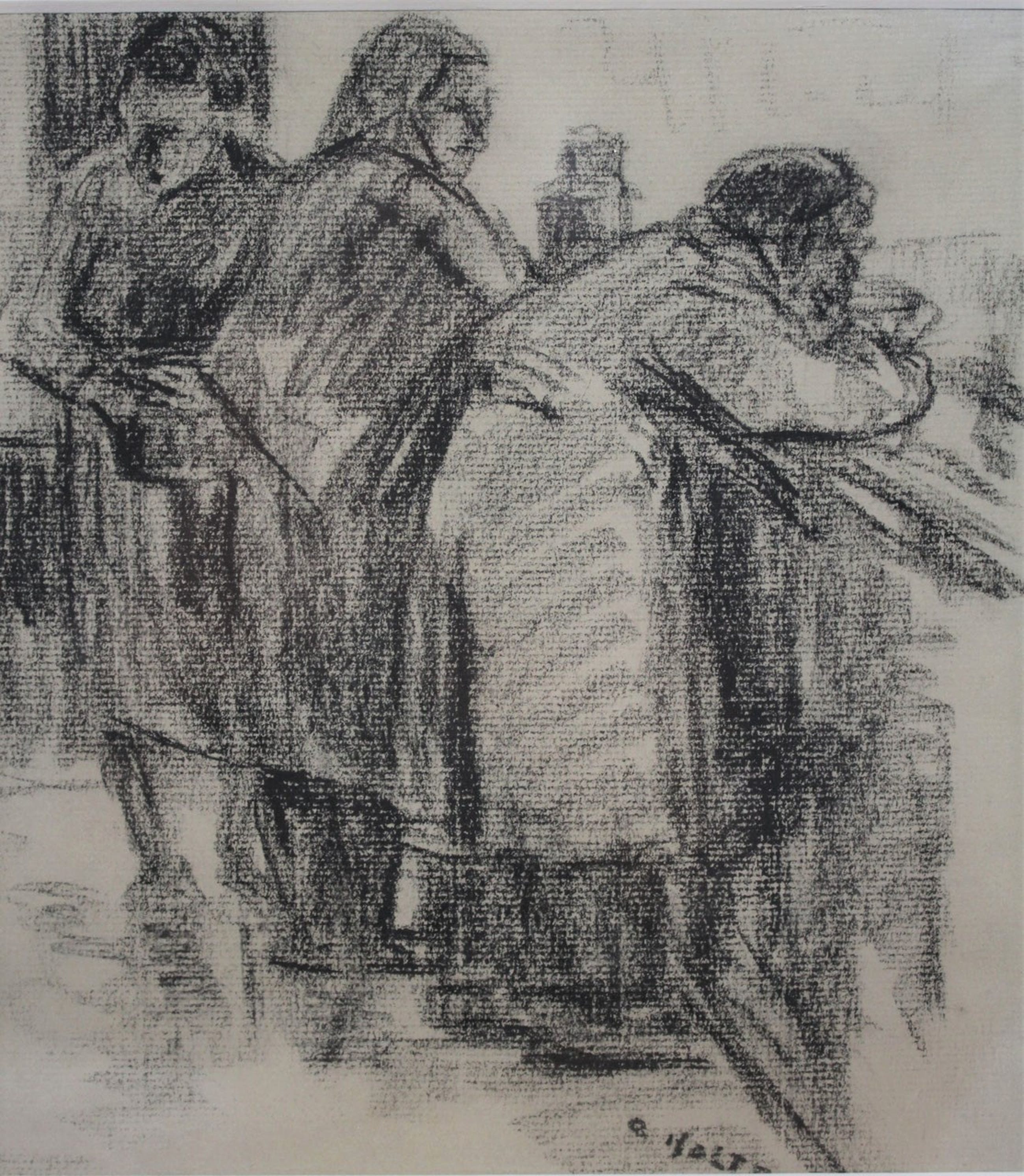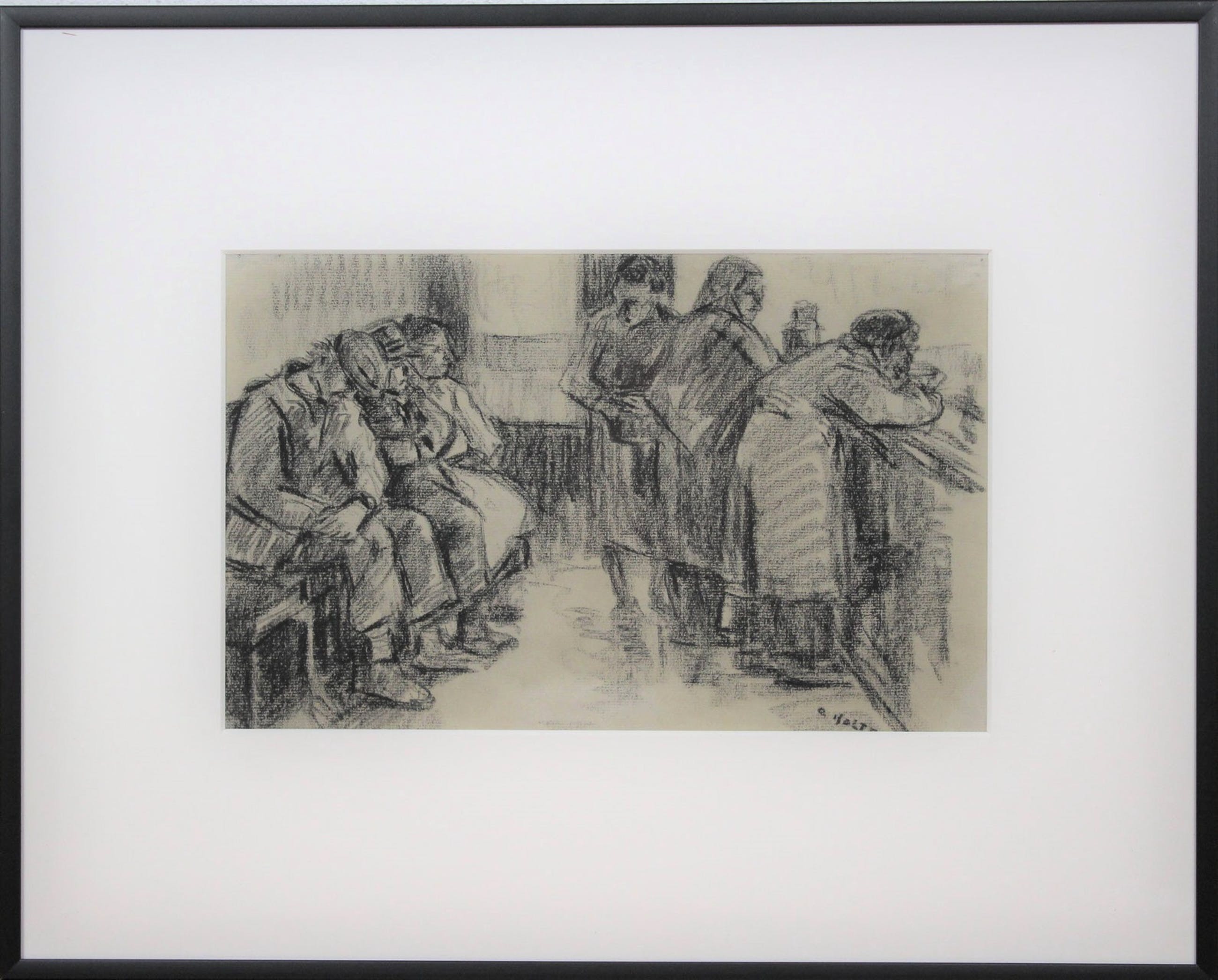 Een prachtig origineel kunstwerk ( "figuren in een wachtruimte", houtskooltekening op papier ) van de Nederlandse kunstenaar Cor Noltee (1903-1967). Met een nieuwe houten lijst, een nieuw zuurvrij passe-partout en anti-reflexglas. Gesigneerd rechts onder. De afmetingen met lijst: 40 cm. x 50 cm. De beeldmaat is: 20 cm. x 32 cm. De conditie van het werk is heel goed. Het kunstwerk is te bezichtigen bij Kunsthandel Martins te Wolvega en wordt geleverd met een echtheidscertificaat.