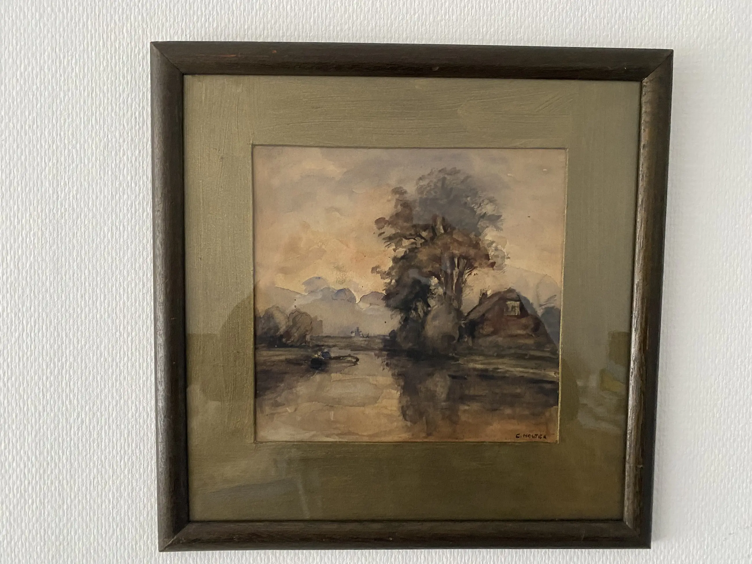 Kavelgegevens Object: Schilderij Kunstenaar: Bernardus Cornelis Noltee Titel van kunstwerk: Huis met bootje aan het water Jaar: Onbekend Type: Aquarel Handtekening: Hand gesigneerd Staat: In goede/staat Ingelijst, achter glas Afmetingen: 23,5 x 24,5 cm Totale afmetingen: 1 x 41 x 41 cm