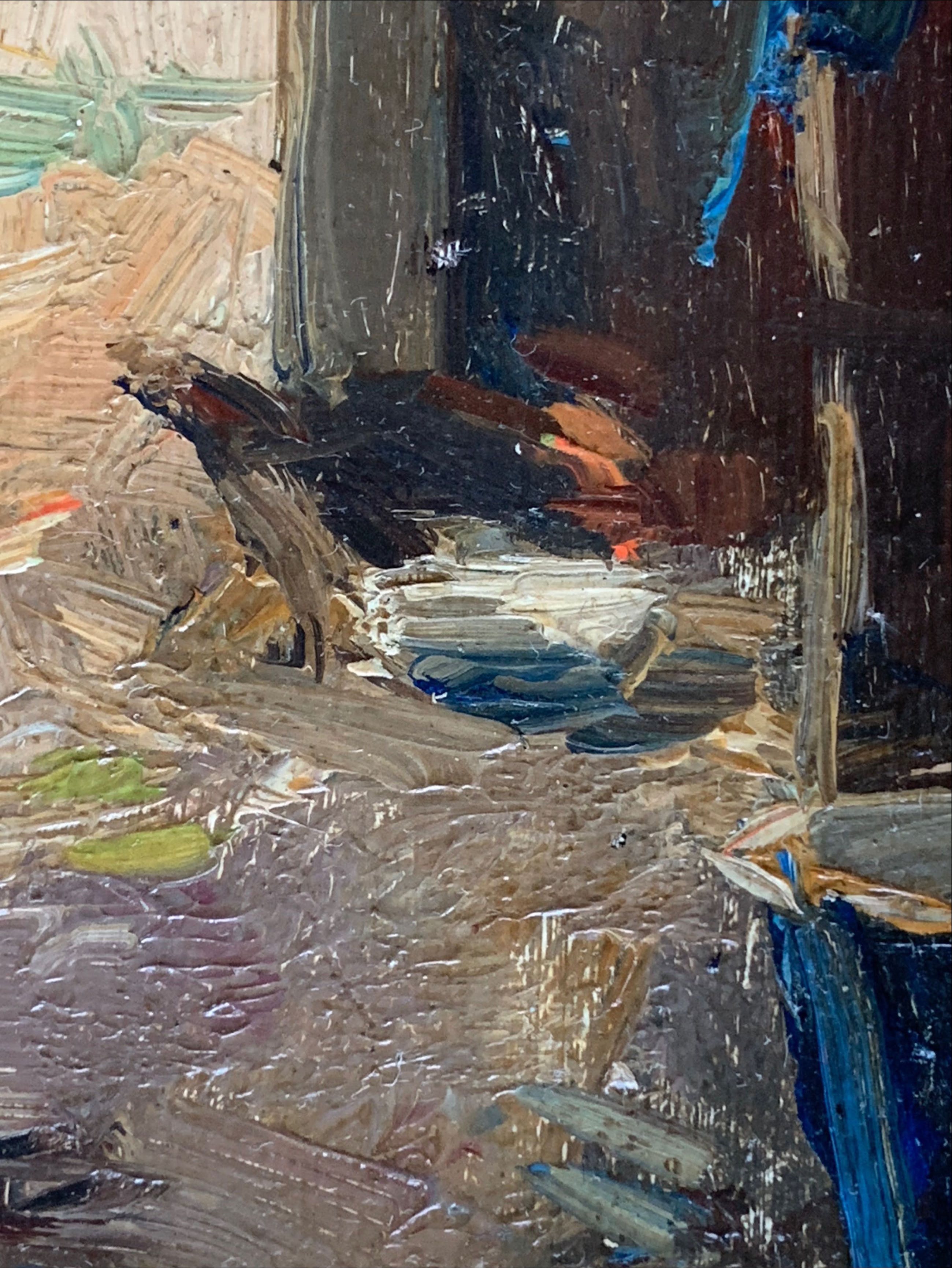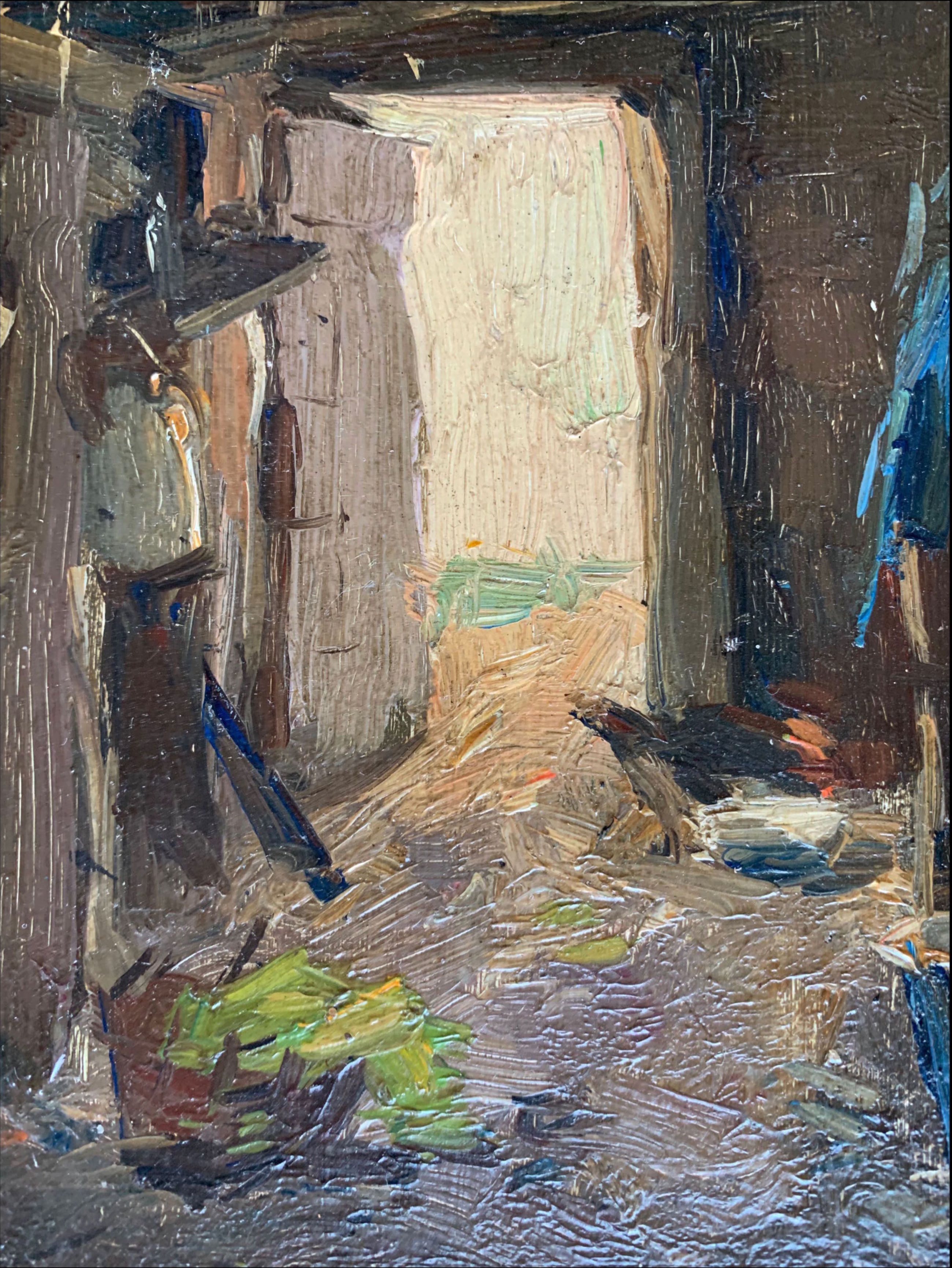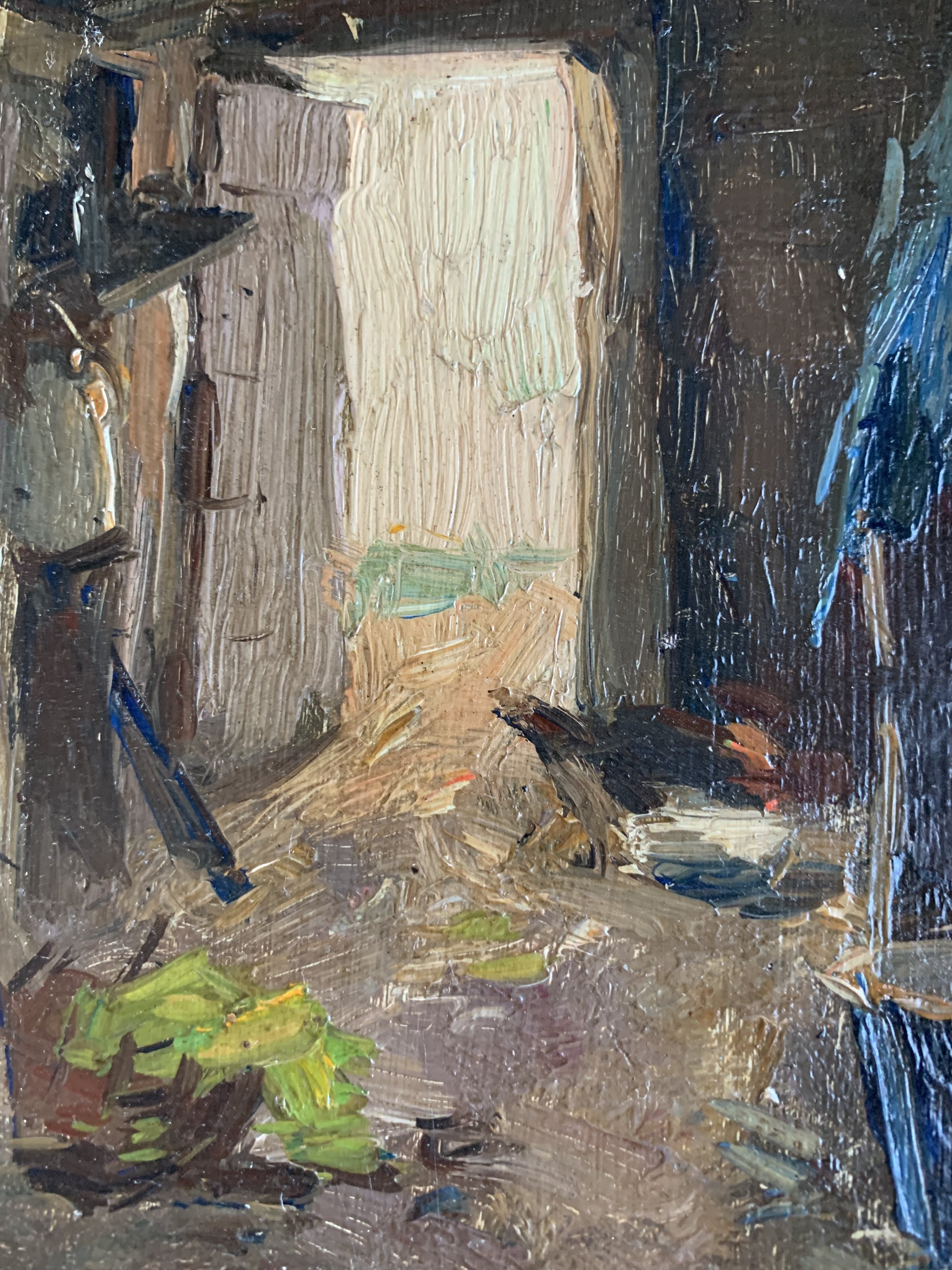 Cor Noltee was een impressionist en werd door Breitner beïnvloed. Hij woonde en werkte in Rotterdam, Parijs en Brugge en had een voorkeur voor stads- en riviergezichten maar ook voor landschappen en pastorale scènes. Hij had een robuuste en eigen stijl, zoals ook bij dit interieur van een boerenschuur.