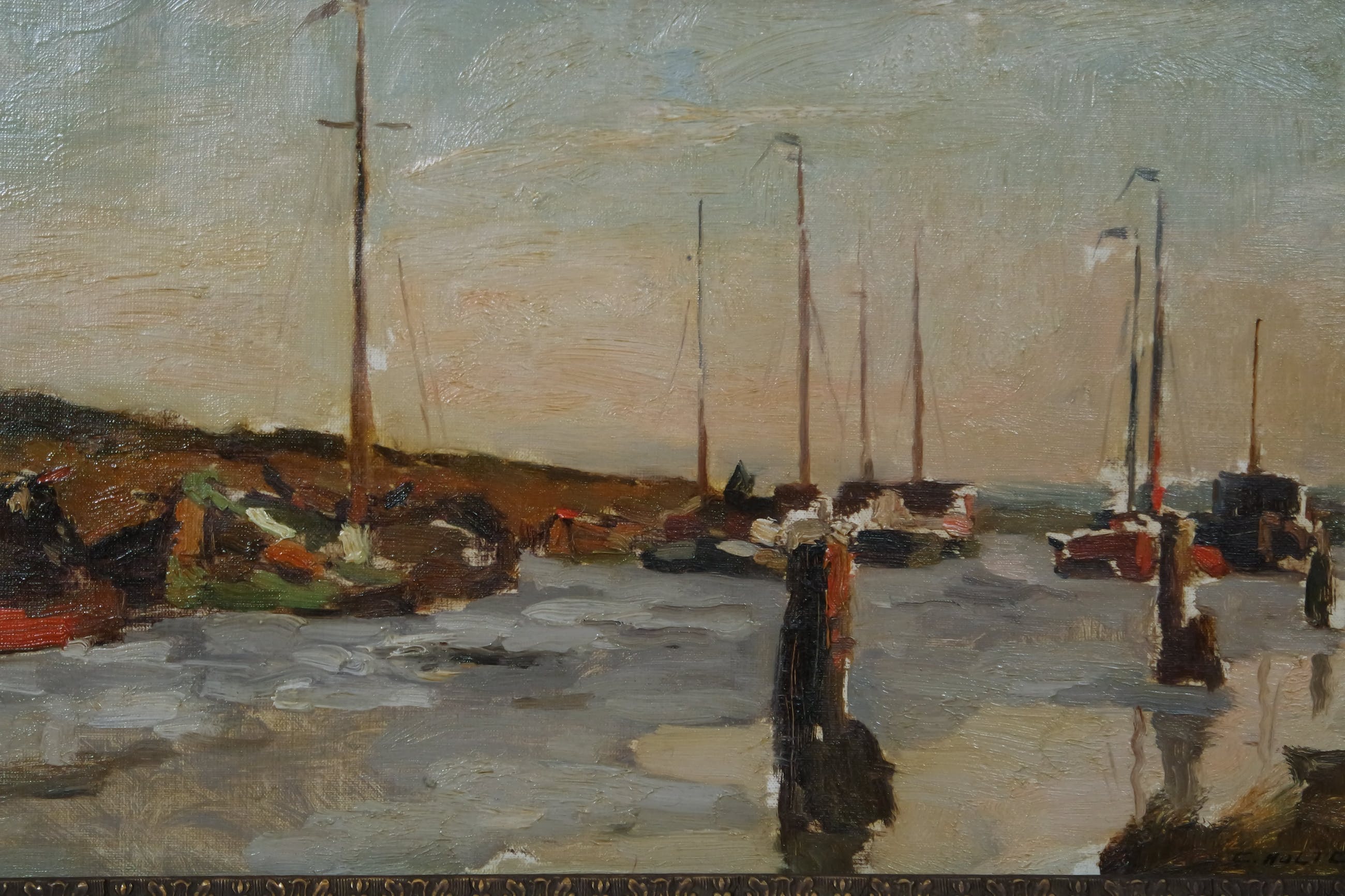 Een prachtig impressionistisch kunstwerk (haven van Dordrecht, olieverf op doek) van de Nederlandse kunstschilder Cor Noltee (1903-1967). Met authentieke lijst. Gesigneerd rechts onder. De lijst heeft enkele kleine beschadigingen. Het kunstwerk wordt geleverd met echtheidscertificaat. Verzenden, afhalen e/o bezichtigen is mogelijk. Info: De in Den Haag geboren impressionist Cor Noltee reisde veel. Hij woonde en werkte in Parijs, Rotterdam en Brugge en vestigde zich in 1937 in Dordrecht. Zijn voorkeur ging uit naar het schilderen van landschappen en stads- en riviergezichten in een robuuste, zelfverzekerde stijl. Om die reden werd hij wel de 'Dordtse Breitner' genoemd. Als leerling van de academie in Den Haag kreeg hij les van onder anderen Willem de Zwart. Herkomst: Collectie Kunsthandel Martins anno 2018