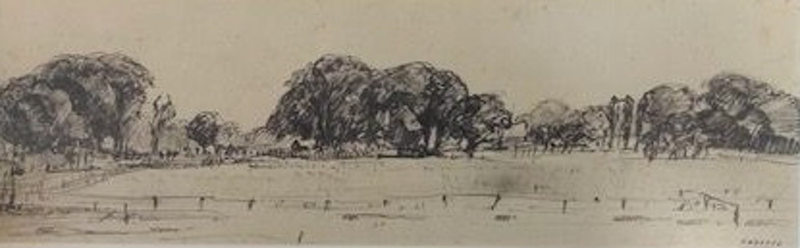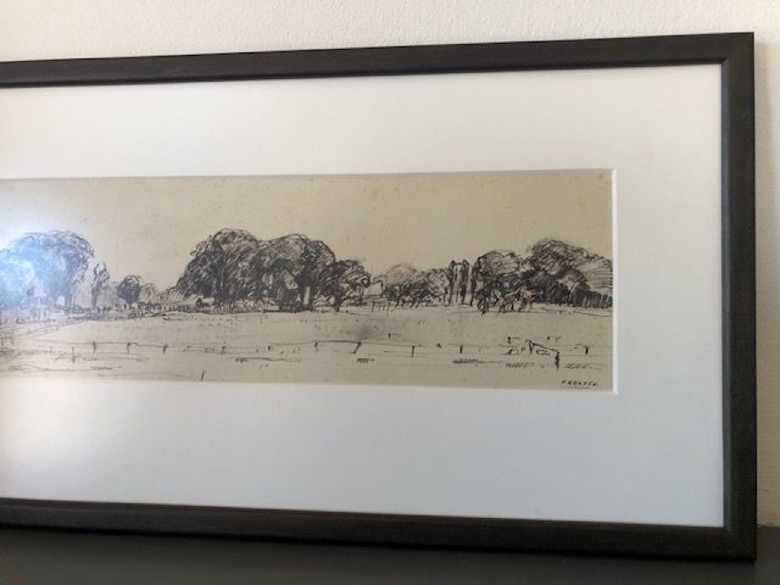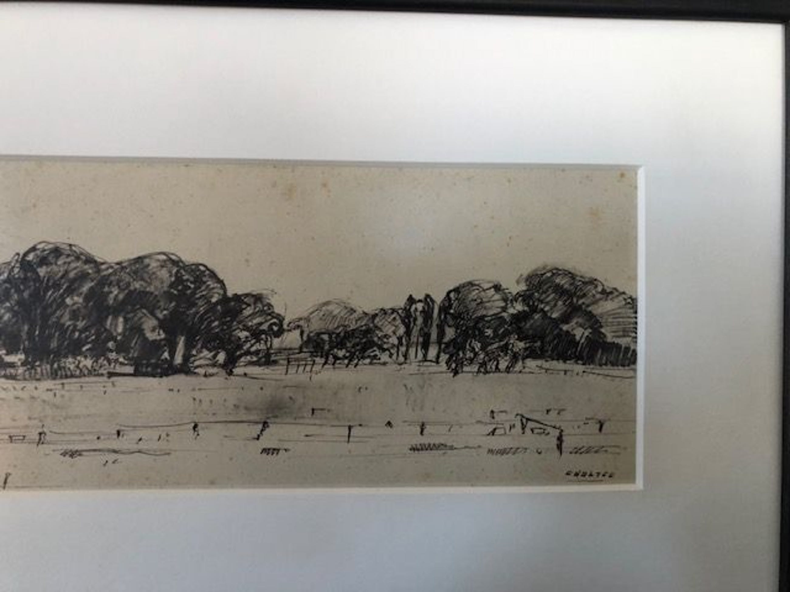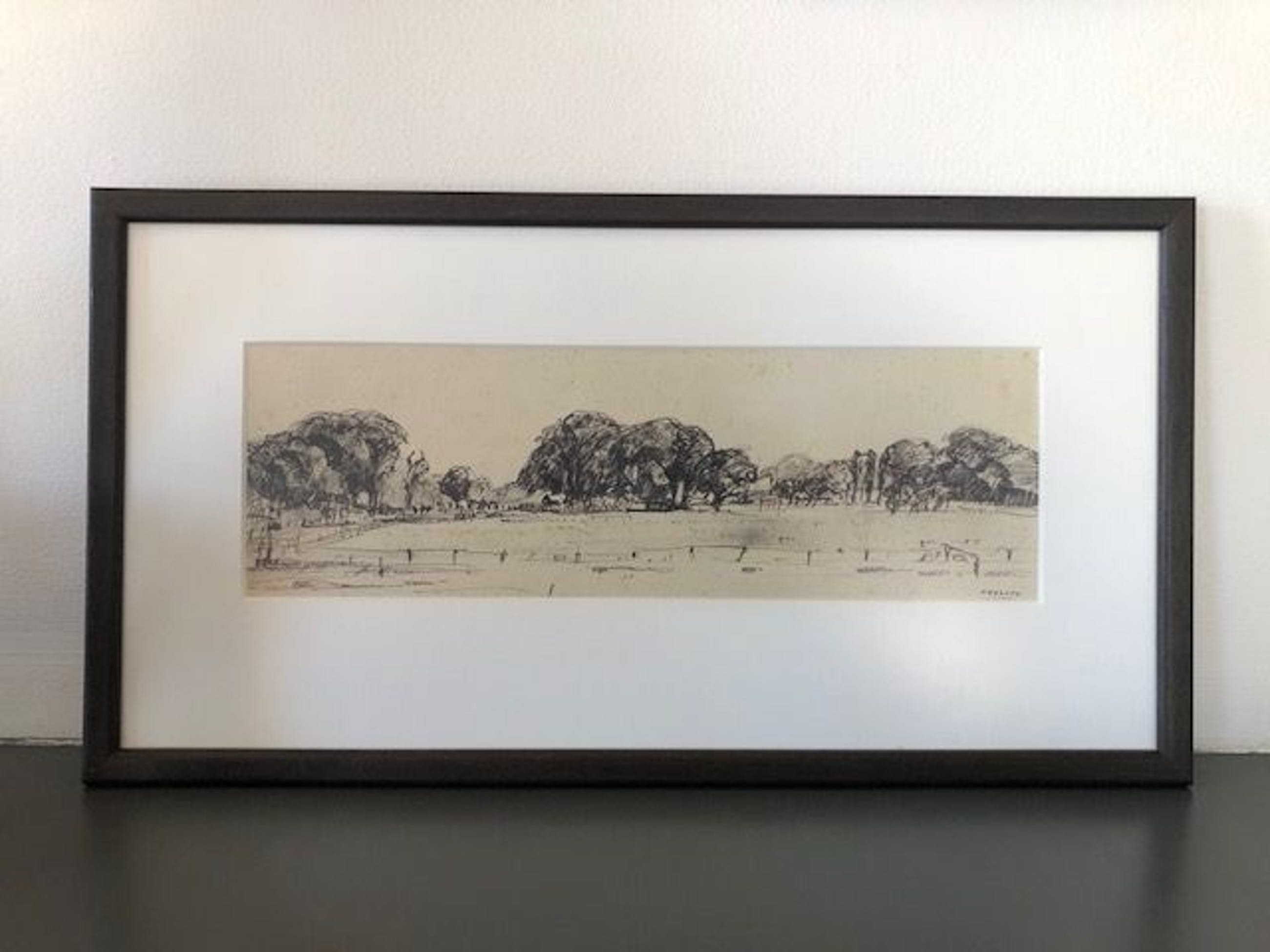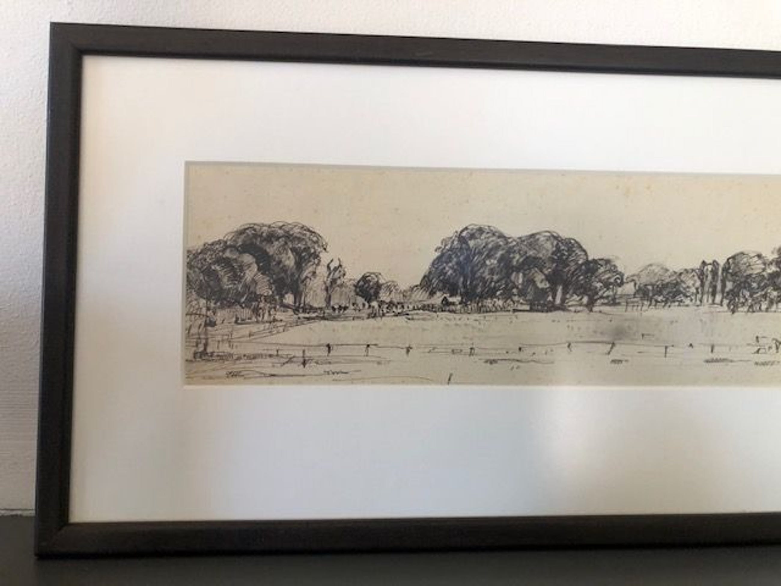 Cor noltee 1903-1967 Tekening van Park Clingendael den haag Afmeting tekening 10 x 31 cm Afmeting met lijst 23 x 43 cm Gelijst in een zwarte lijst met creme paspartoe Gesigneerd rechts onder