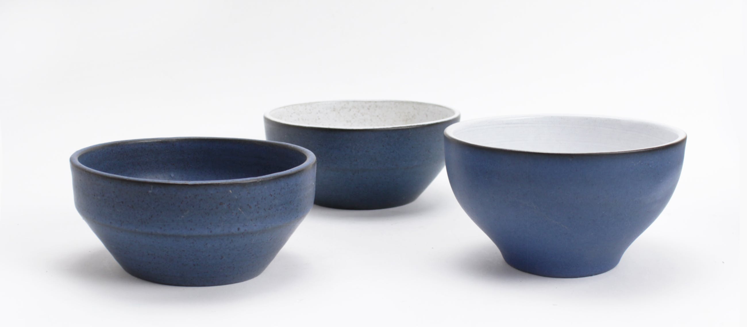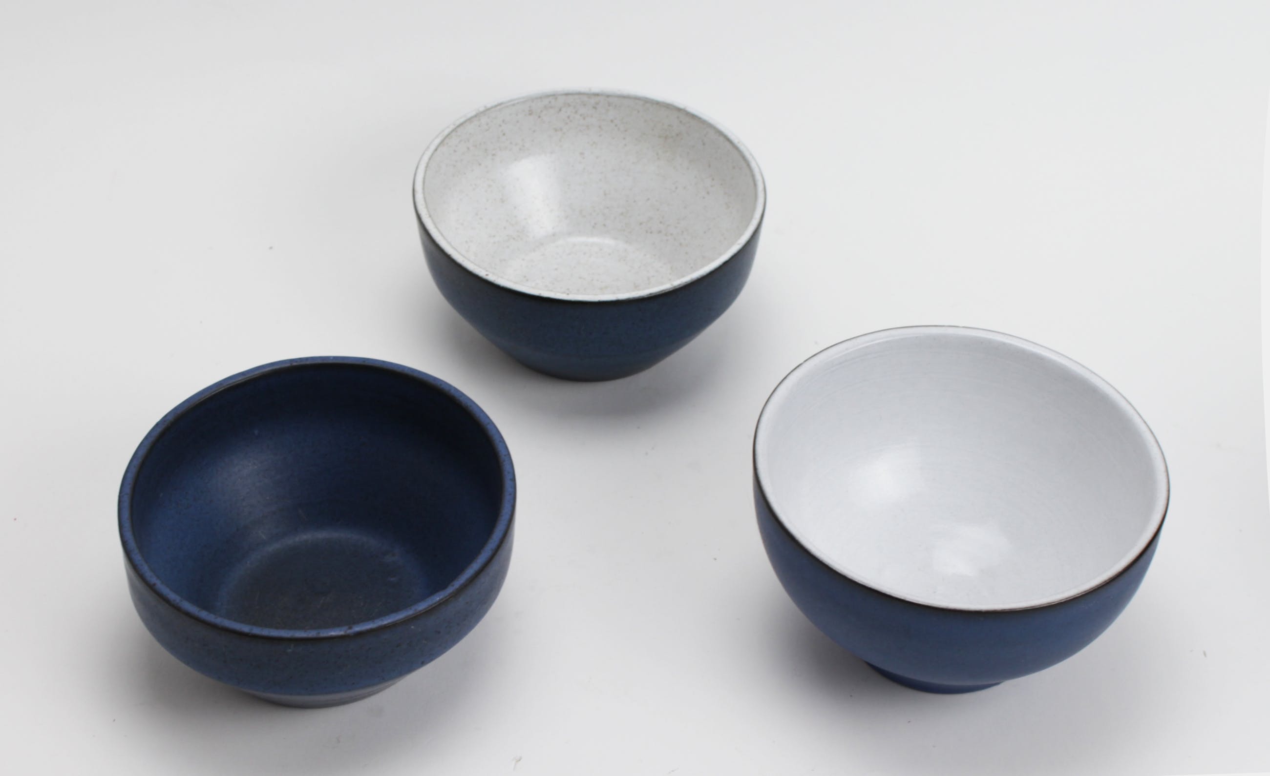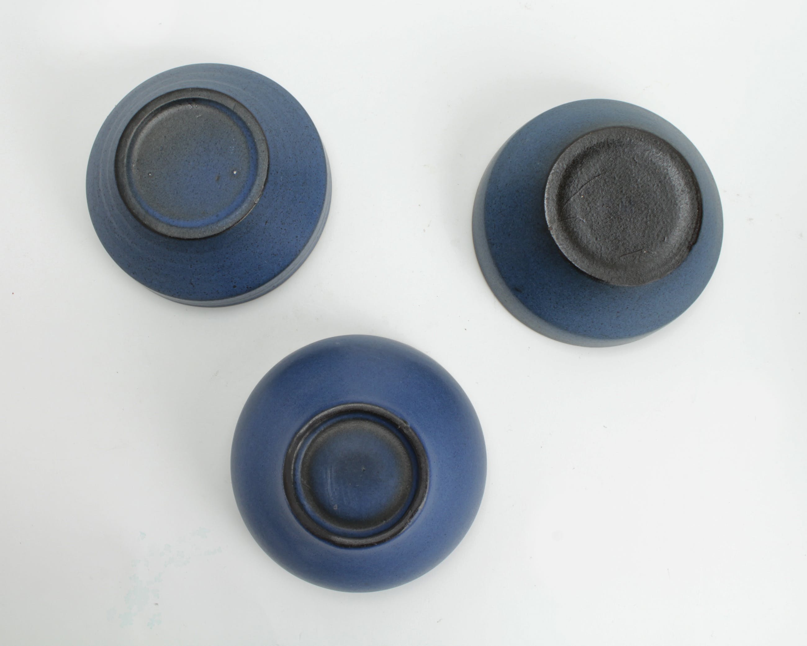 in goede conditie, 1 kom (met de donkere binnenkant) heeft aan de binnenkant lichte gebruikssporen