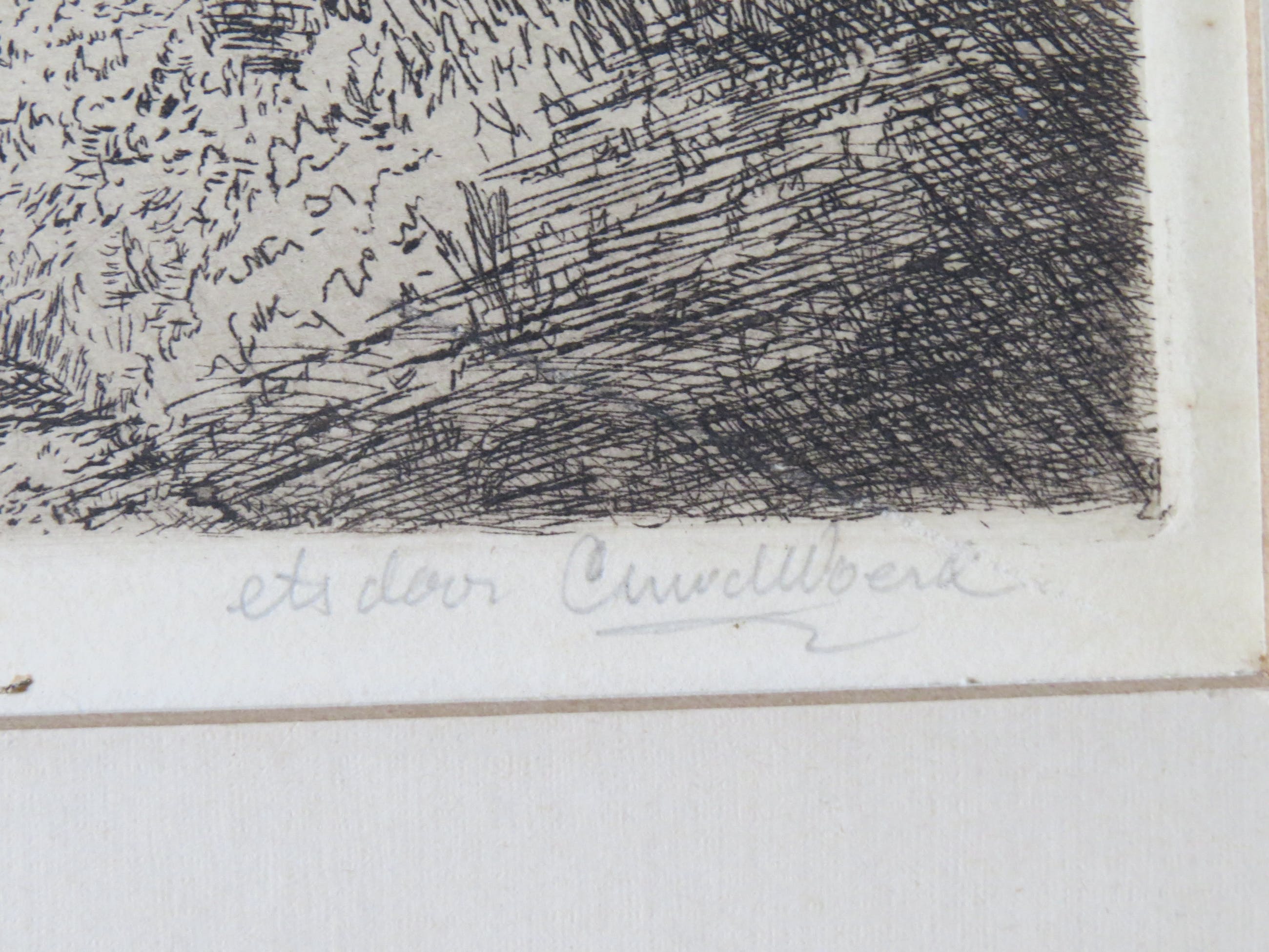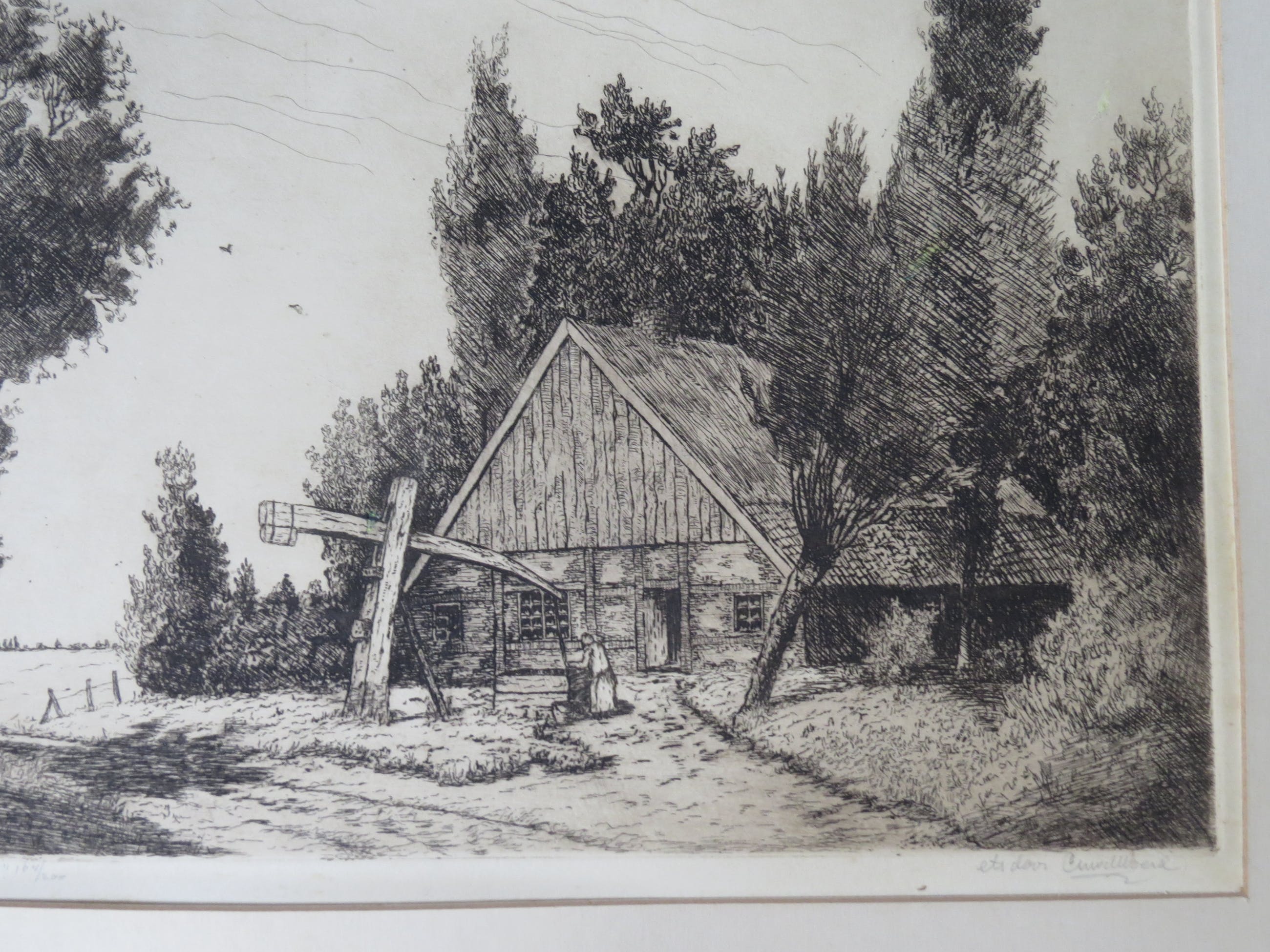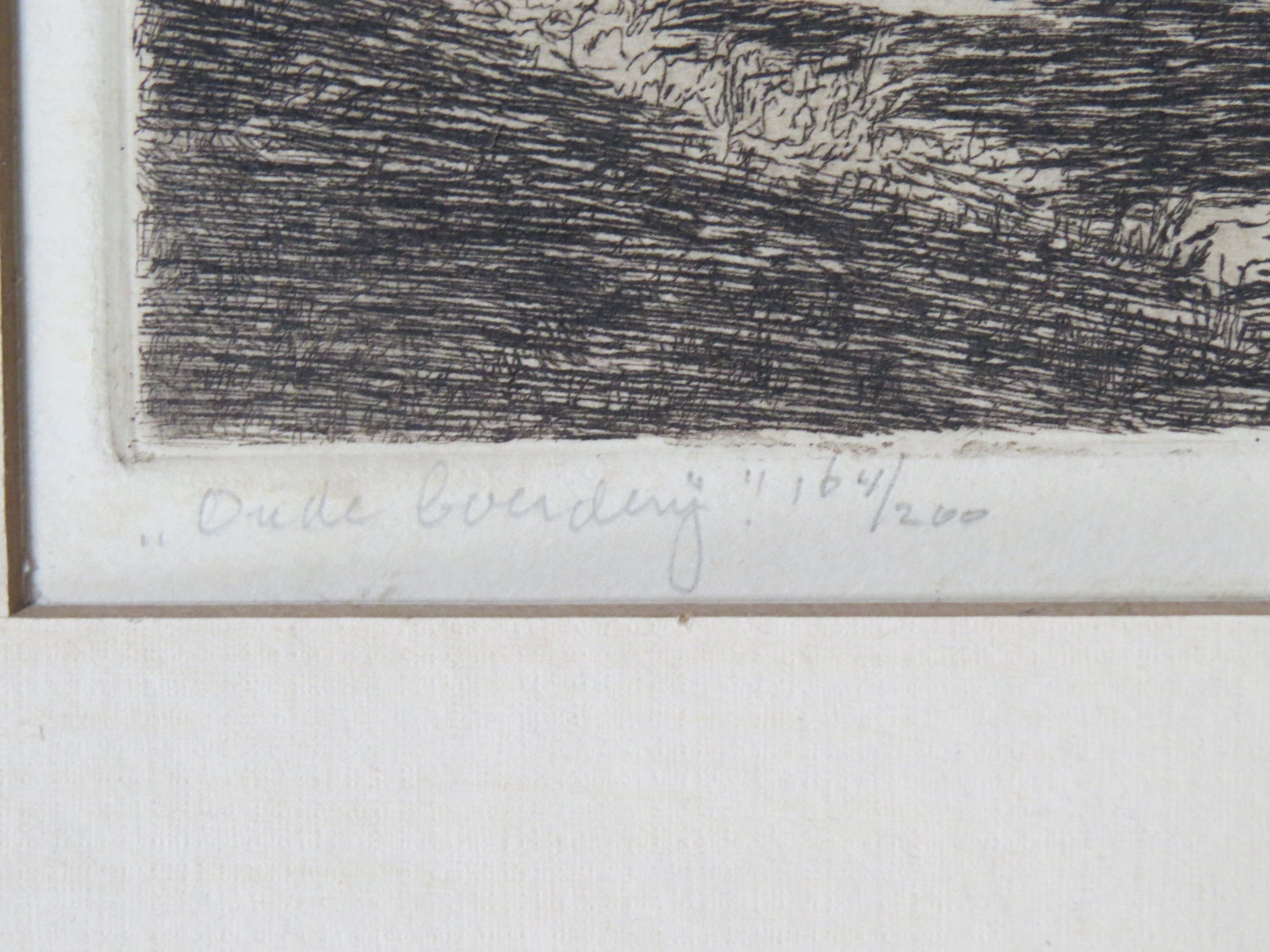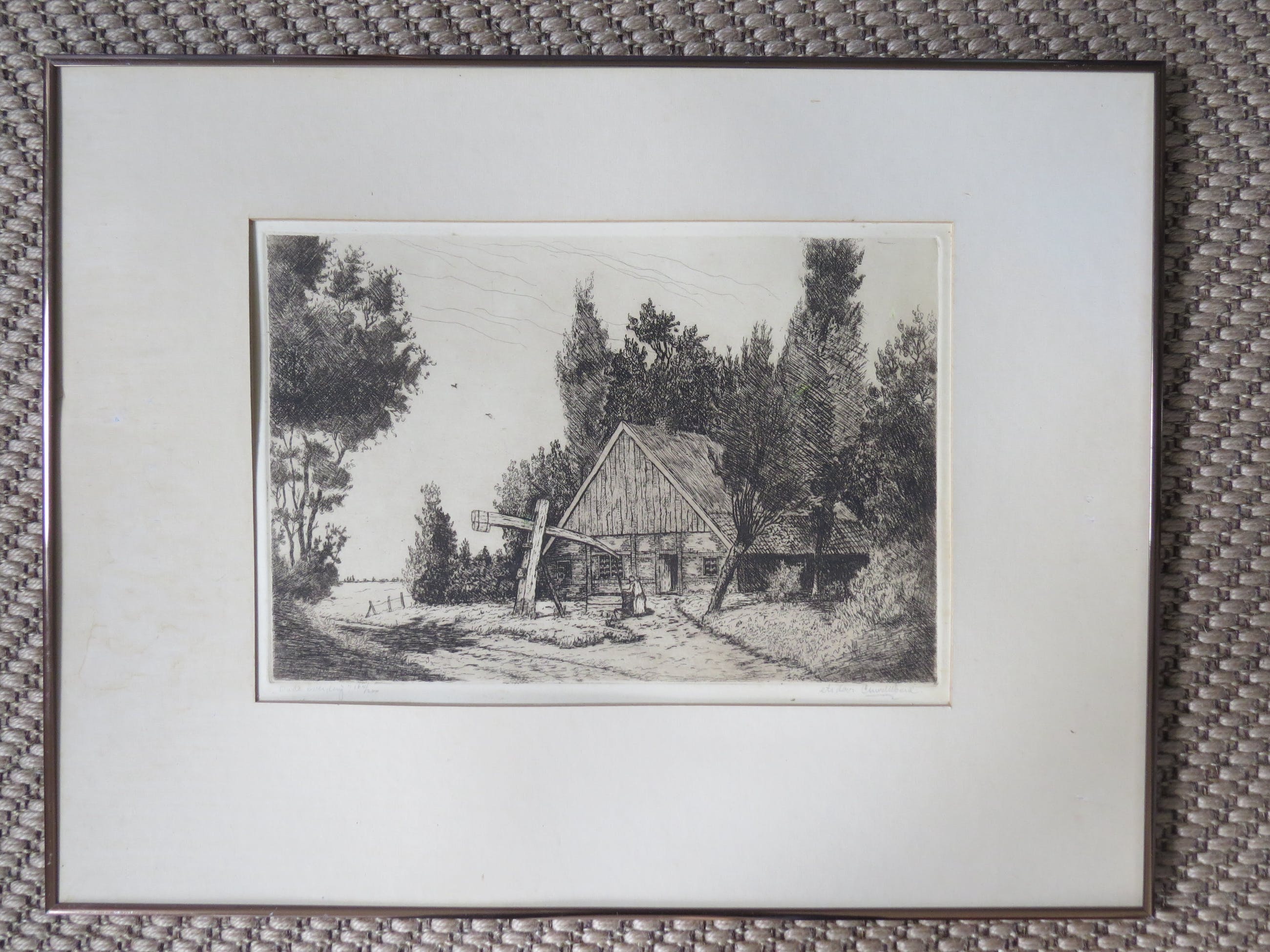 Fraaie ets oplage 200 van Cor van der Woerd, ets is in goed staat, lijst mist glas en passepartout heeft vochtvlekken en moet als geheel vernieuwd worden.