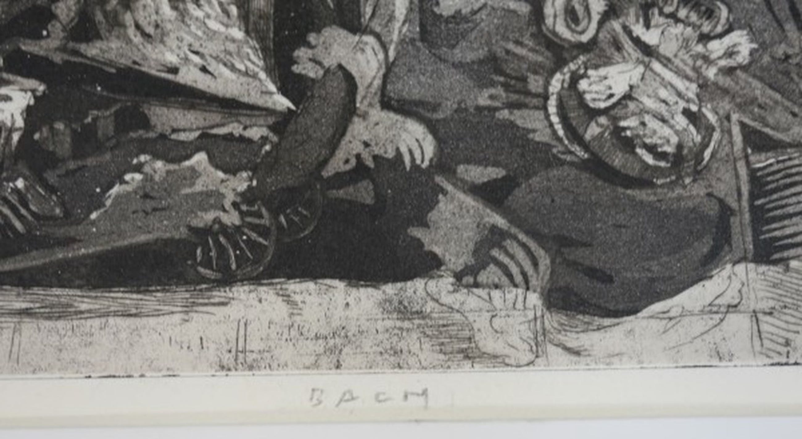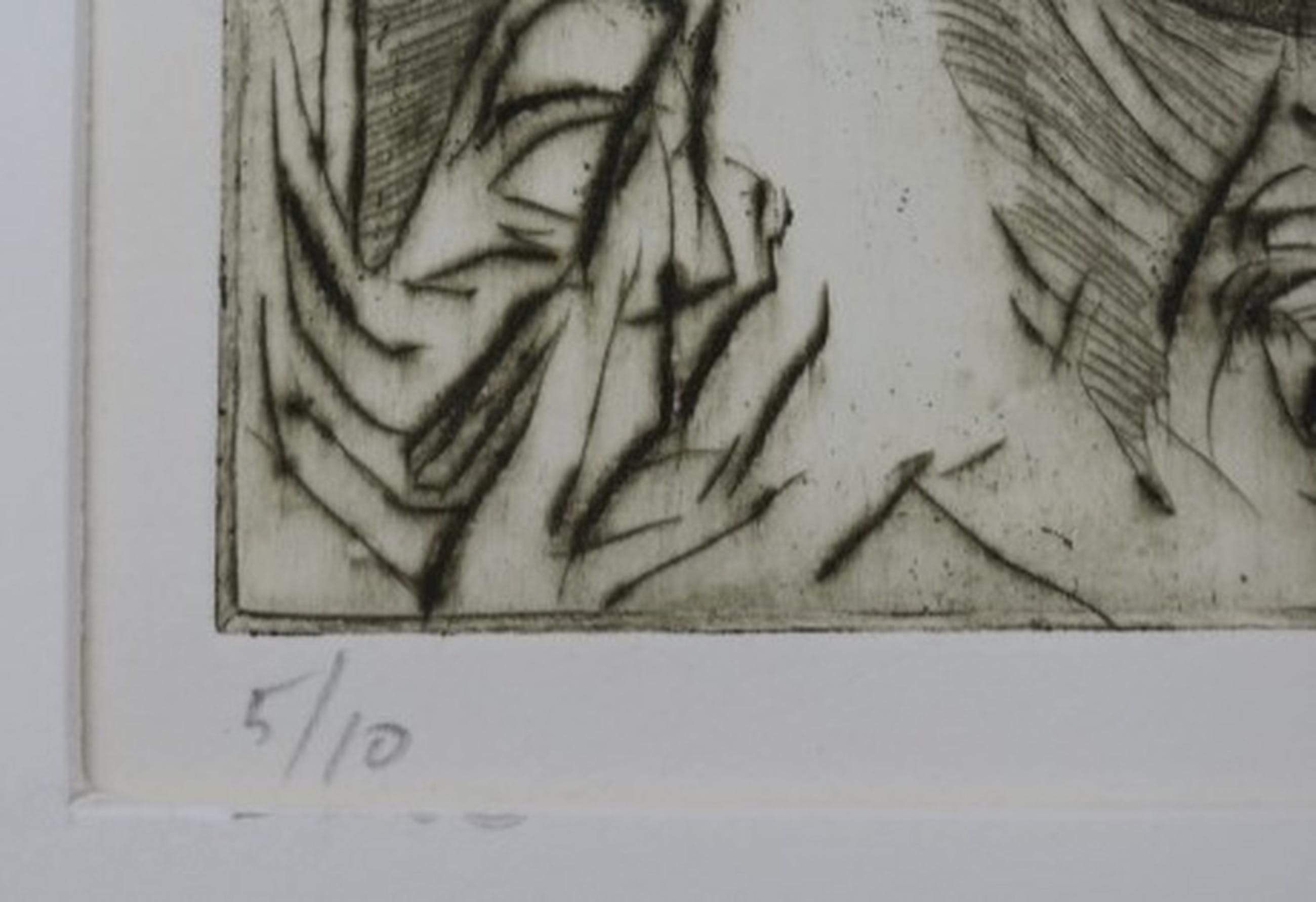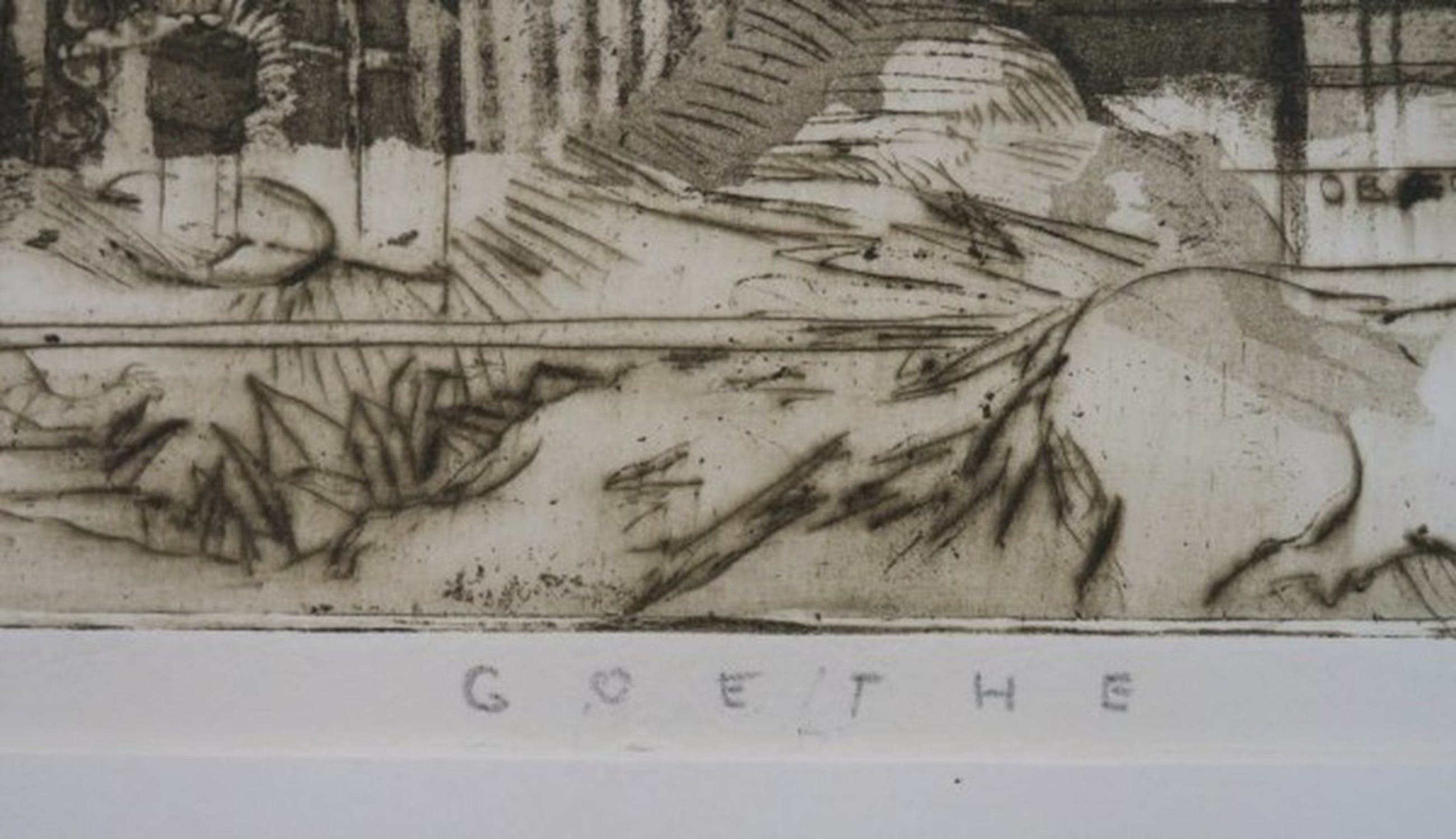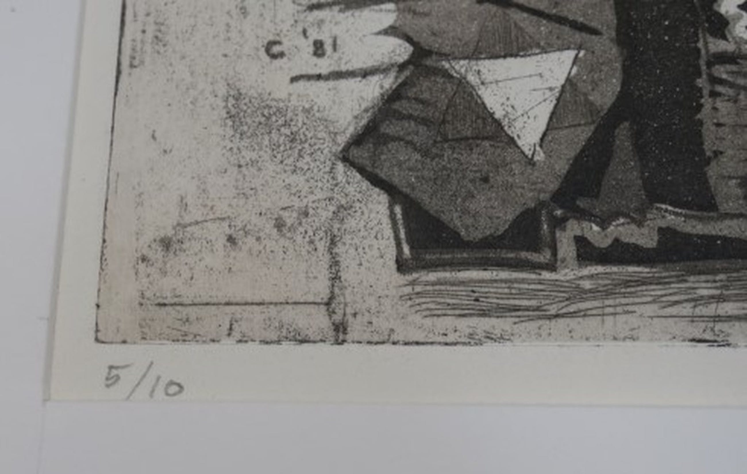 Materiaal: Ets, aquatint op papier bevestigd achter passe-partout