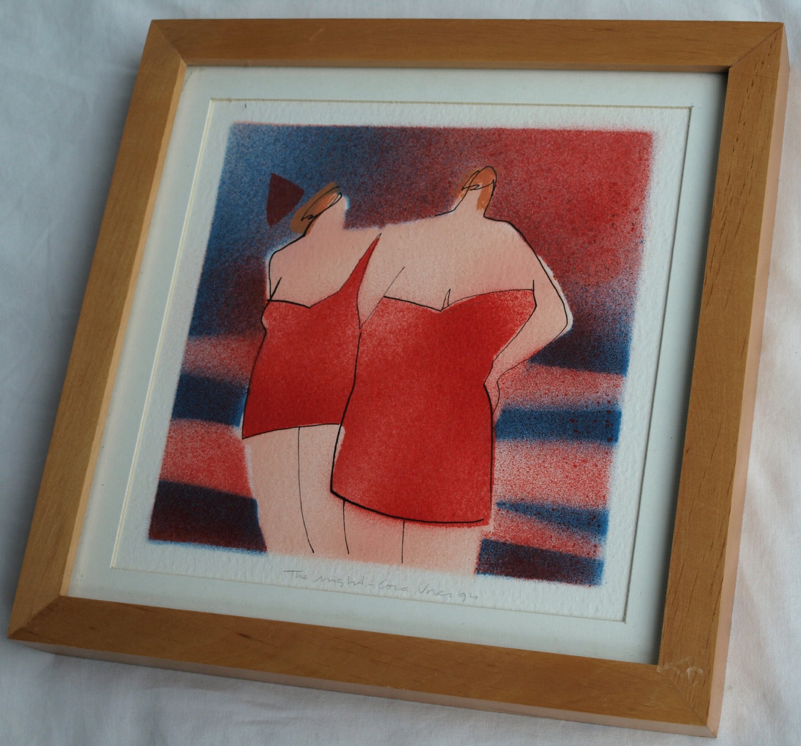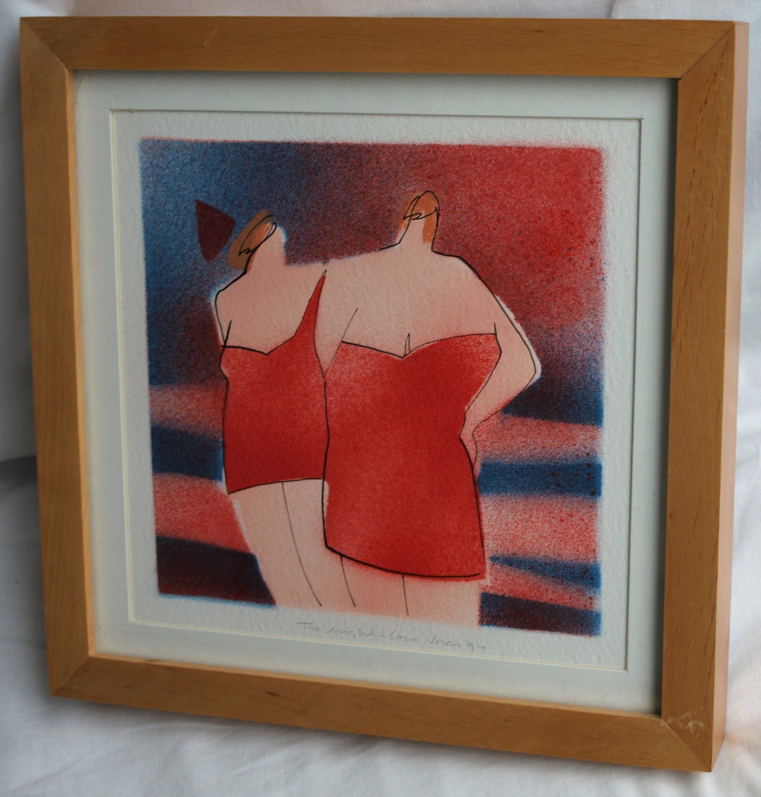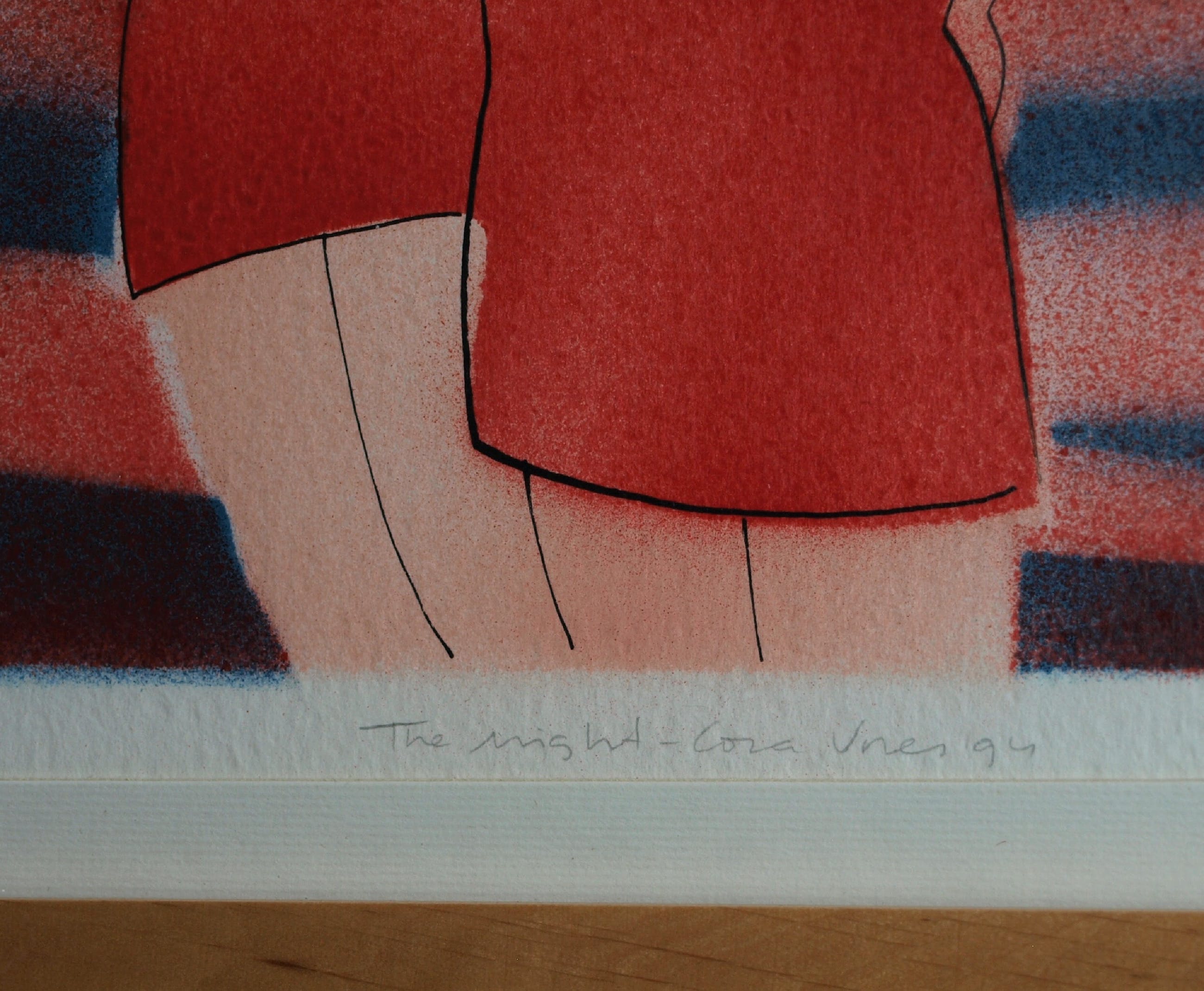 Een ingelijste zeefdruk uit 1994 van de Nederlandse kunstenares Cora Vries (1956).