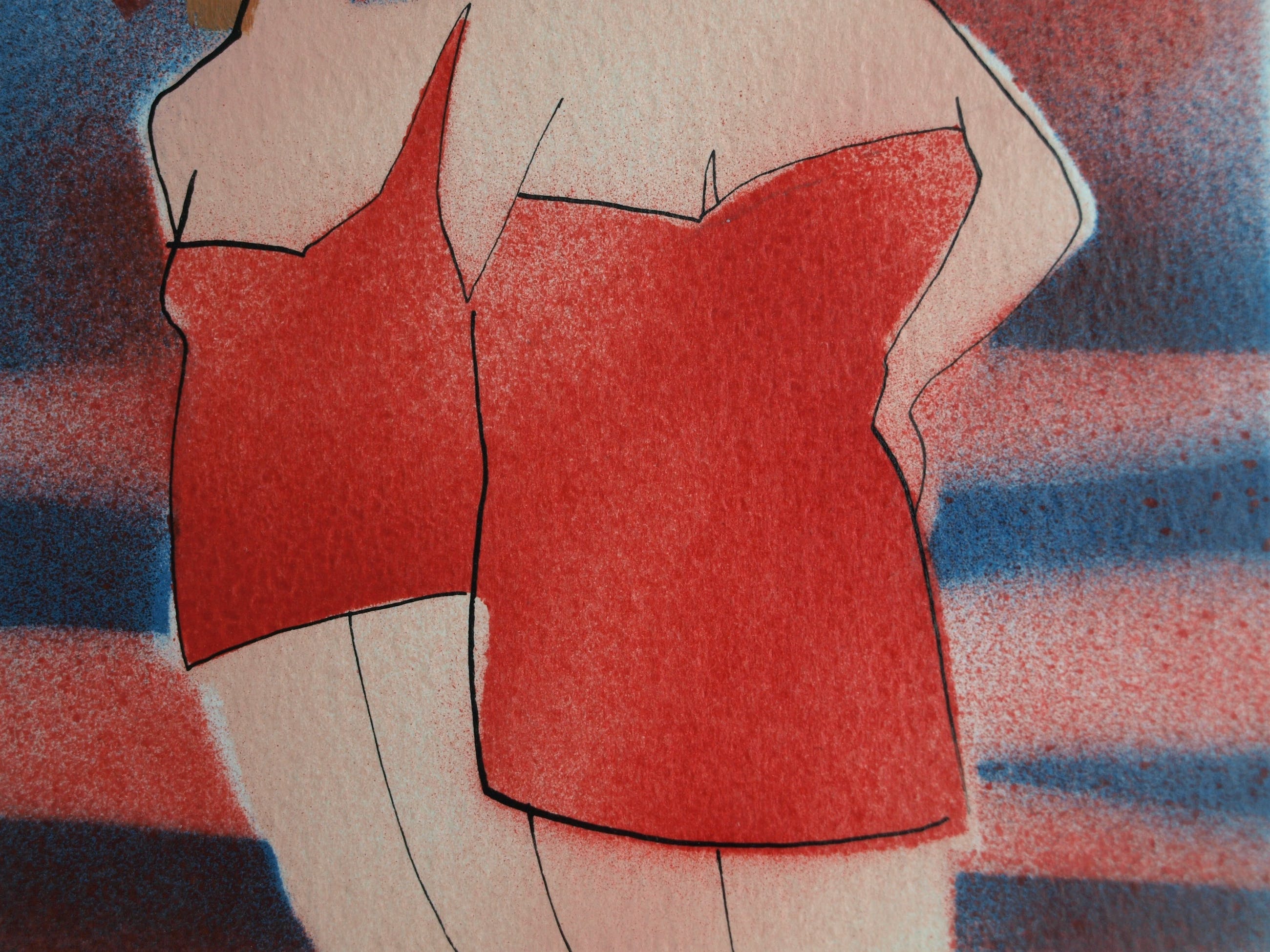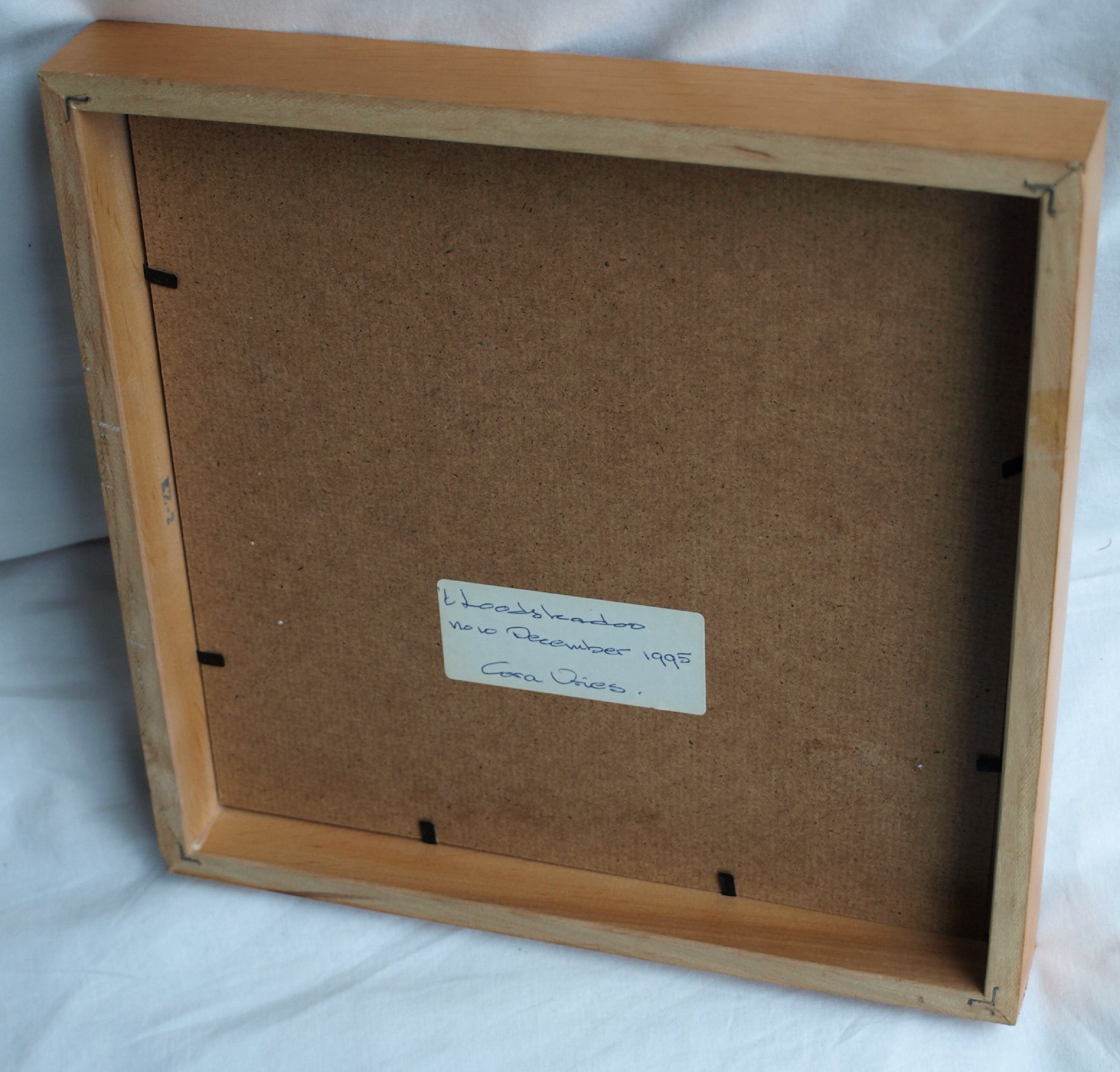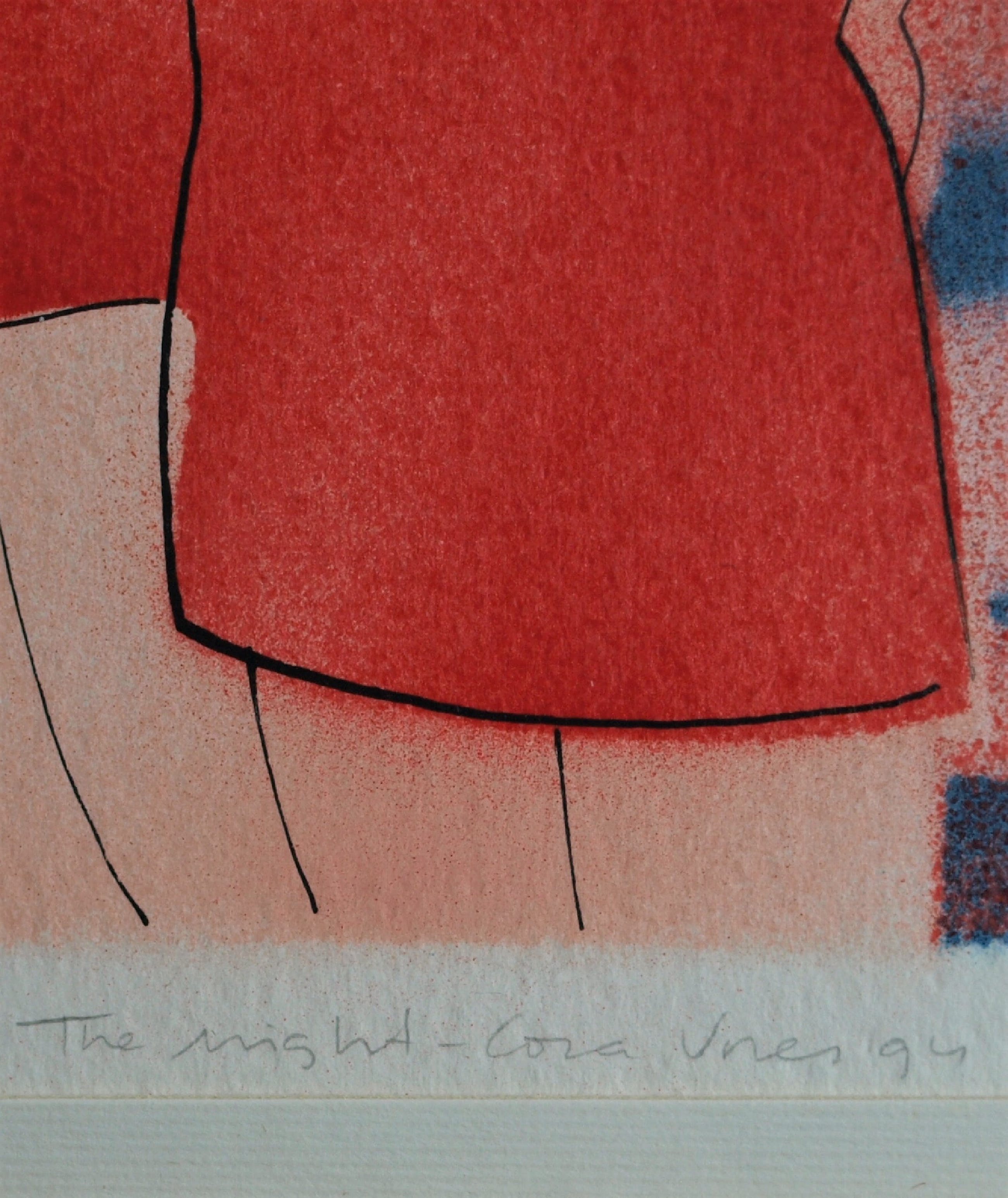 Een ingelijste zeefdruk uit 1994 van de Nederlandse kunstenares Cora Vries (1956).