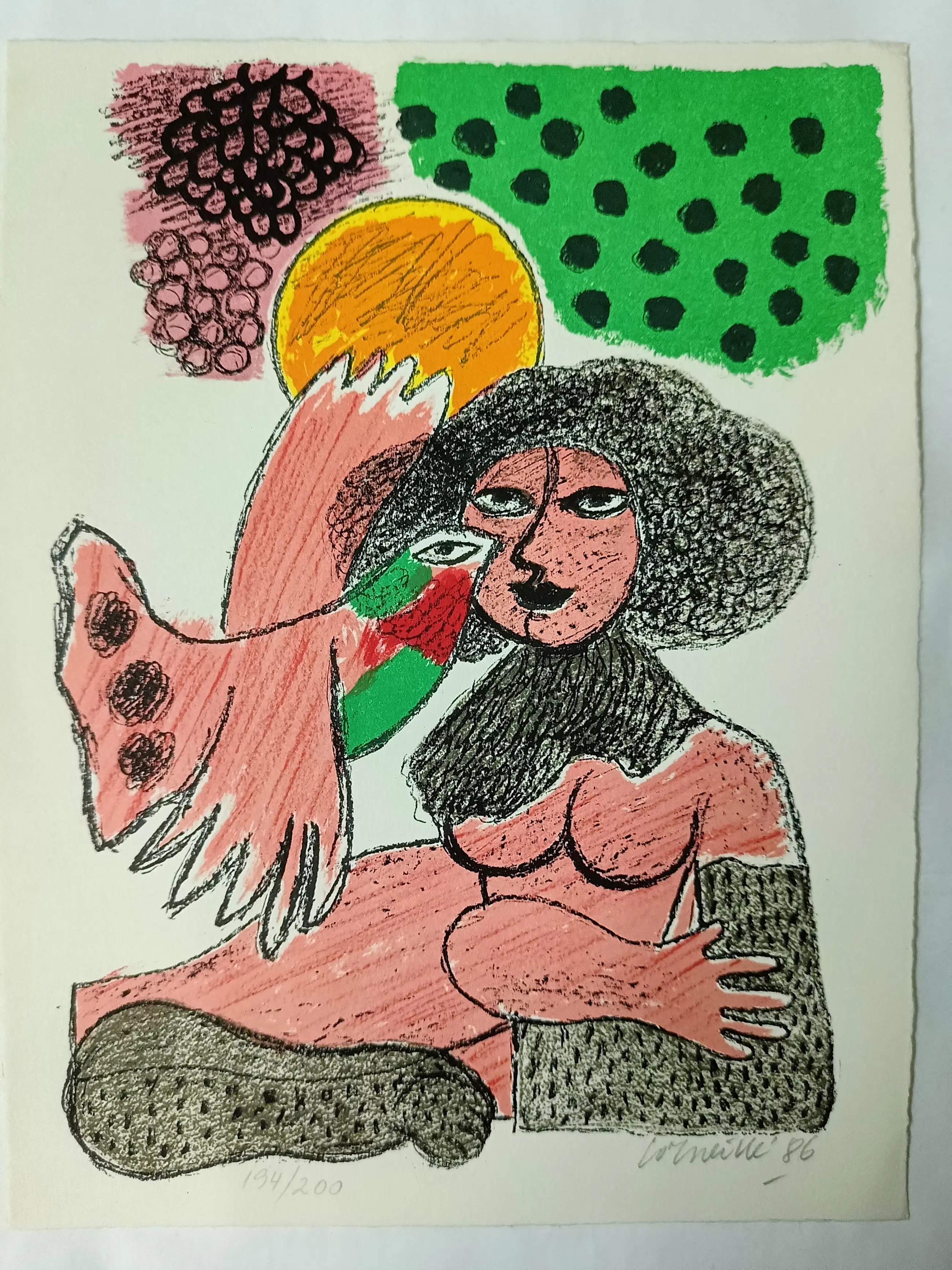 Prachtige litho gesigneerd onderaan in grafiet door de Cobra schilder Corneille in 1986.