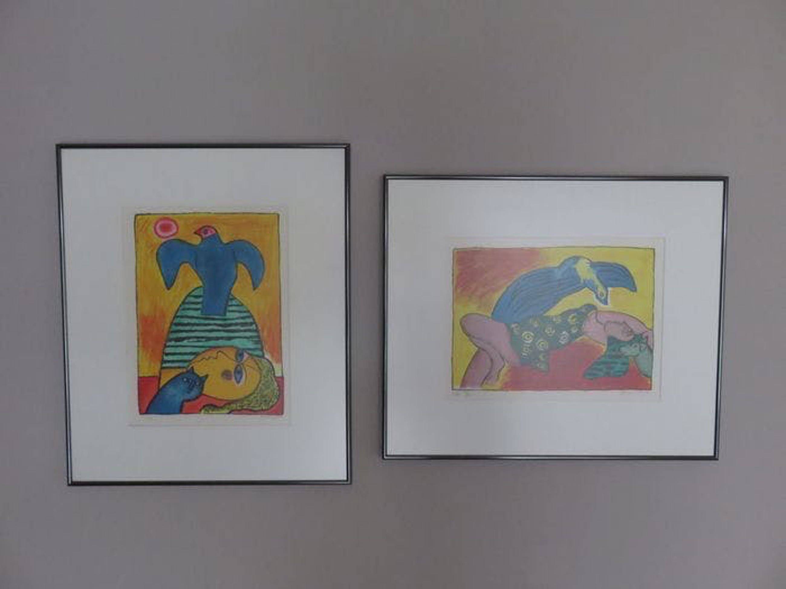 Twee bijzondere zeefdrukken in mooie heldere kleuren in kleine oplage gemaakt.