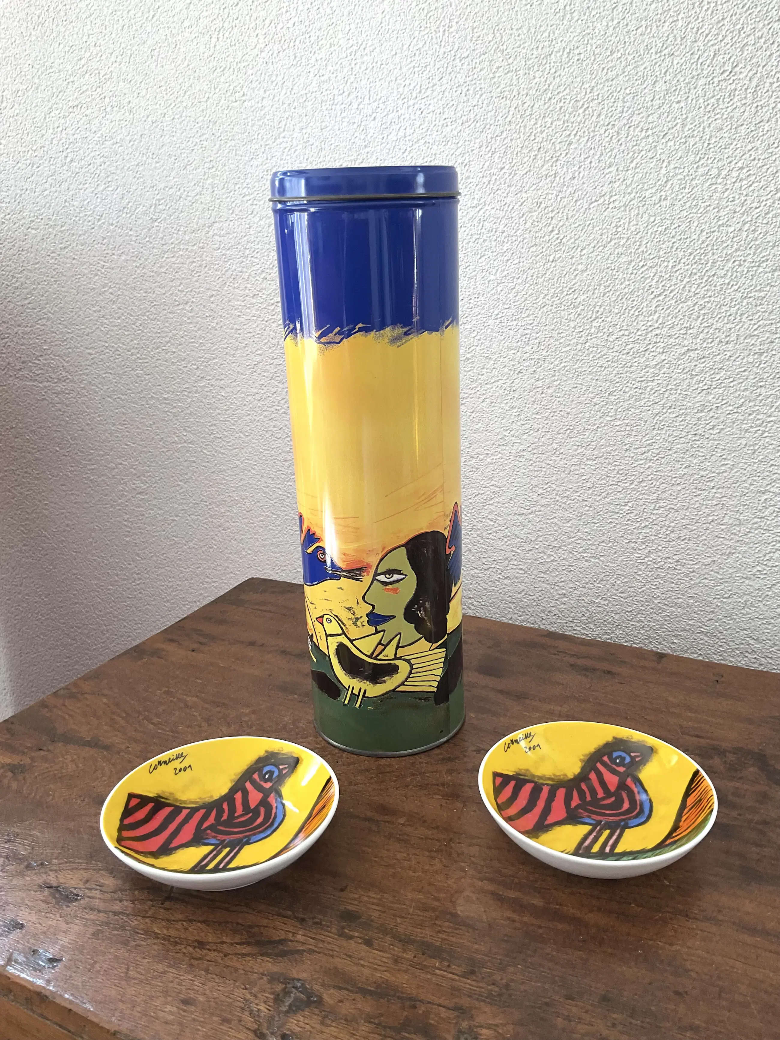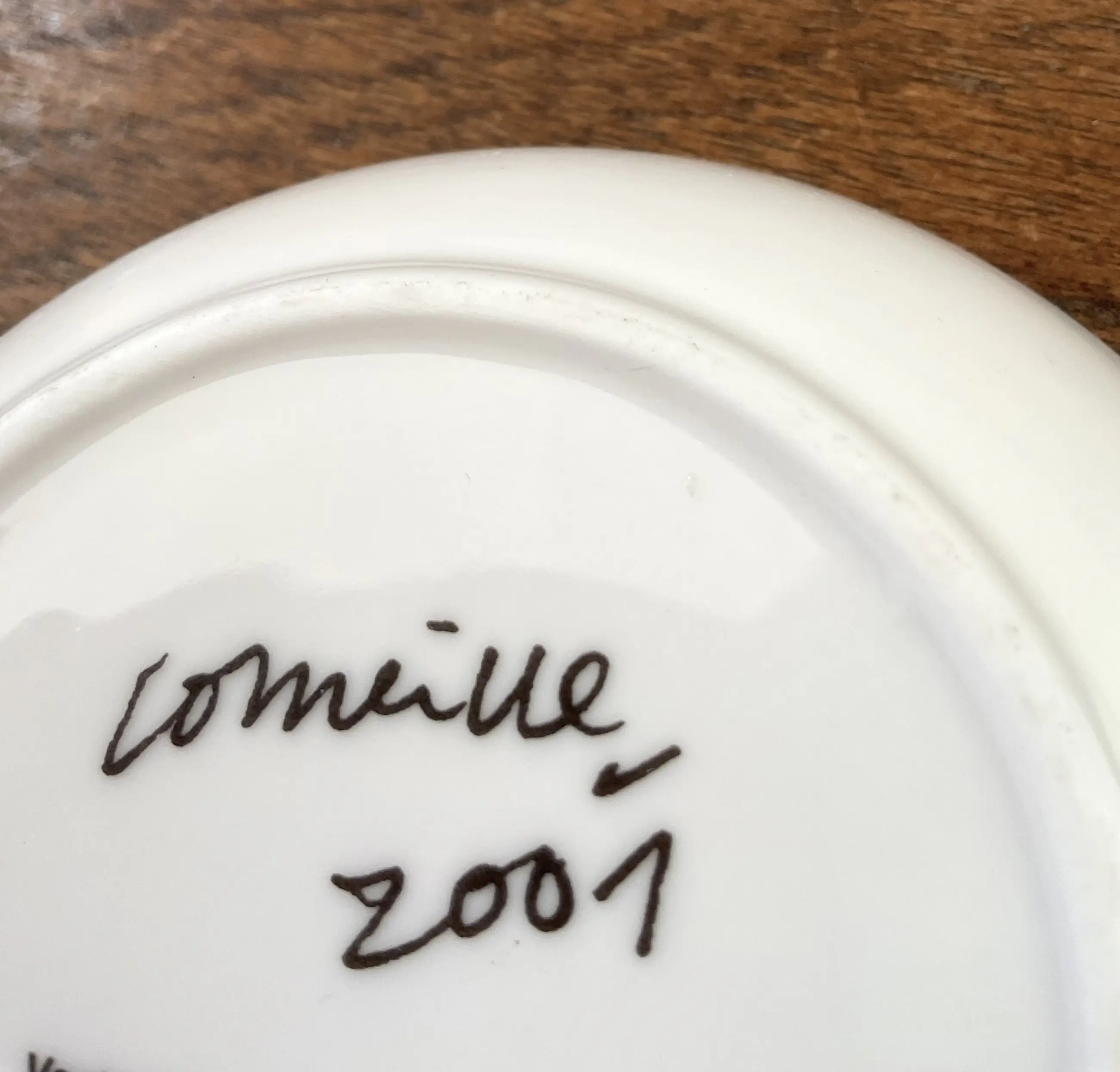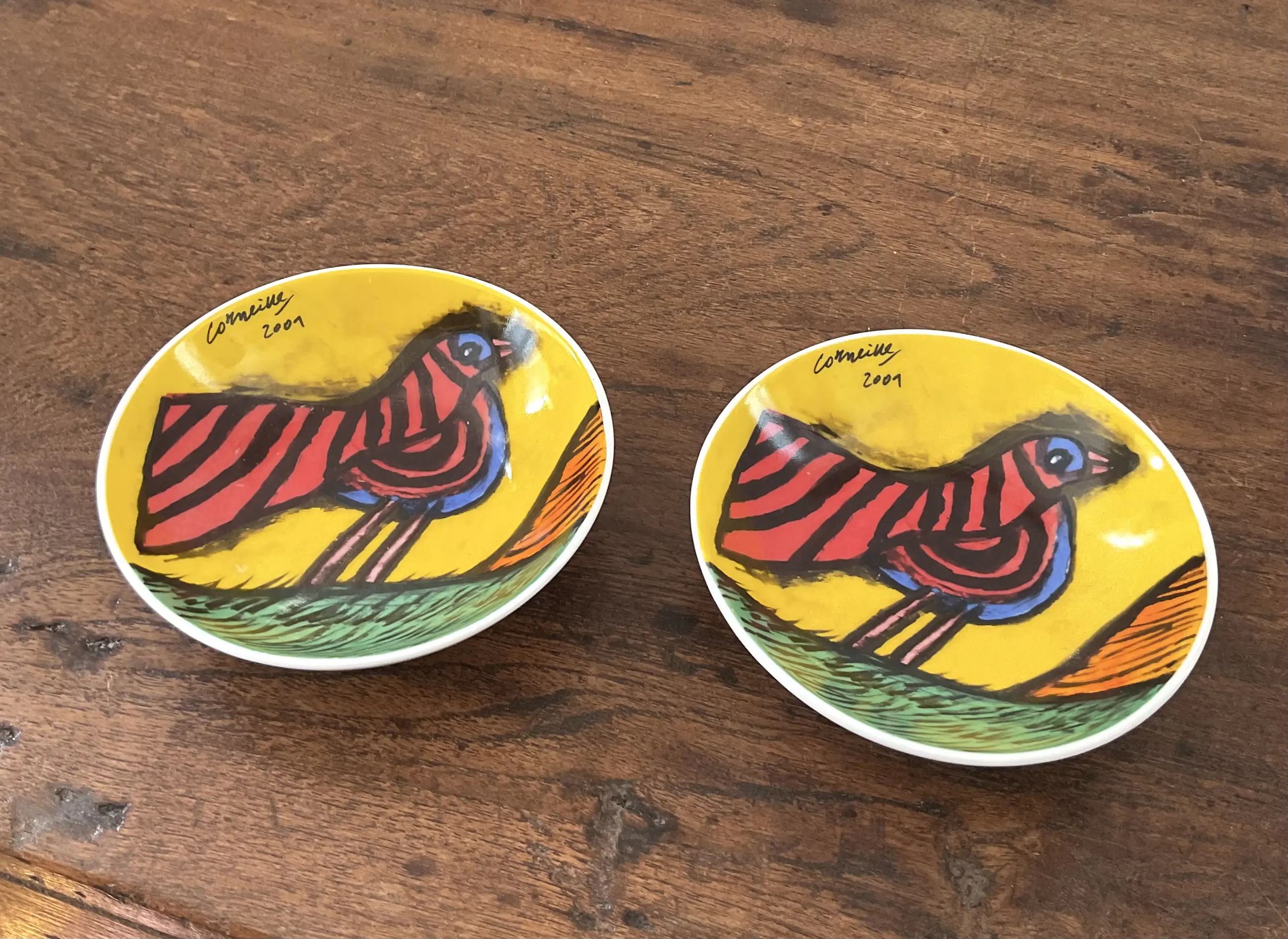 Corneille 2 schaaltjes met vogel Gesigneerd in de druk Jaar 2001 Doorsnee 12 cm Conditie prima Groot blik ,vrouw en vogel Hoogte 33cm Doorsnee 10 cm Conditie prima