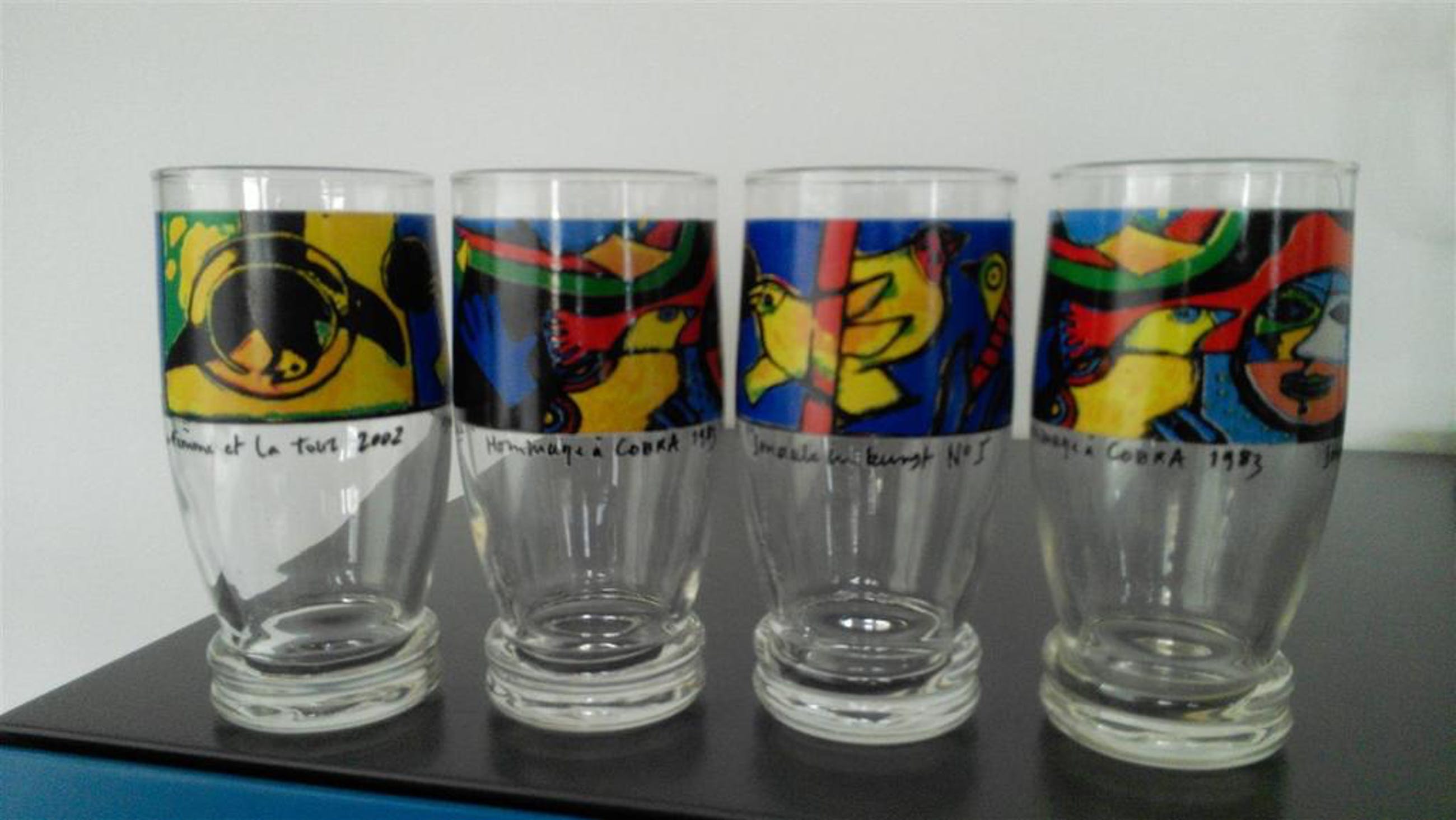 Gave glazen in perfekte staat met typische Corneille decoratie, gesigneerd