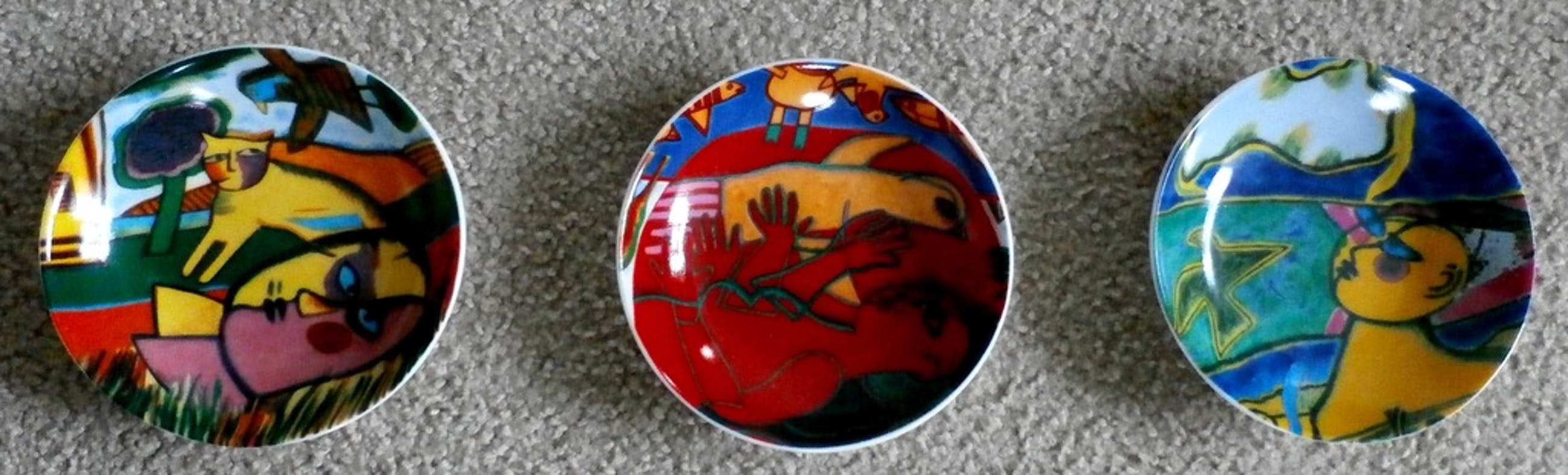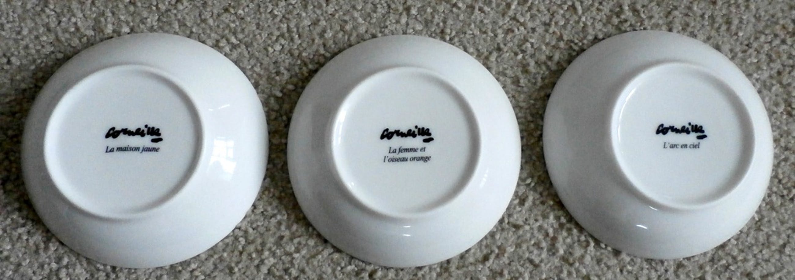 3 keramieke schaaltjes van Corneille. Doorsnee: 12 cm. Conditie: in zeer goede staat. Verzenden met Kiala: 4 euro binnen Nederland en 7,50 binnen België. Verzenden met Postnl: 7 euro binnen Nederland en 12,50 voor België.