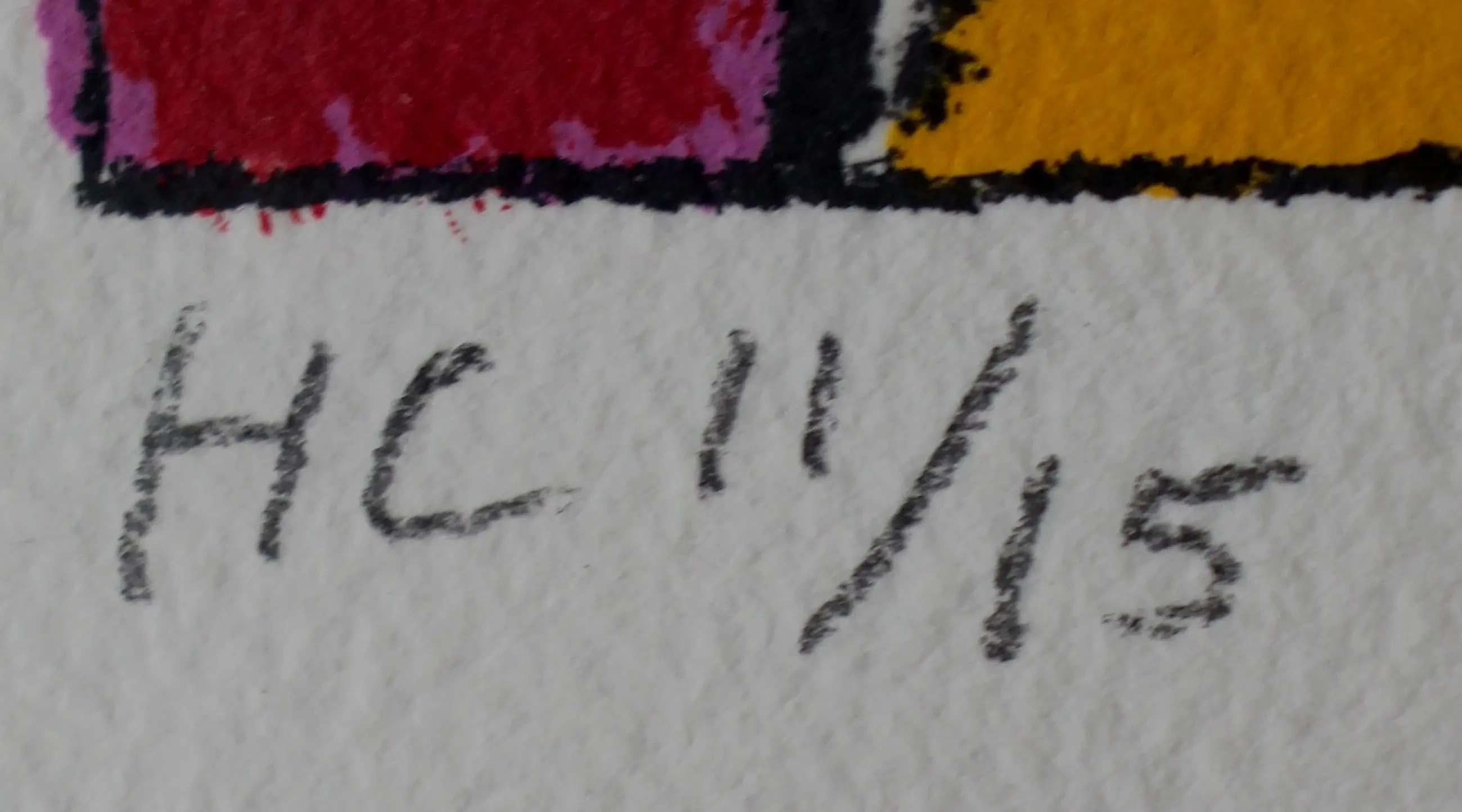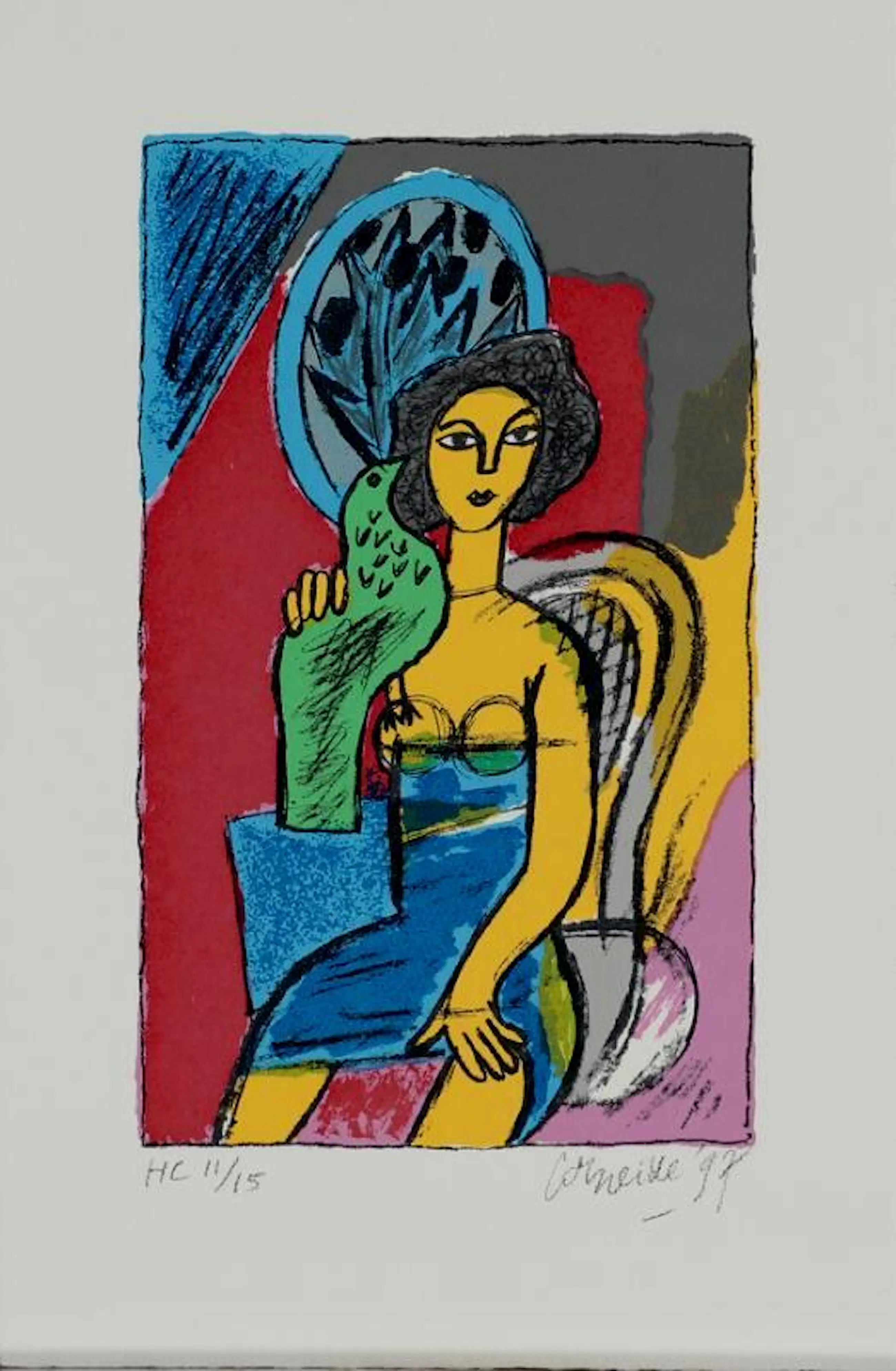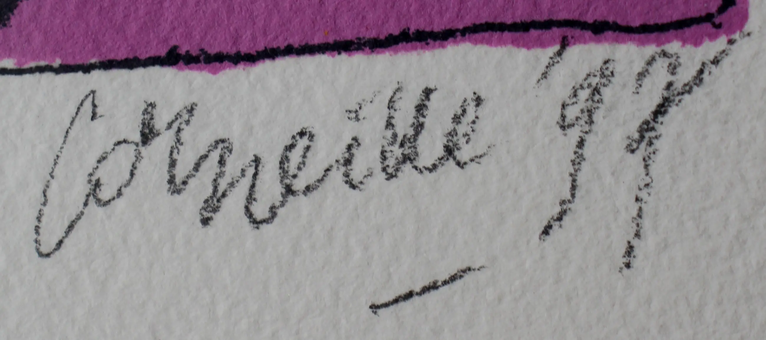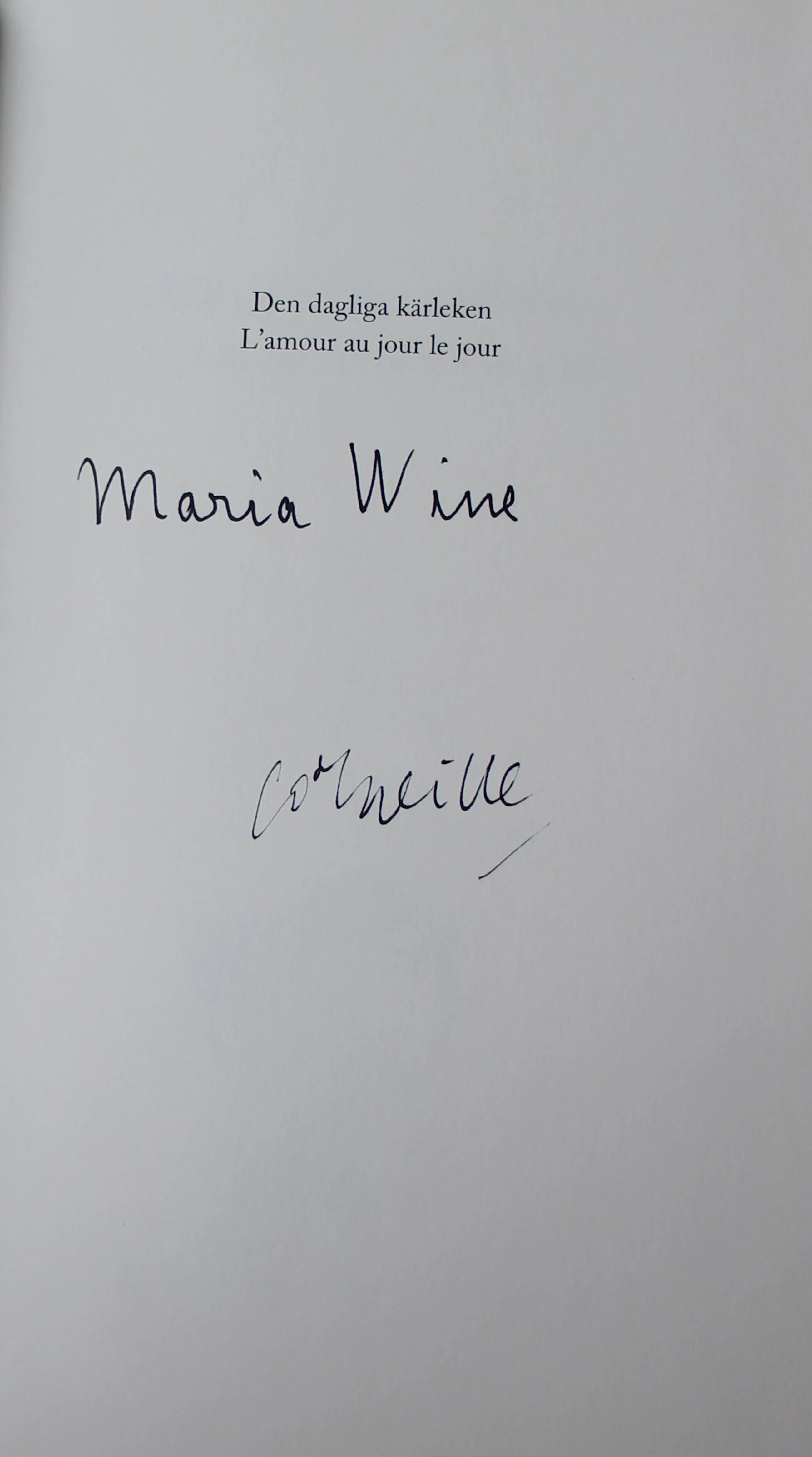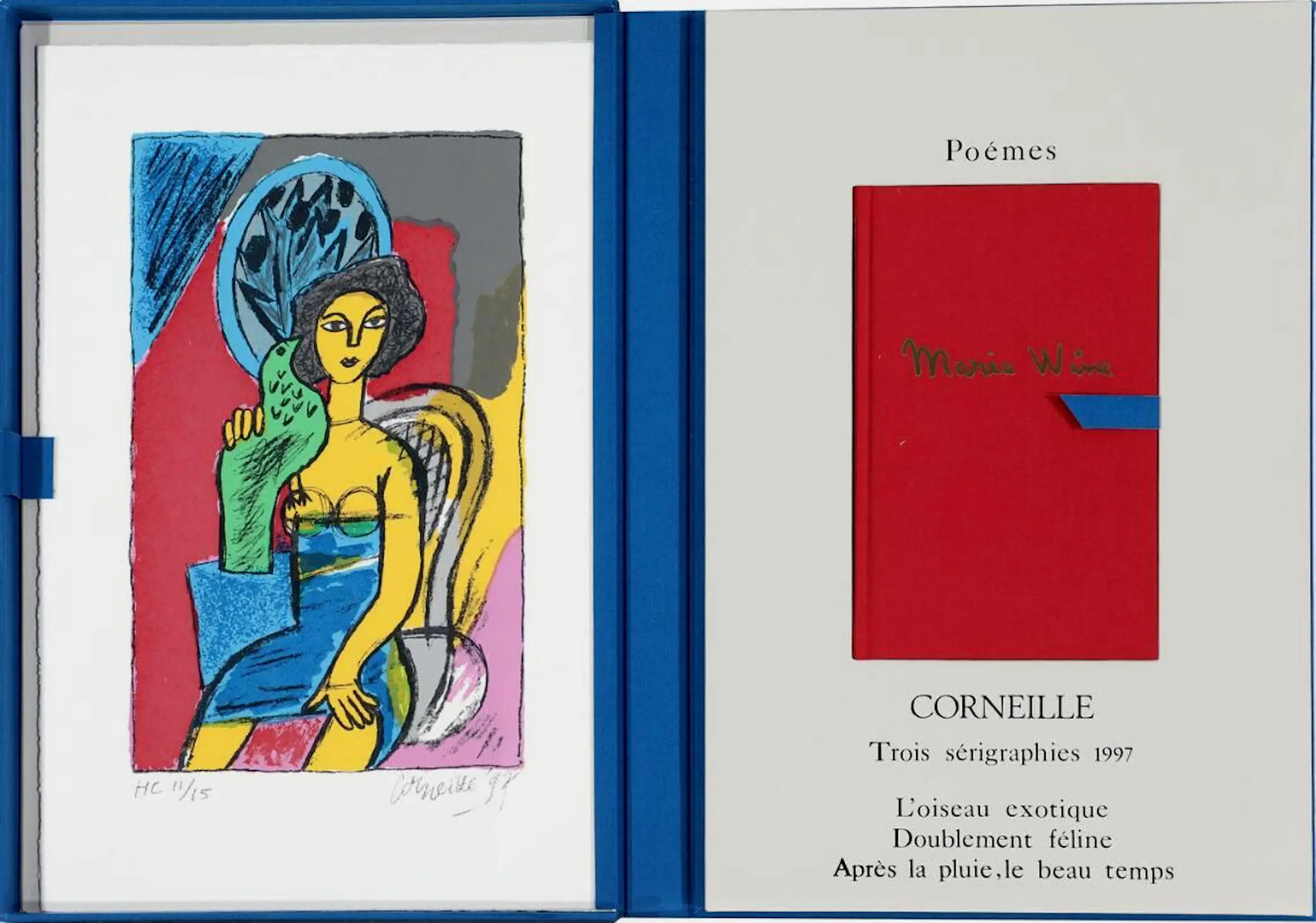 Complete serie met 3 kleurenlitho's van Corneille. Incl een gesigneerd boek met gedichten van Maria Wine(gesigneerd door Maria Wine en Corneille). Titel: l'amour au jour le jour II. Jaar: 1997. Compositie. Oplage: HC 11/15. Afmetingen per blad: H40 x B26cm. De werken zijn, rechts onderaan, gesigneerd door de kunstenaar. De authenticiteit van de aangeboden werken wordt volledig gegarandeerd. Een certificaat van echtheid kan, op aanvraag, worden gemaild.