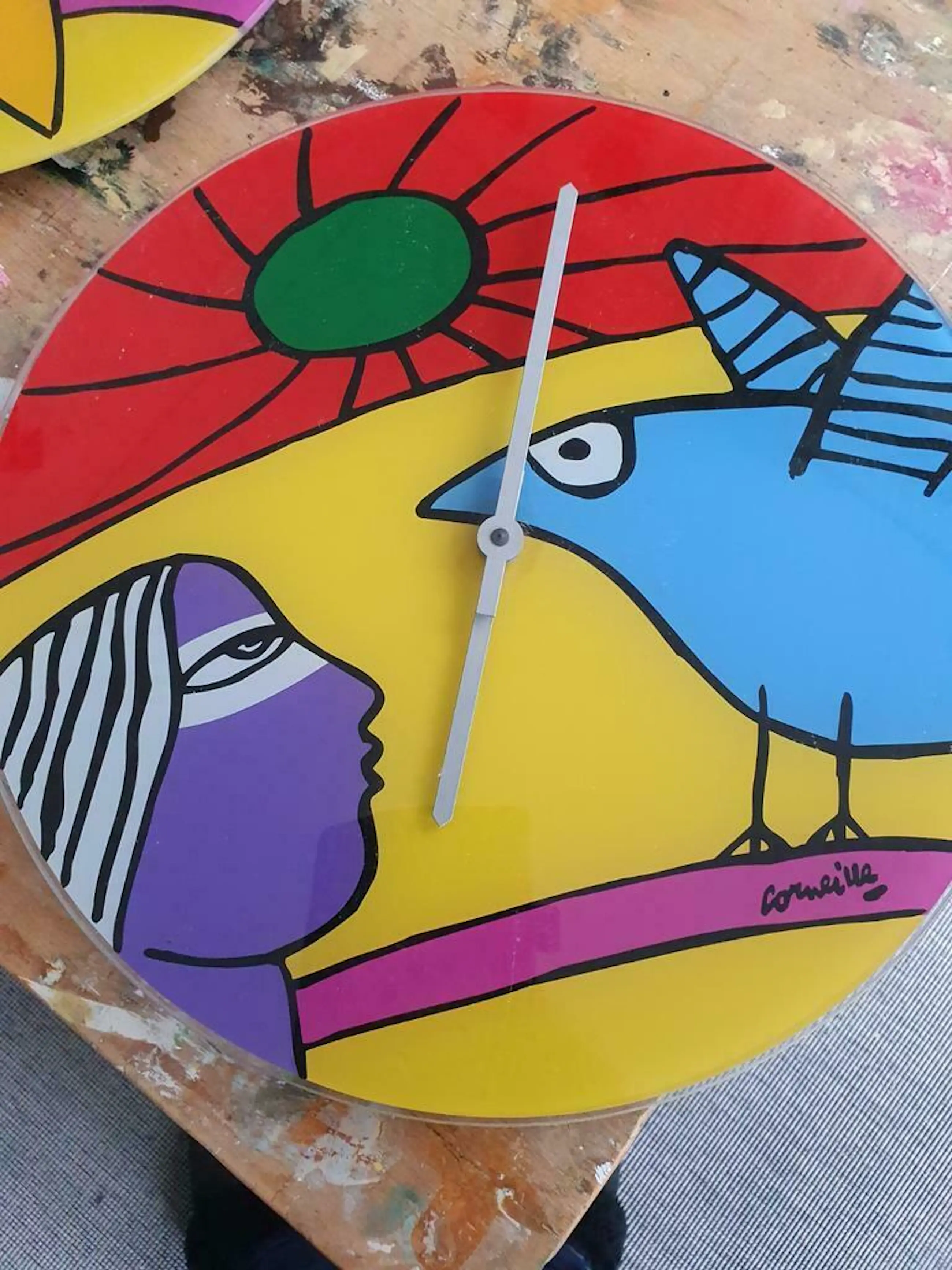 3 verschillende mooie glazen klokken met afbeeldingen van Corneille doorsnede 35 cm nu samen voor een lage prijs