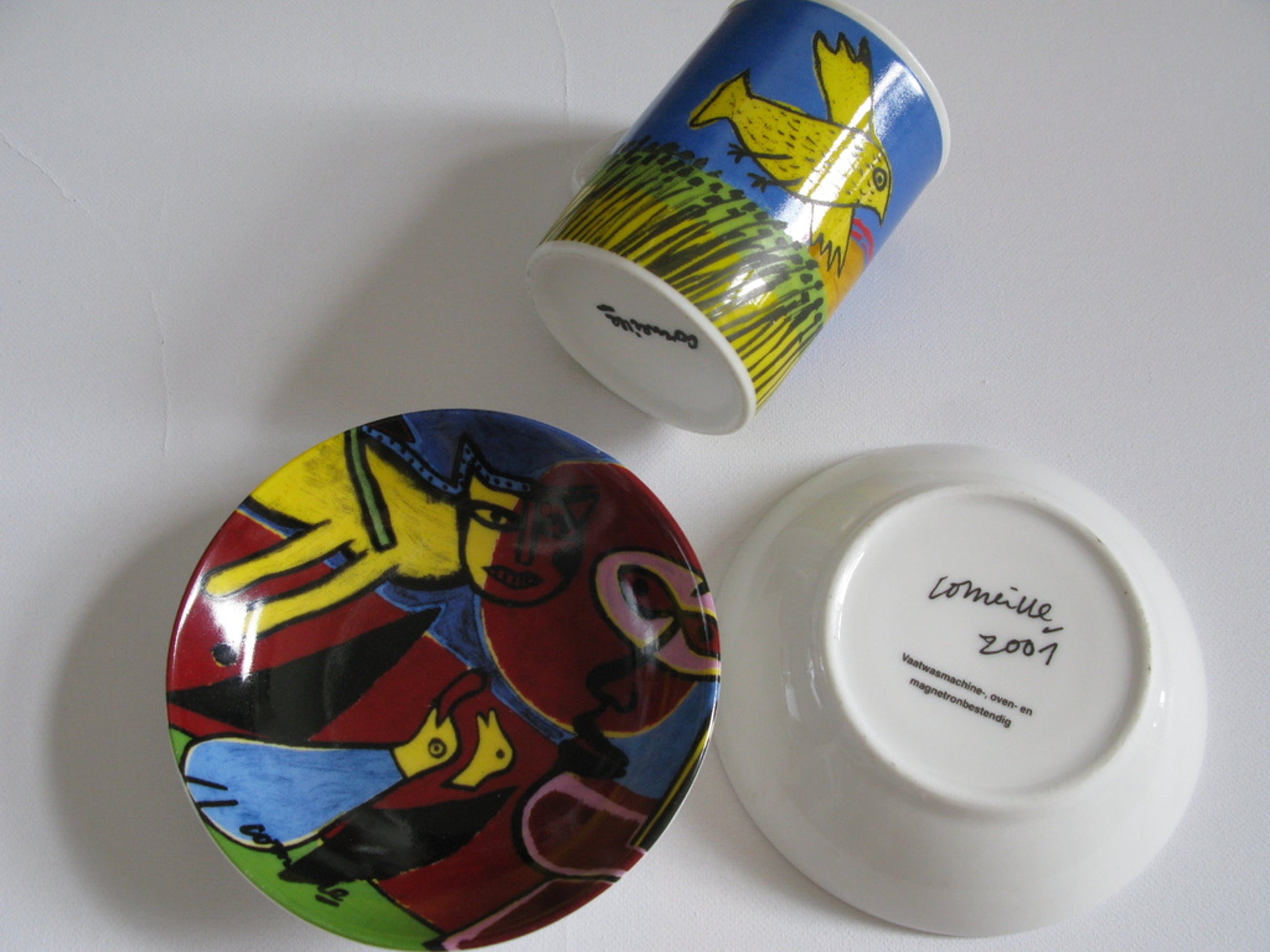 Uit nalatenschap deden wij de hele collectie Corneille objecten van de hand. Dit is de laatste set die wij nog hebben en kunnen aanbieden, waaronder 2 x Design schaaltjes porcelein (zeldzame uitgave) en 1x Design koffiekopje. Allen gesigneerd.