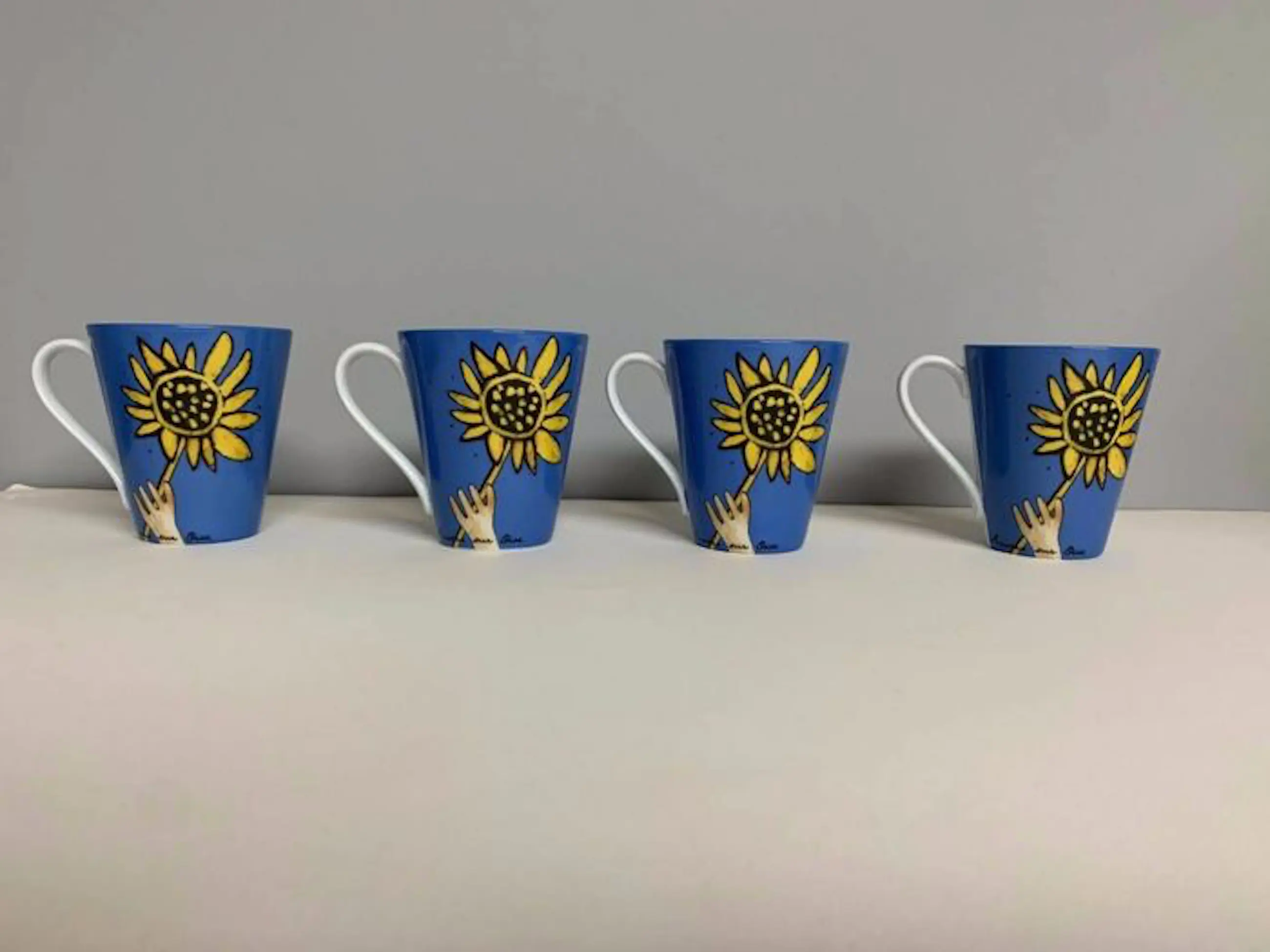 Mooie set van 4 mokken - Authorized Edition Mokken die zeldzaam zijn geworden Set van 4 mokken in perfecte staat : De Zonnebloem en de Vogel - Auvers-sur-Oise - Hulde aan Van-Gogh - signature meegedrukt