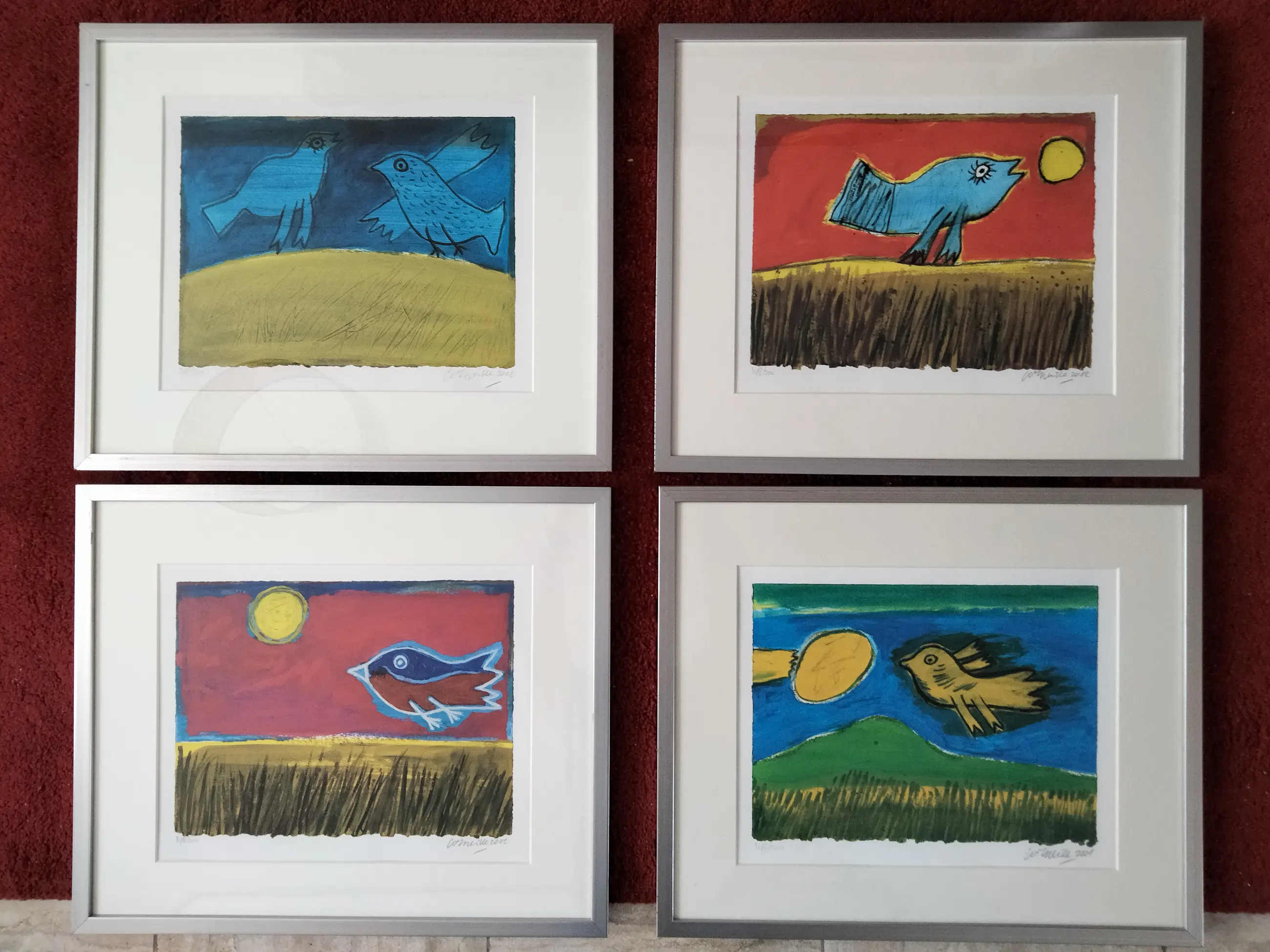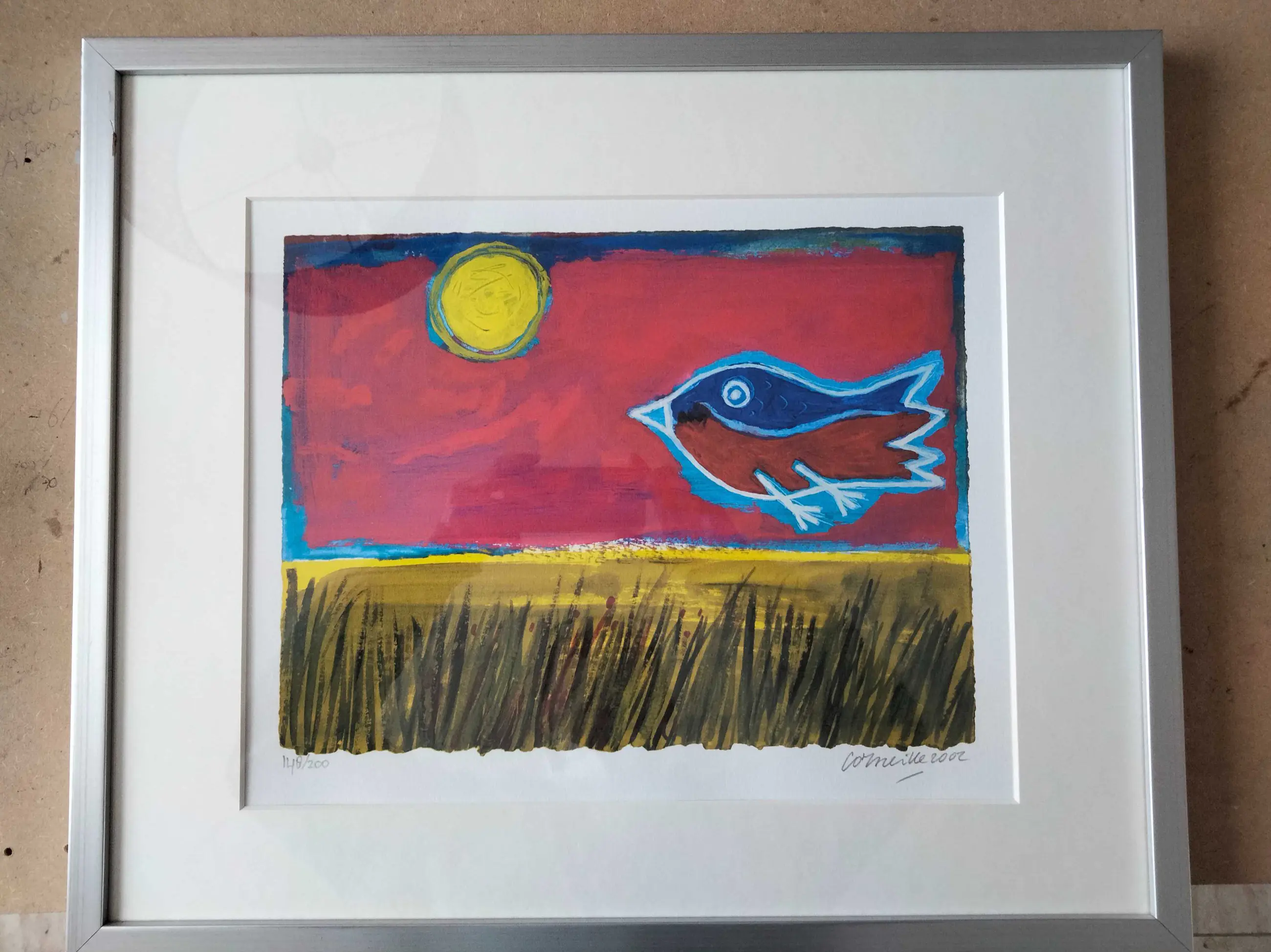Fraaie kleurrijke zeefdrukken set [ 4 stuks] van corneille uit 2002 Alle 4 de werken hebben hetzelfde oplagenummer namelijk:148/200 Strak ingelijst in mooie lijsten. Ophangklaar Uiteraard gesigneerd gedateerd en genummerd in potlood door corneille. Hier en daar kleine imperfecties aan de lijsten Dit kavel is op te sturen doch afhalen geniet de voorkeur. Verzenden gebeurd aangetekend op risico van koper. Afhalen kan in Eindhoven. Bezorging is mogelijk vanaf eindhoven in een straal van 250 km a 0,30/km
