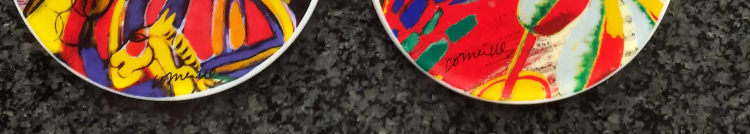 Fraaie, kleurrijke onderzetters in de zo kenmerkende motieven van Corneille