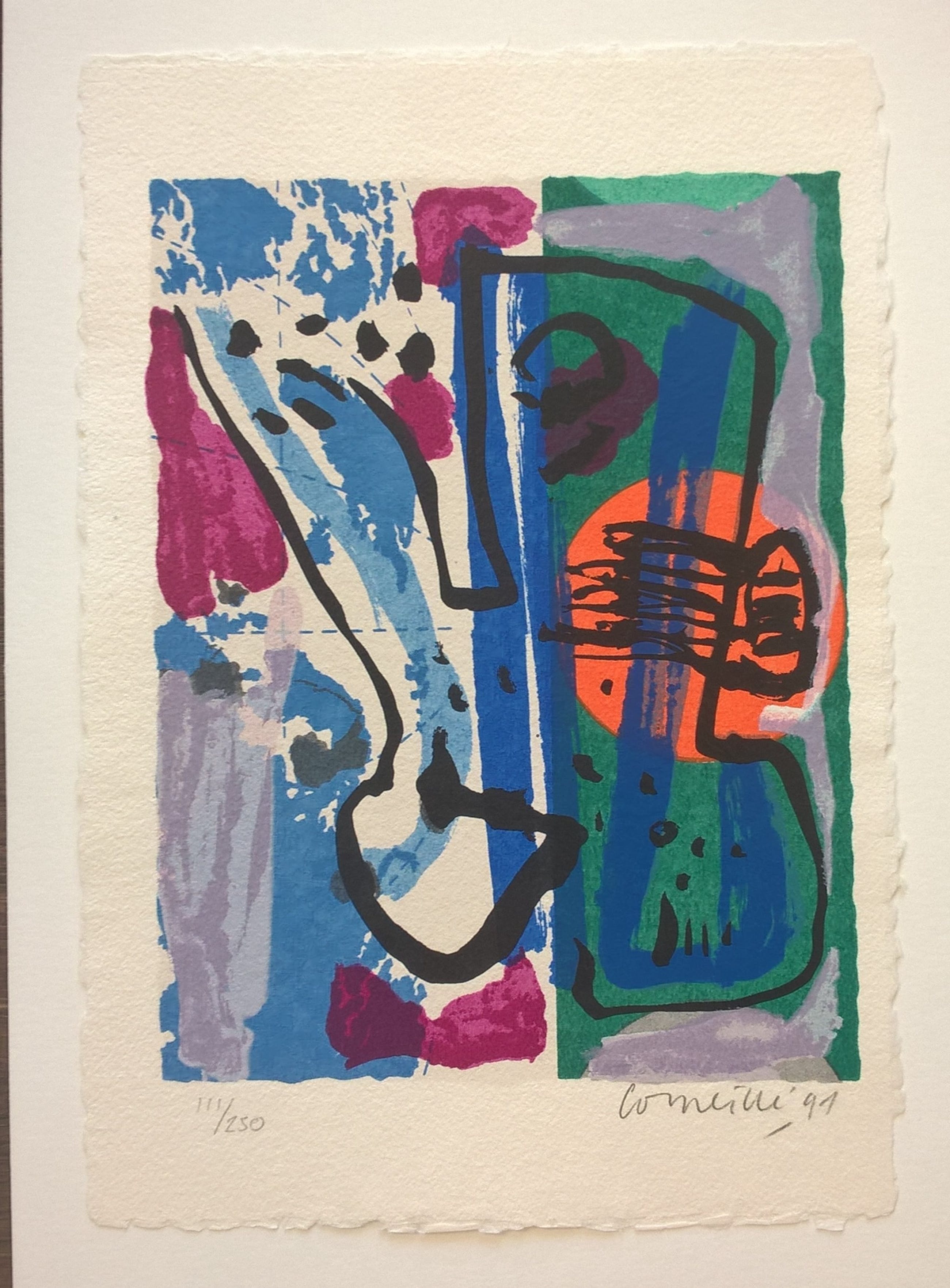 gesigneerd met Corneille, linksonder met 111/250. Beeldmaat 23 x 18 cm.