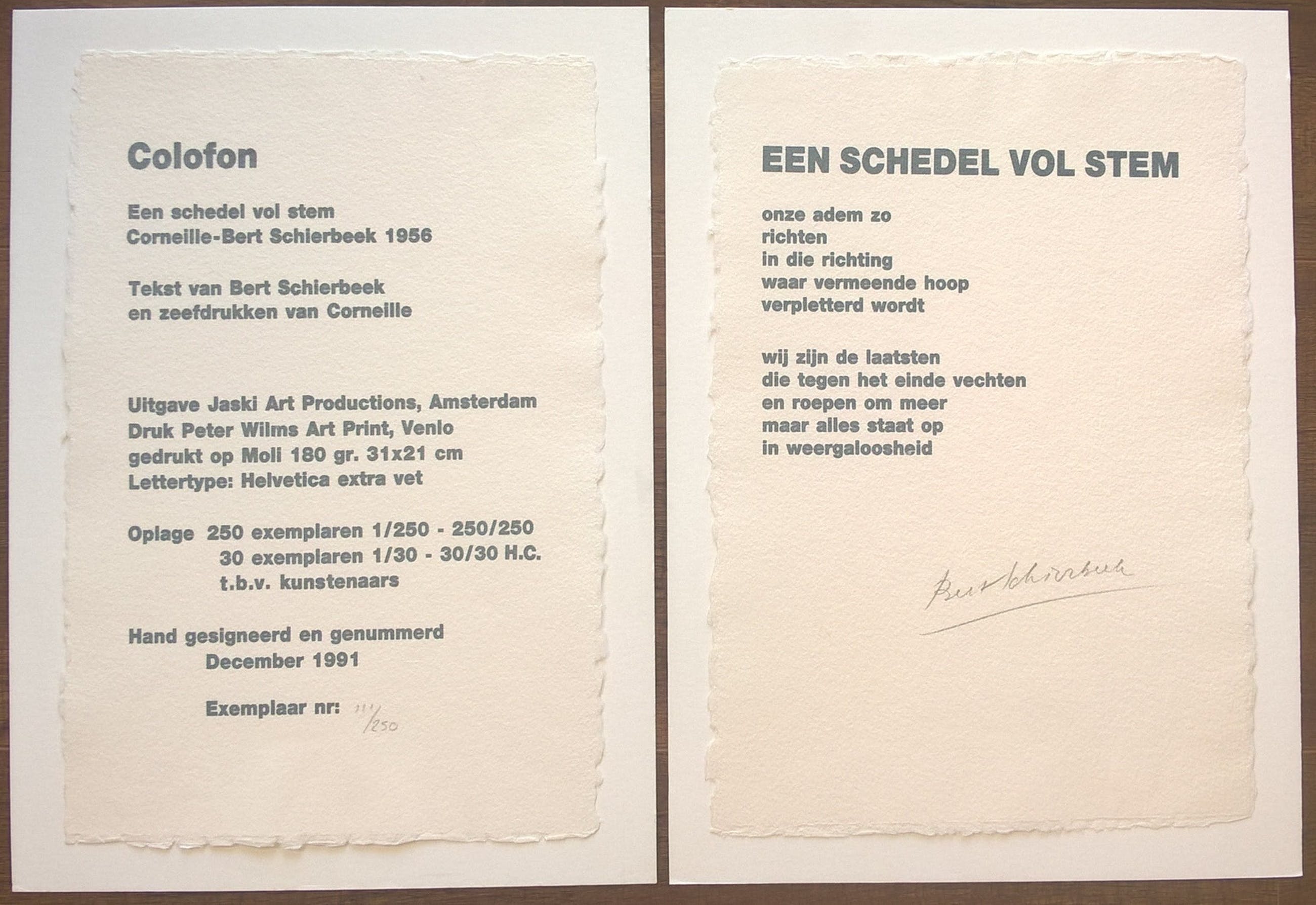 Bert Schierbeek. Van de kunstmap Een Schedel Vol Stem. Rechtsonder zijn de werken