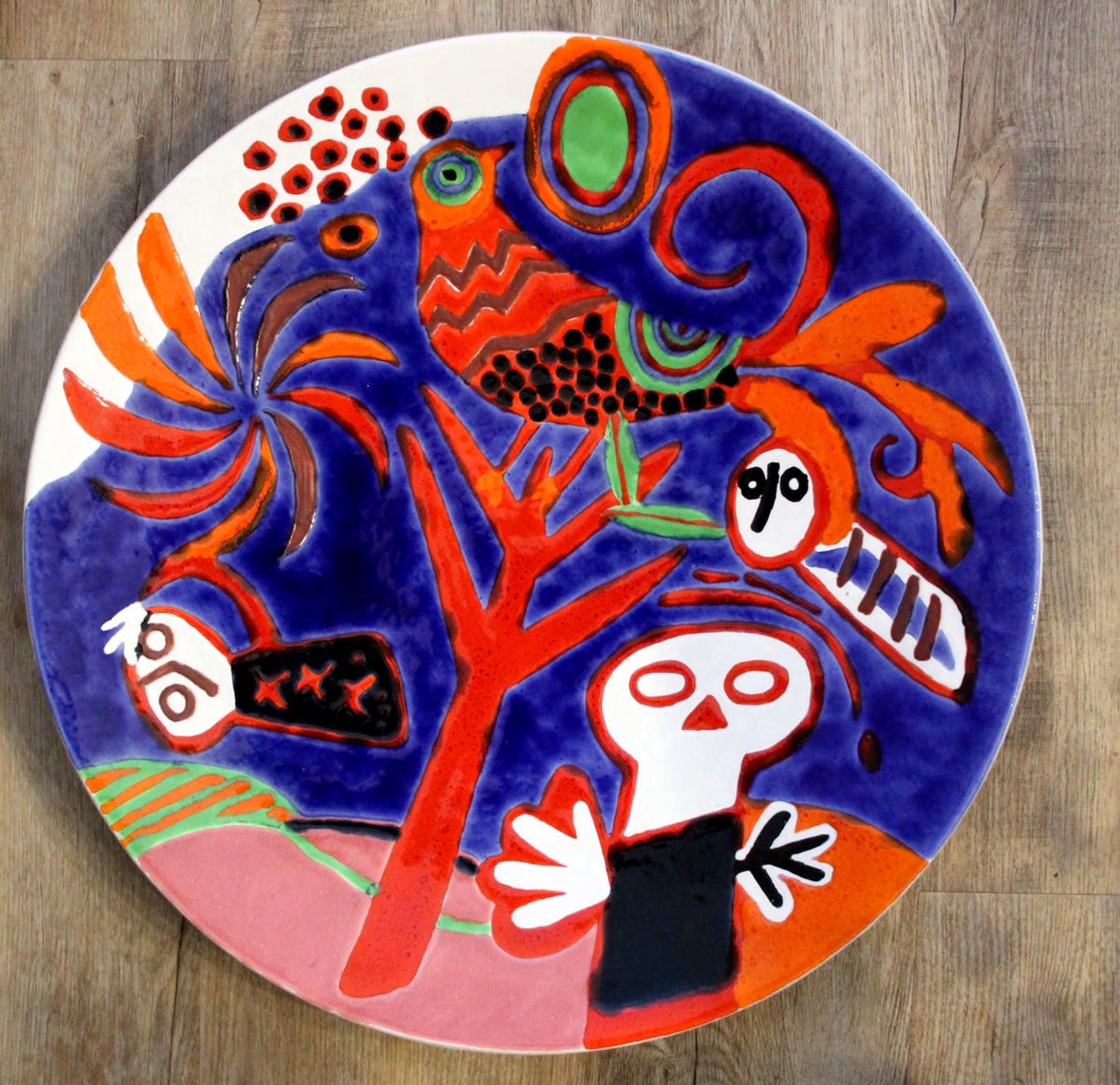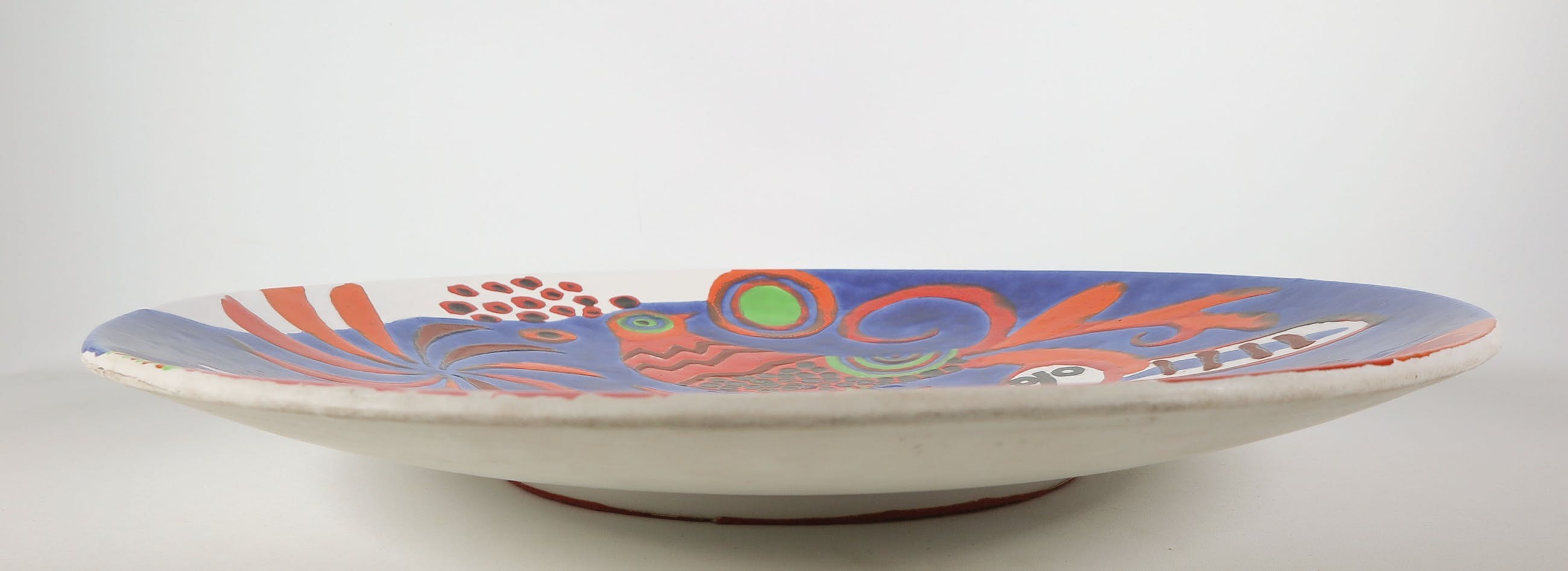 Zeer grote aardewerken schaal van Corneille uit 1993. Nummer:14/25. Doorsnede: 60 cm. De schaal is op de achterzijde gesigneerd. Herkomst: Holland Art Gallery (Bijenkorf). In verband met de waarde, grootte en kwetsbaarheid kan dit item enkel opgehaald worden, of bezorgd worden per koerier.