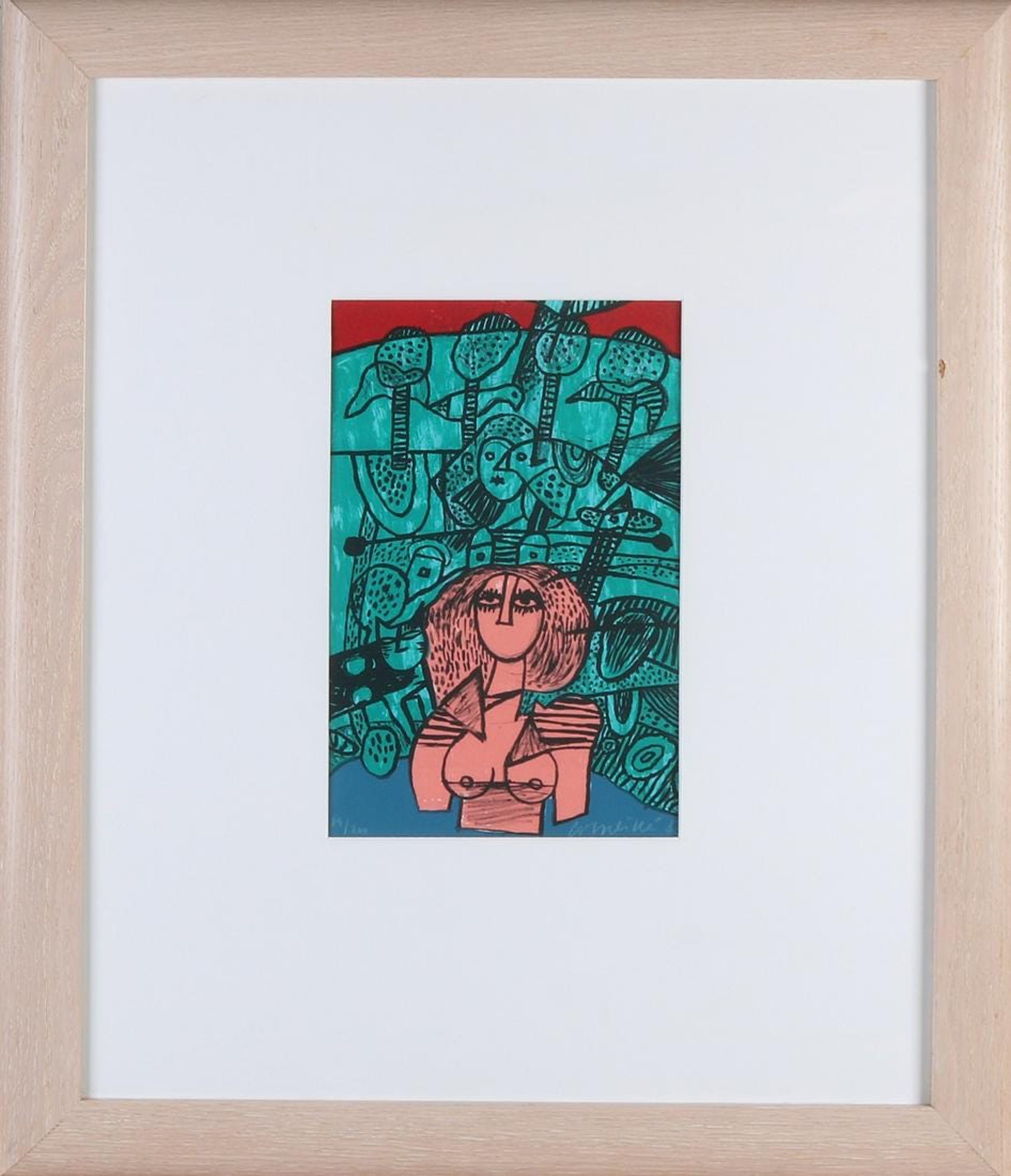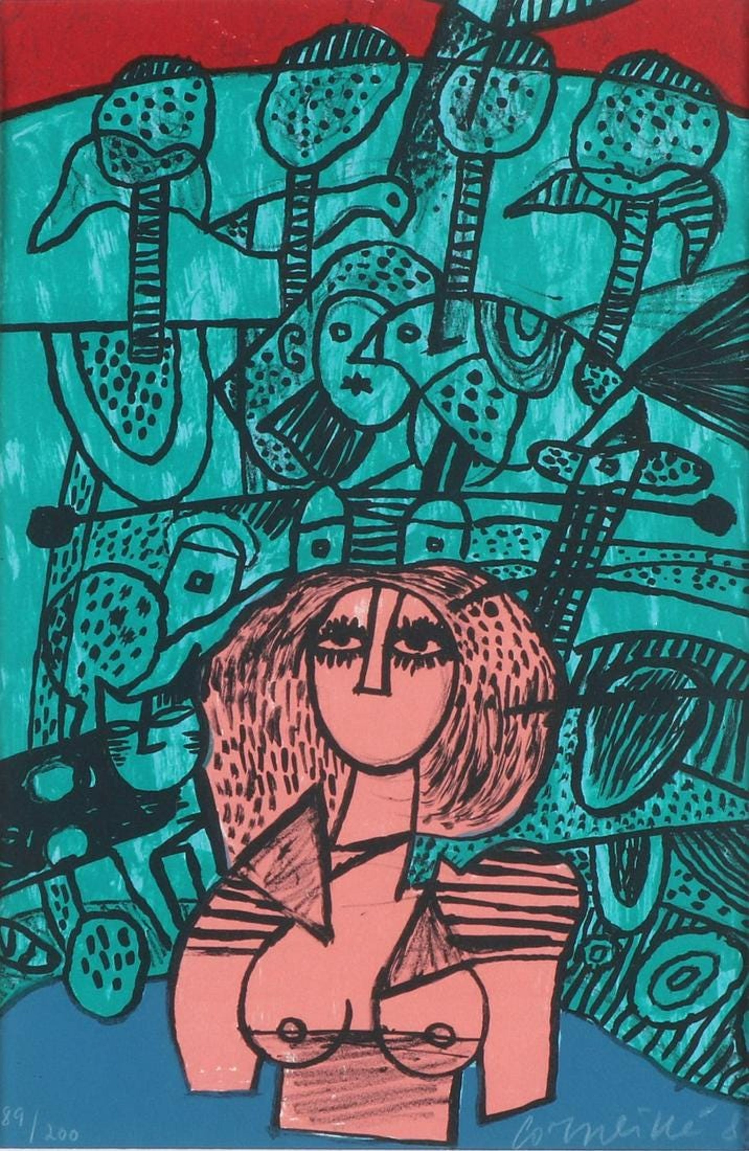Kunstenaar: Corneille Titel: Figuratieve Compositie, 1982 Techniek: Lithografie Medium: Fine art paper Afmetingen: 31 x 20 cm Gesigneerd: Ja, editie van 200 Ingelijst: Ja, 60 x 40 cm Conditie: Mint