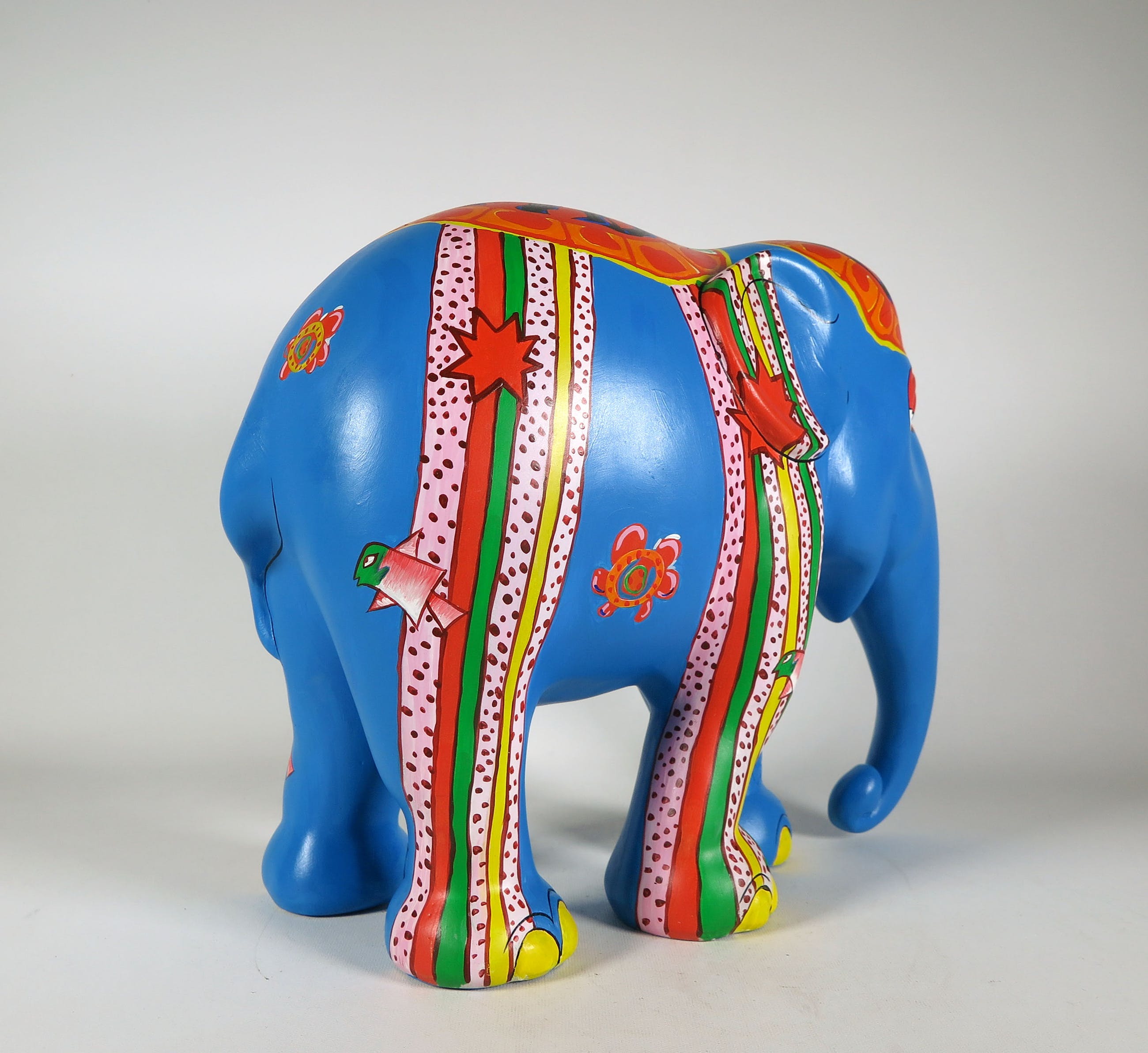 Handbeschilderde olifant uit de serie Elephant Parade, naar ontwerp van Corneille. Dit betreft oplage 21/125. Bijgaand een certificaat, handgesigneerd door Corneille.