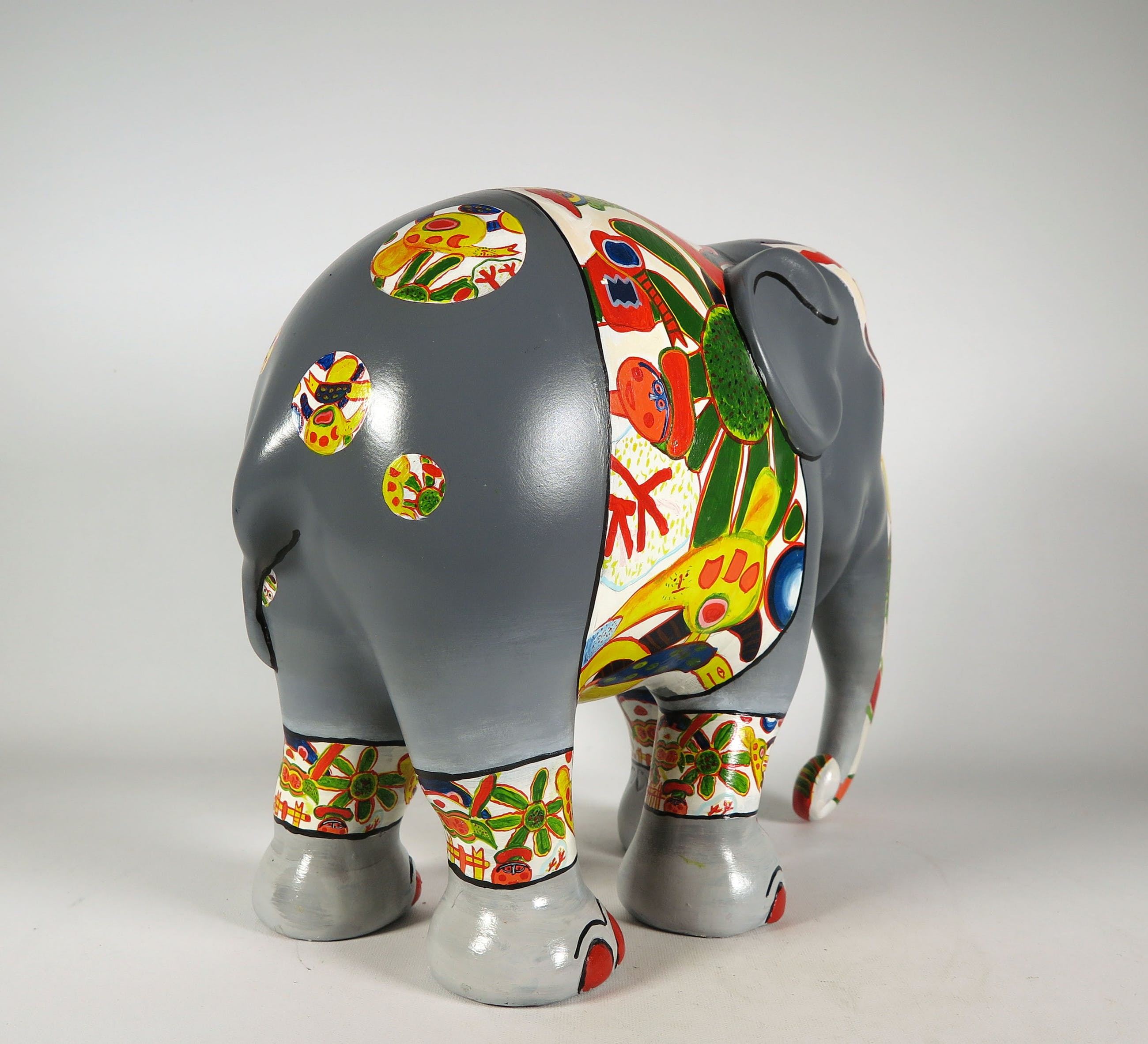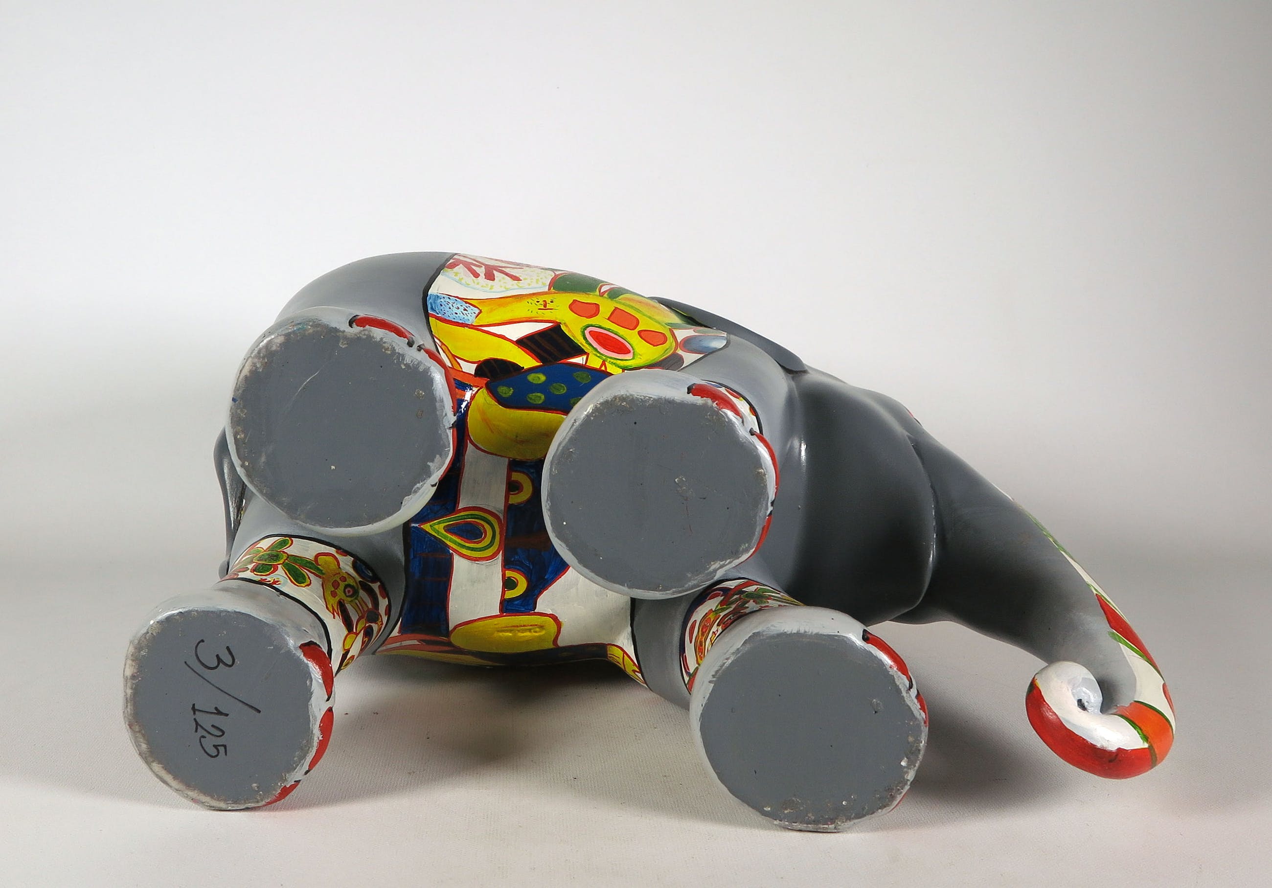 Handbeschilderde olifant uit de serie Elephant Parade, naar ontwerp van Corneille. Dit betreft oplage 3/125. Bijgaand een certificaat, handgesigneerd door Corneille.