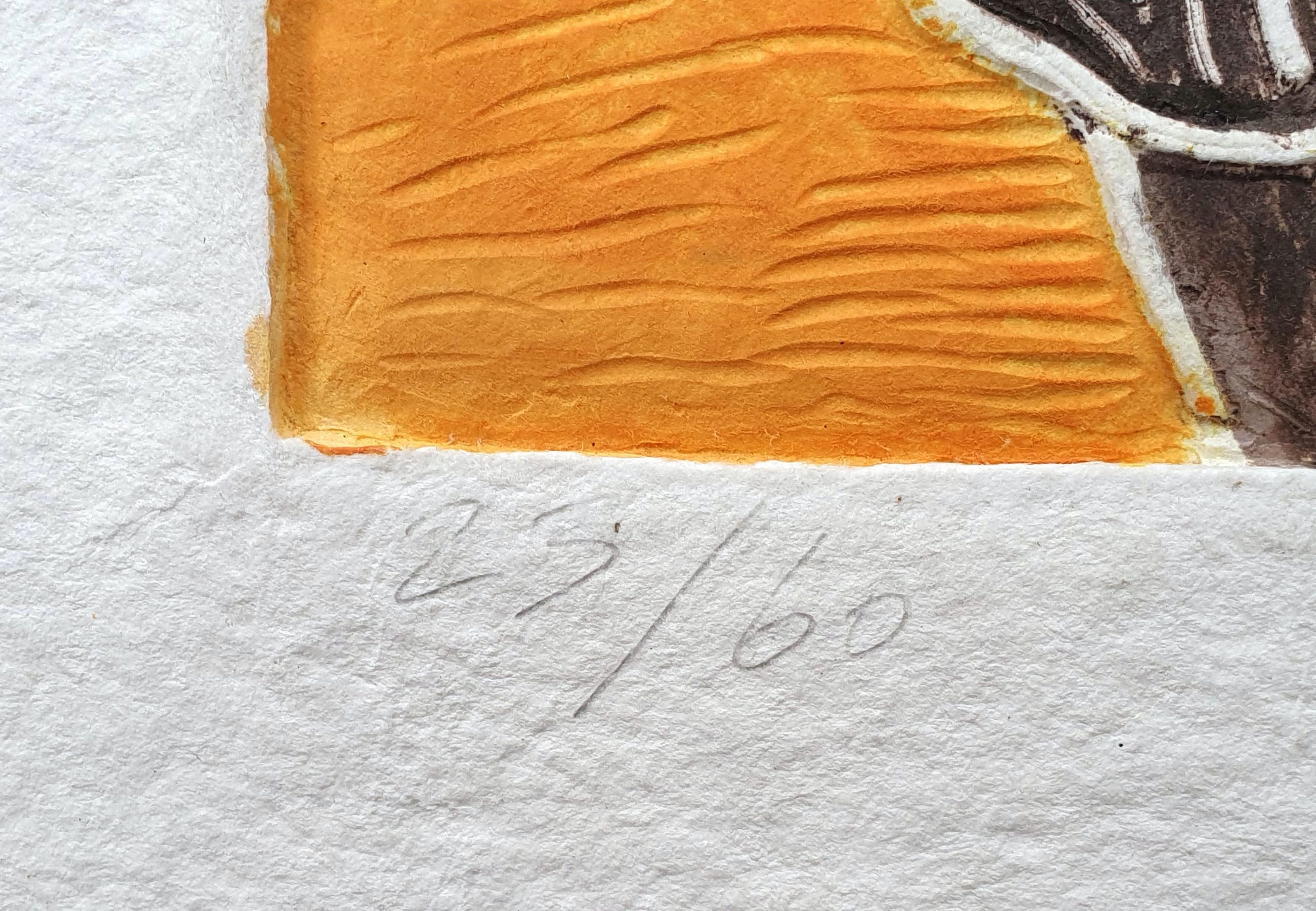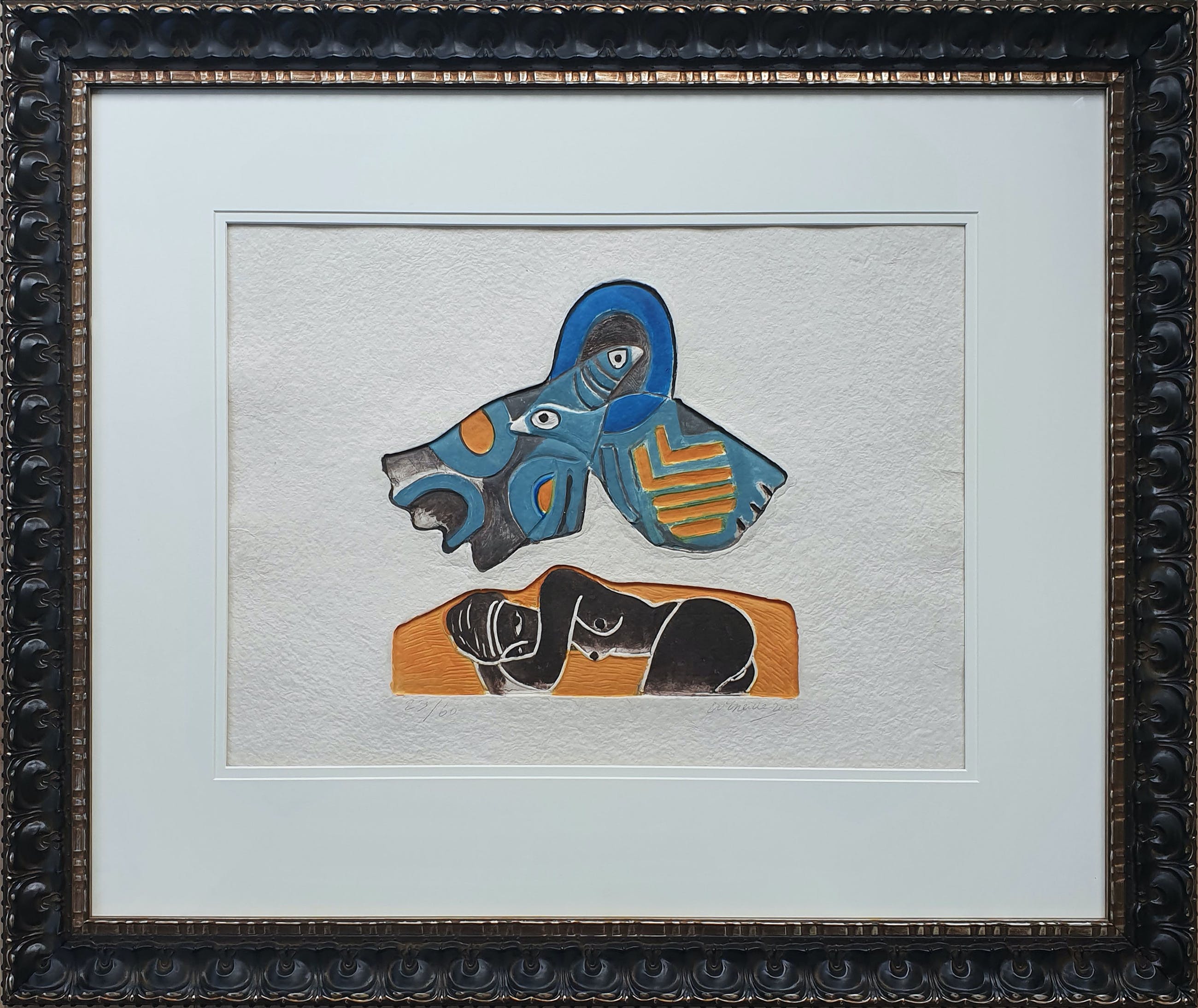 Het werk is professioneel ingelijst in een luxe nieuwe lijst en is voorzien van een bijpassend passe-partout. Het indrukwekkende geheel is in perfecte staat.