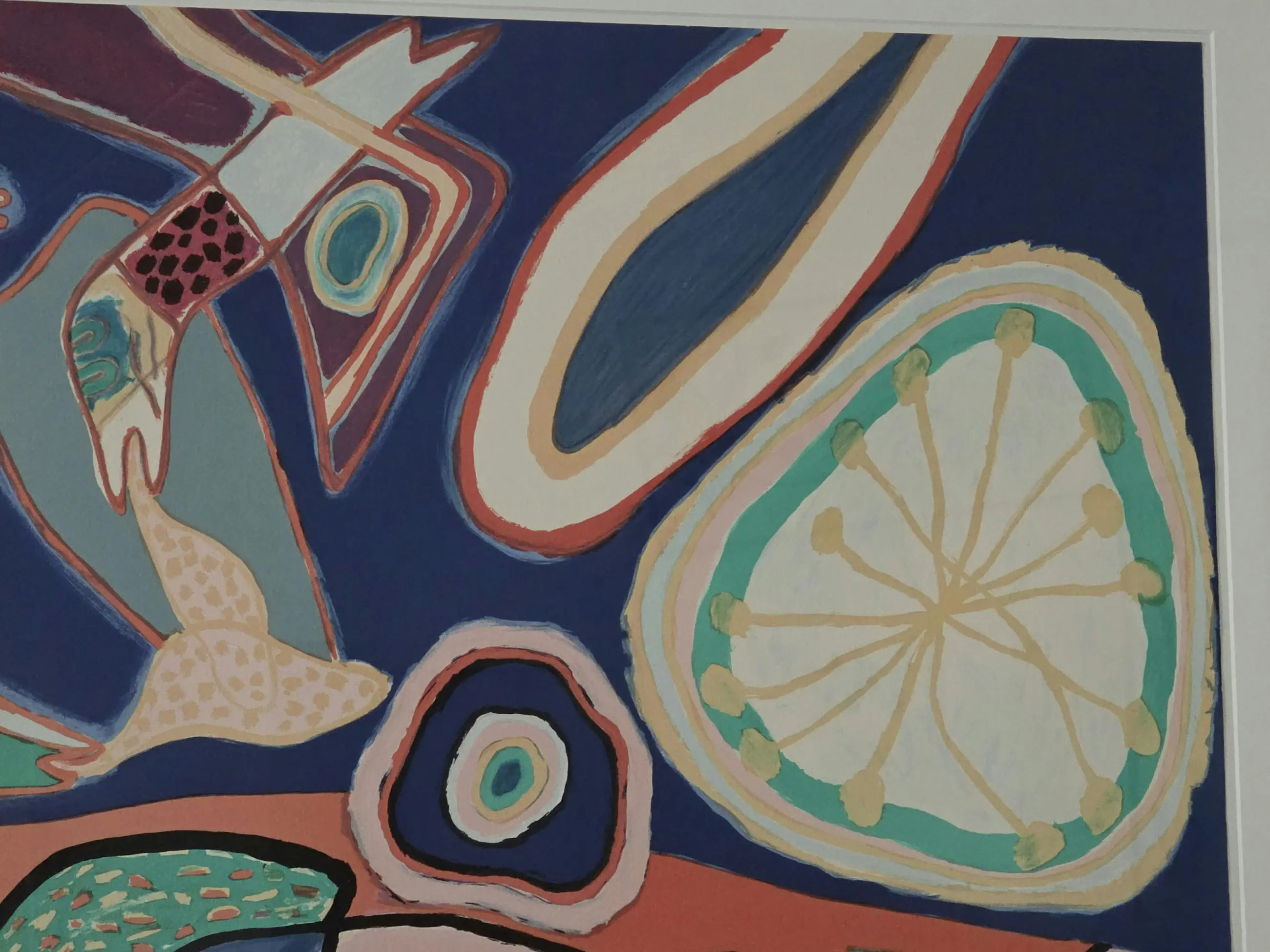 Naast dat het een 1ste druk uitgave is, wijken 2 kleuren af in vergelijking met waarschijnlijk volgende uitgaven van de 200 uitgaven. Bij deze 1e druk sowieso is er wat meer geel gebruikt ipv oranje, zoals te zien is aan bijvoorbeeld de rechter haarlok van de dame, De gekruisde kern van de grotere bal vorm rechts boven en halve bal links boven.