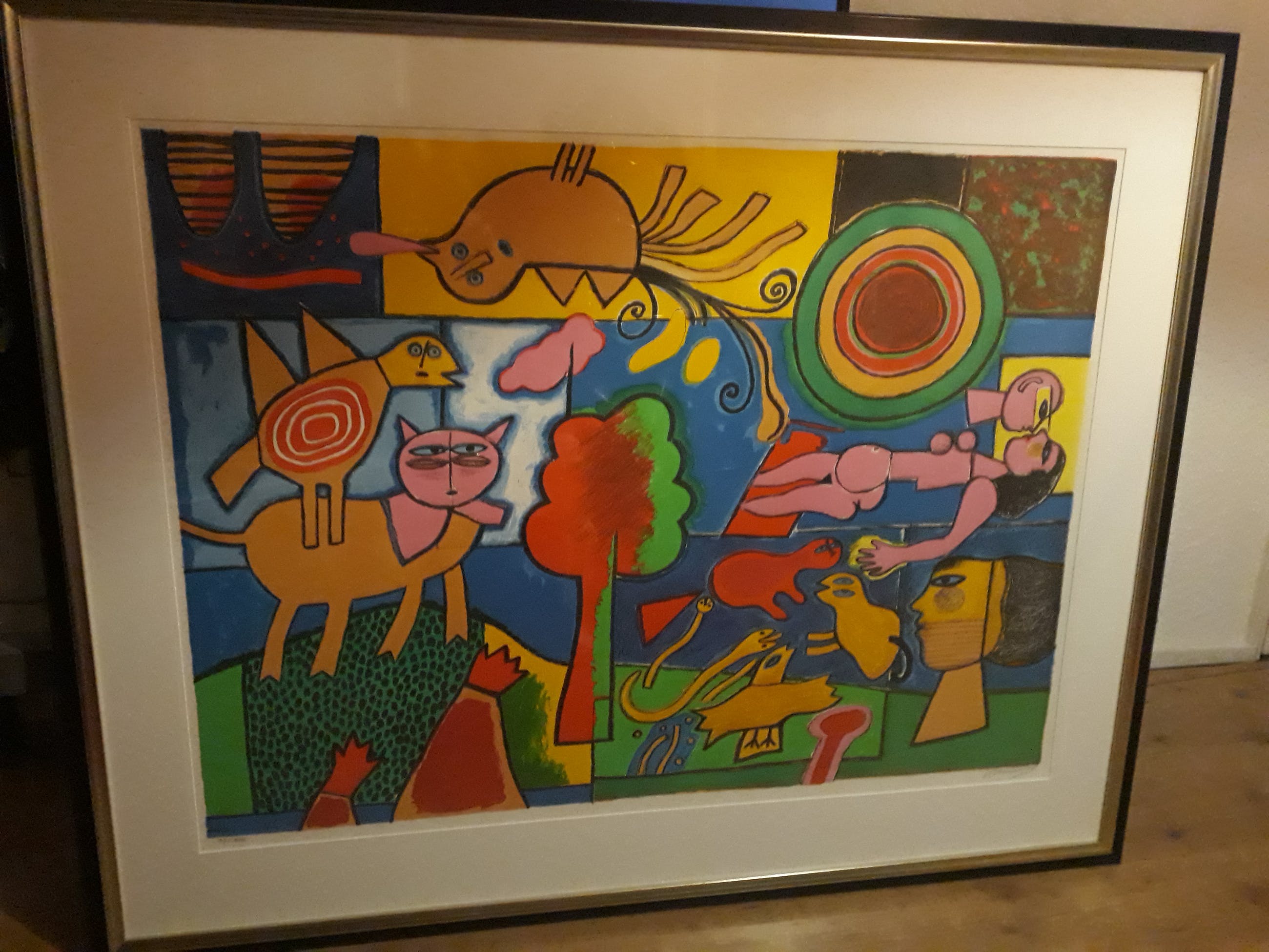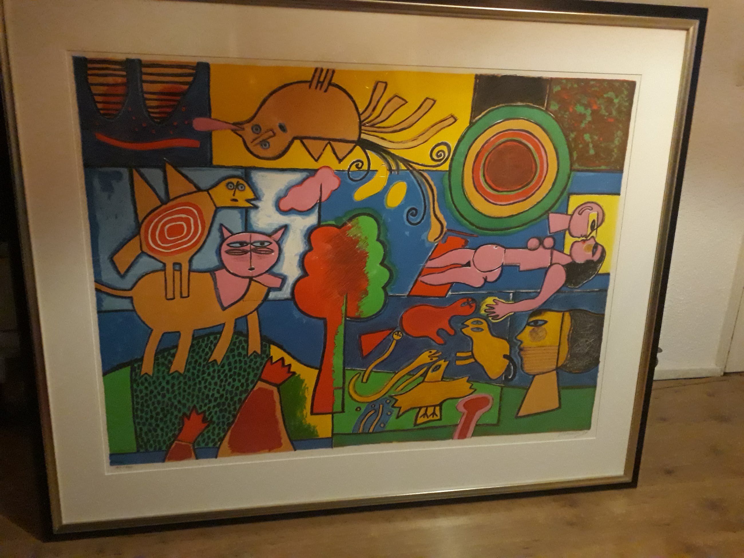 weinig aangeboden erg mooie en zeer grote unieke zeefdruk van corneille uit 1994 uiteraard rechtsonder potlood gesigneerd en gedateerd. Linksonder in potlood genummerd ,oplage :193/200. Zeer mooi en strak ingelijst,ophangklaar. Dit werk is uiteraard niet op te sturen. Afhalen kan in eindhoven Of persoonlijk bezorgen a 0,35 /km vanaf eindhoven in een straal van 250 kilometer