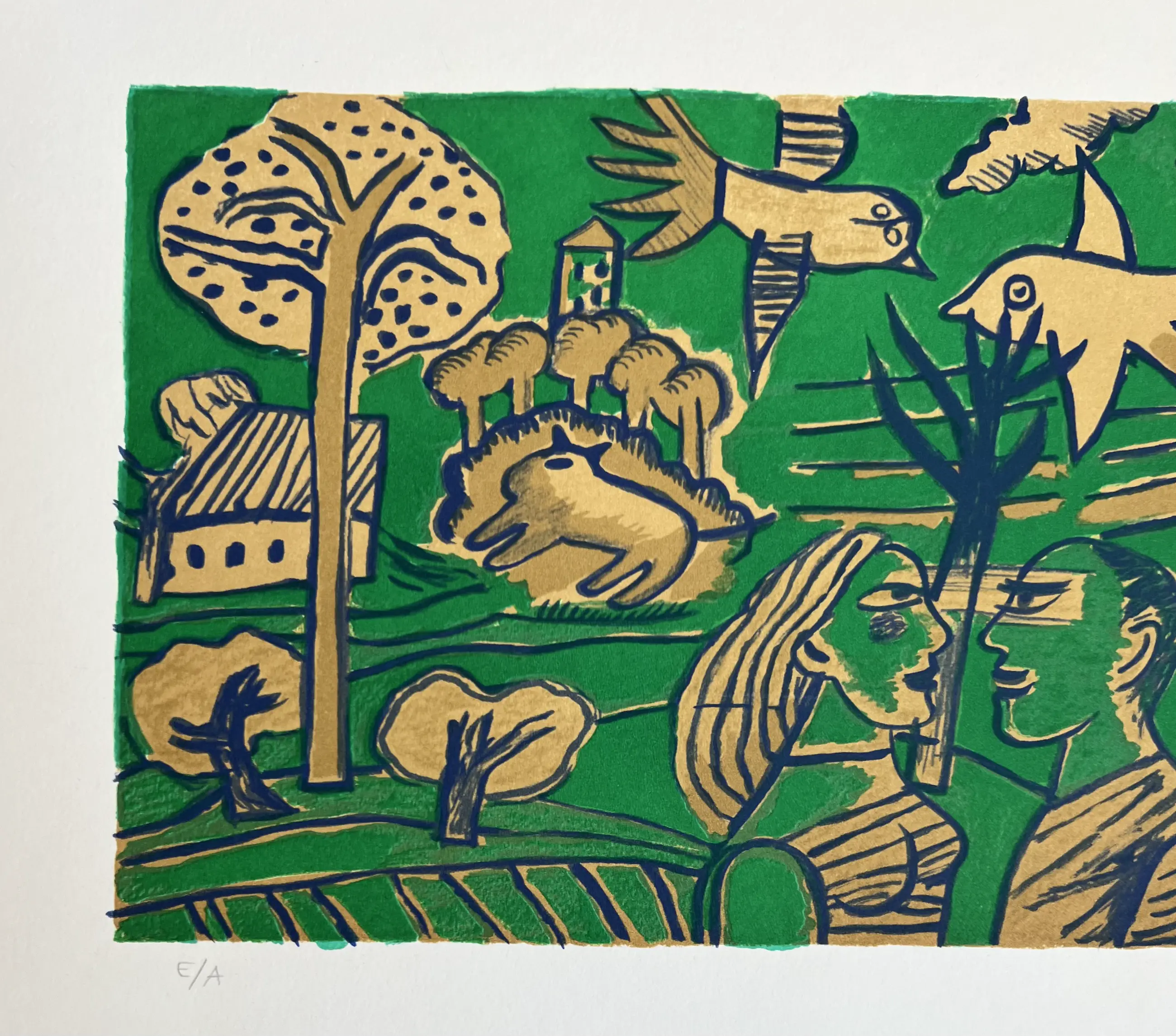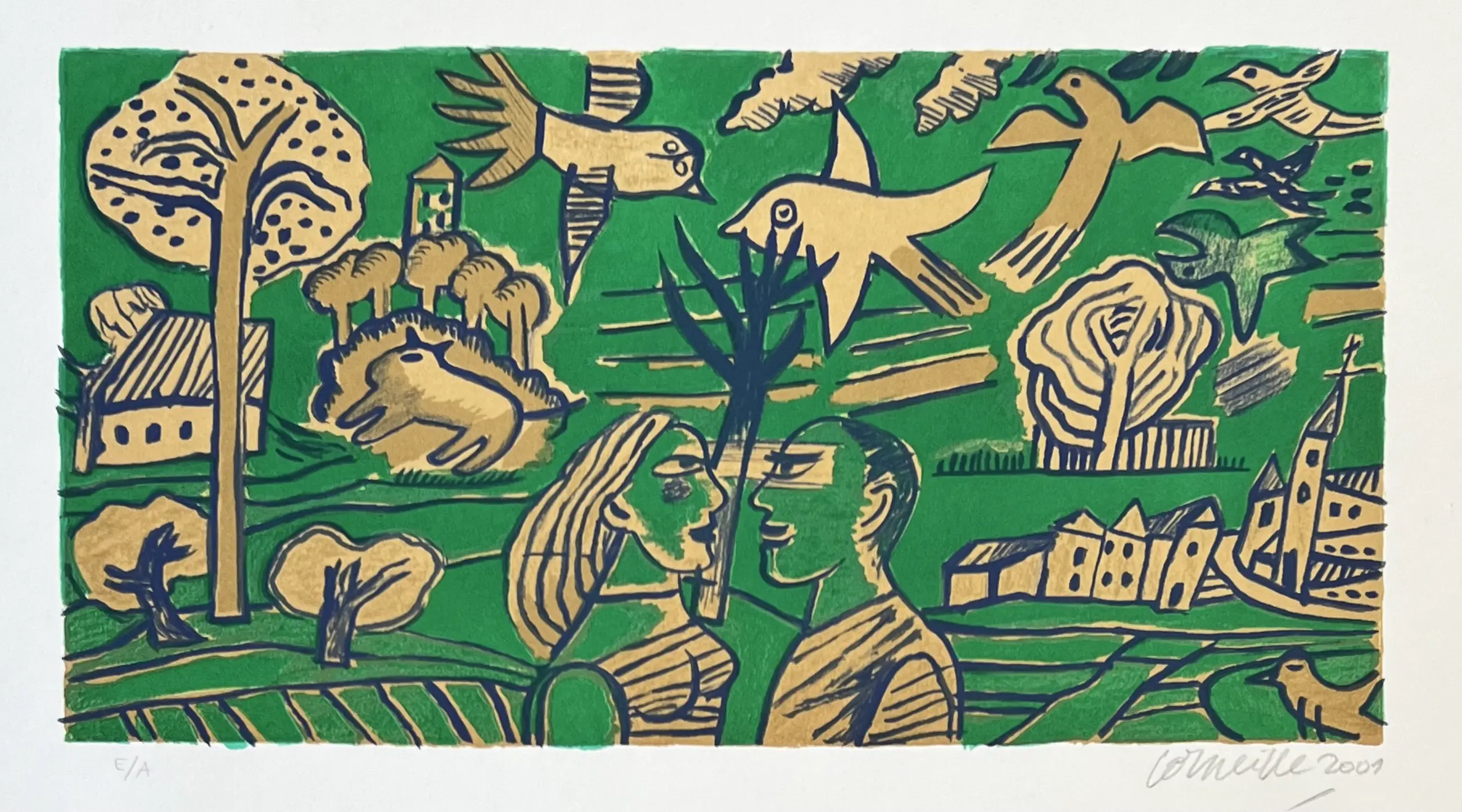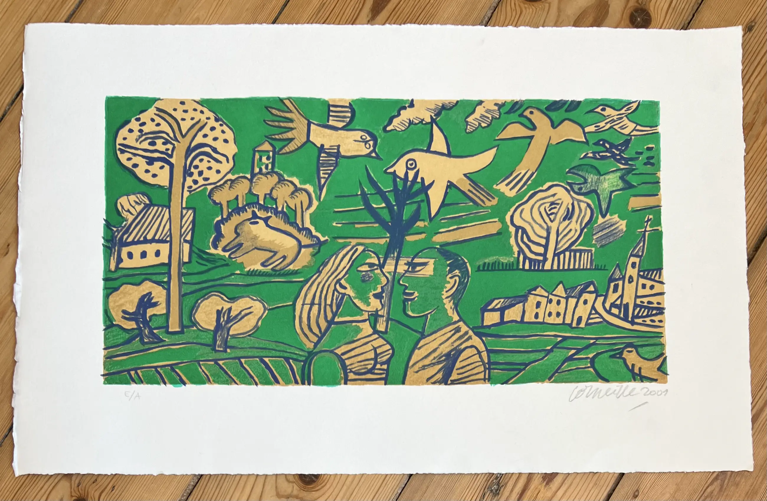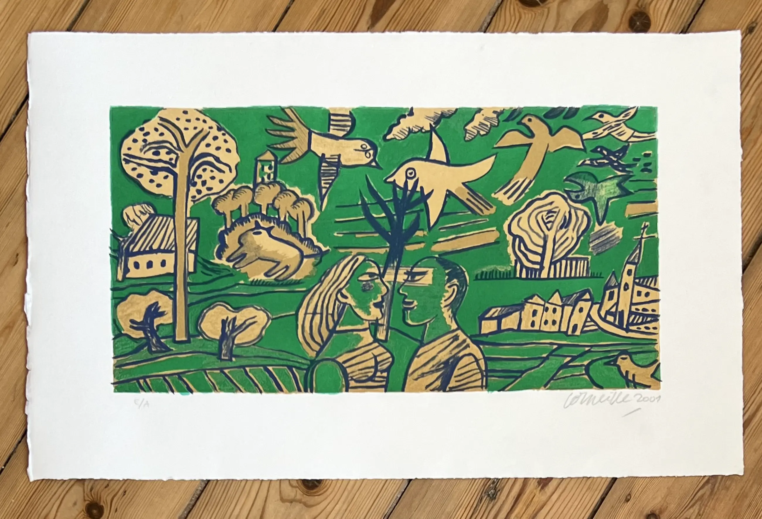 Auvers sur Oise - Van Gogh's Kerk Schitterend werk, rechtsonder gesigneerd in grafiet. 2001 - Artist's copy EA Guillaume Corneille had zijn atelier ingericht in zijn tuin tegenover Van Goghs korenvelden. Hij ligt nu begraven naast de twee broers.