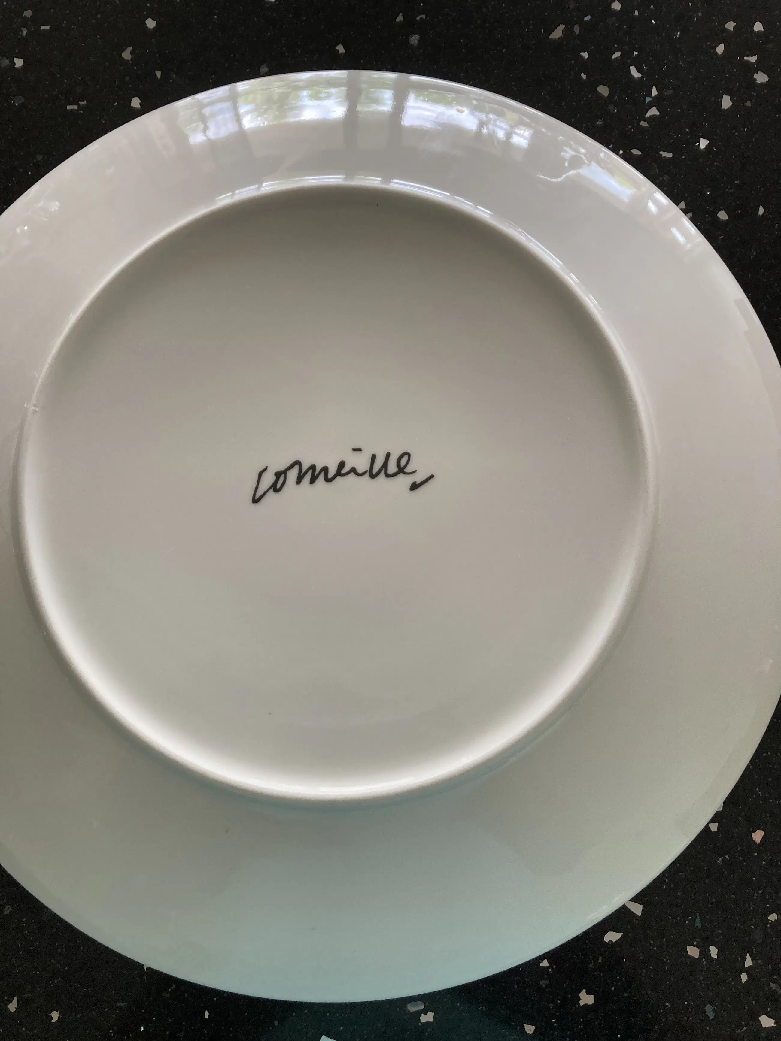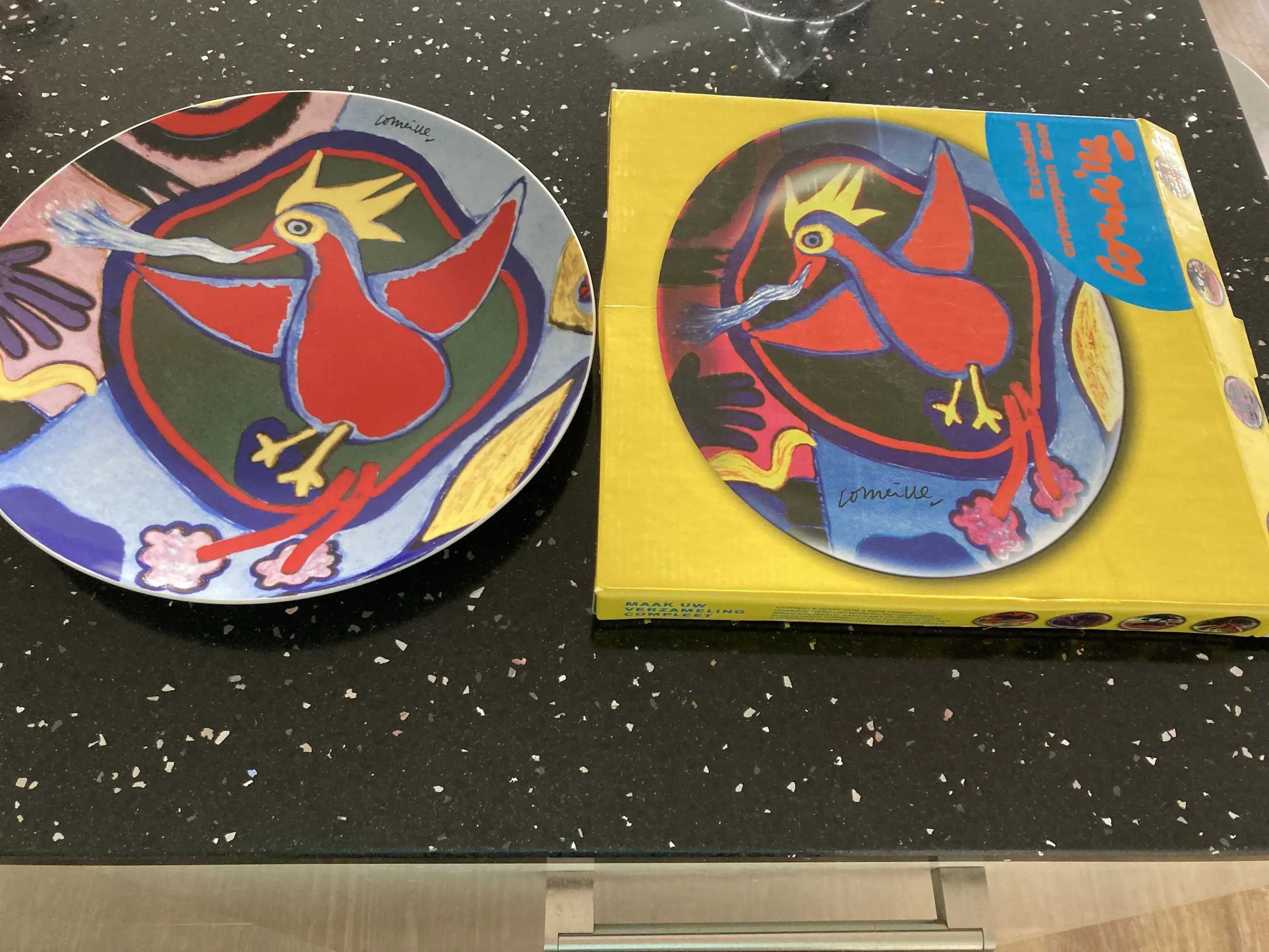 Fraai keramiek bord van Corneille. Zowel bovenop als onderop gesigneerd met Corneille. Zit in de originele doos.