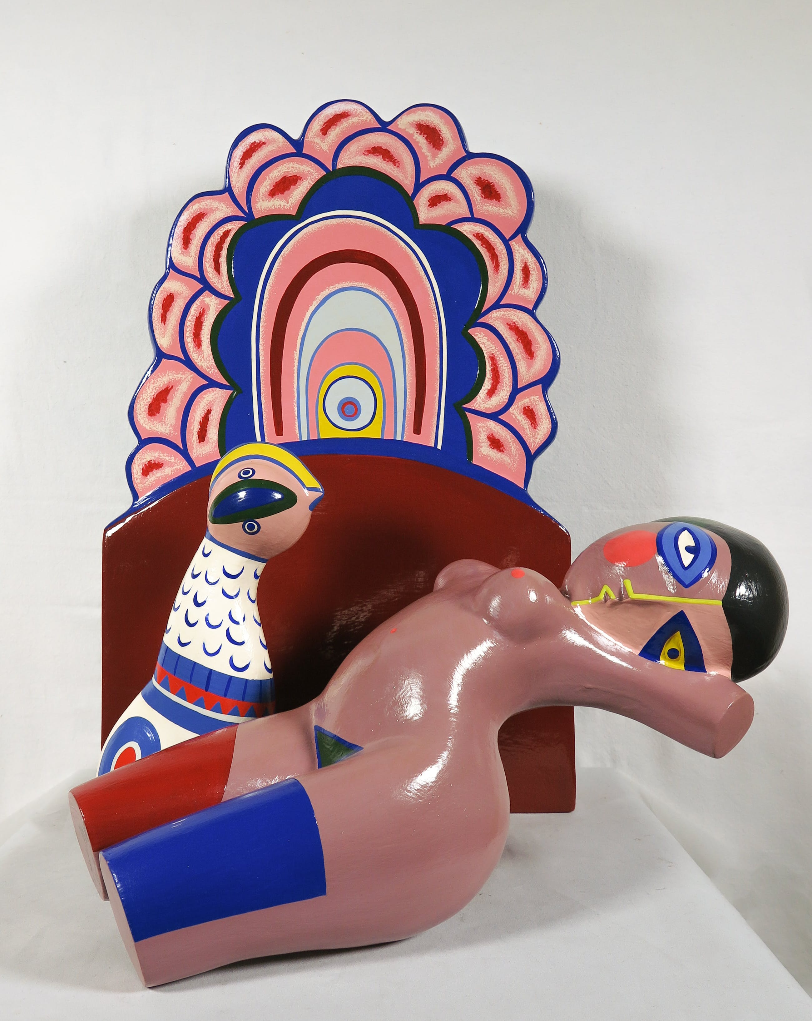 Drie-delige beeldengroep van kunsthars, naar de zeefdruk Seduction van Corneille. Ieder deel is afzonderlijk gesigneerd, genummerd en gedateerd.