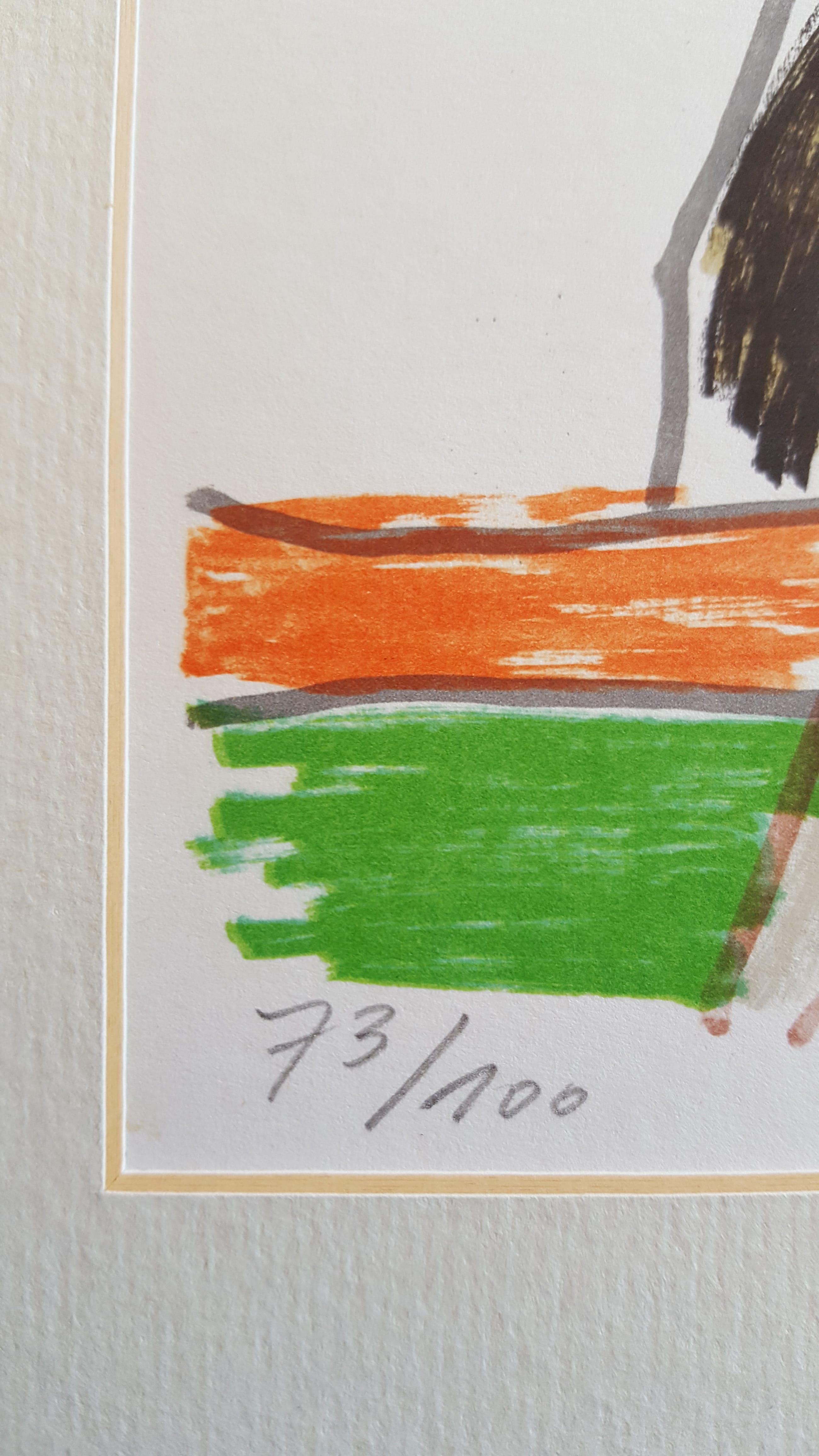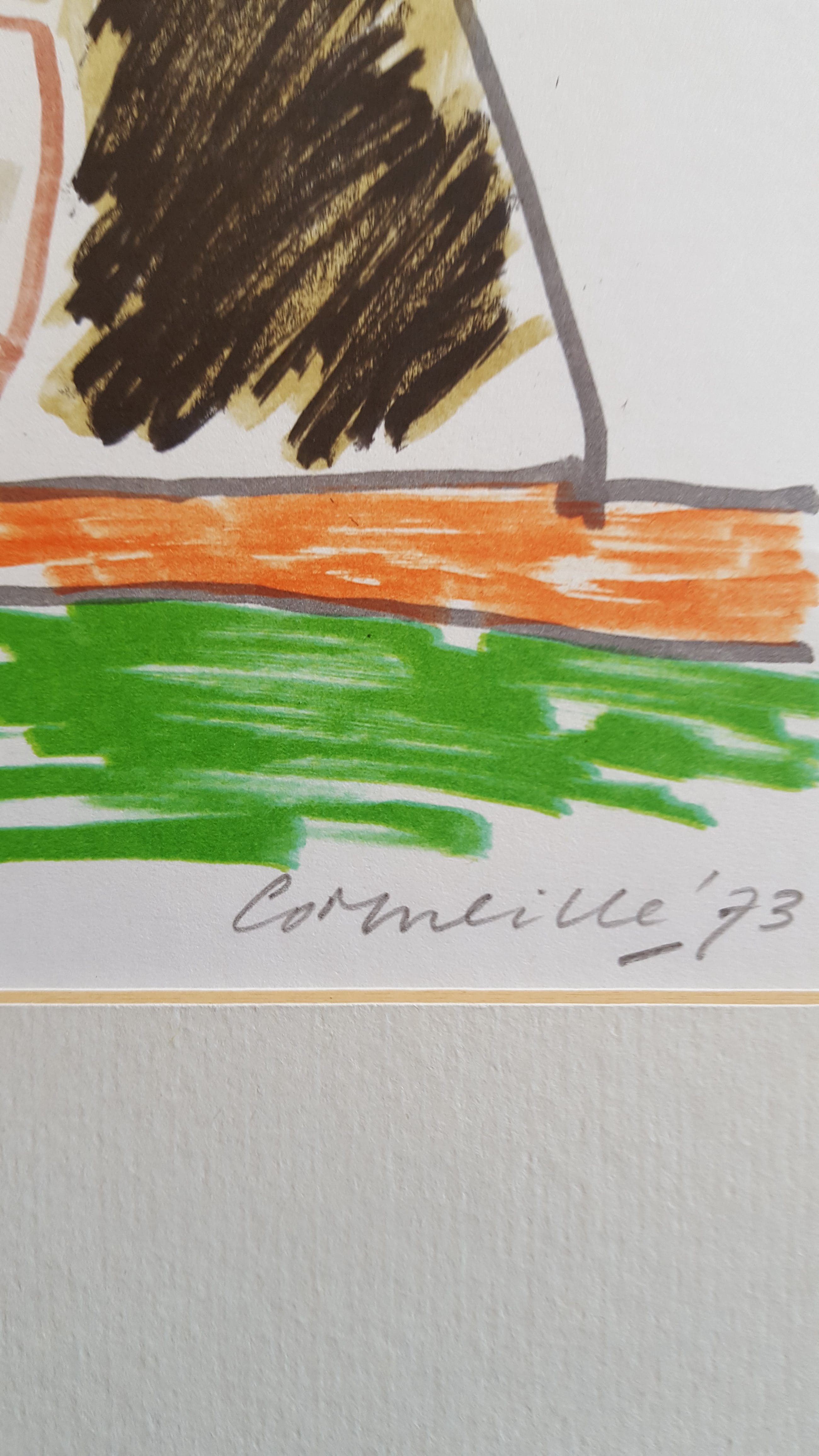 Zeefdruk van Corneille uit 1973 in passe-partout Jaar: 1973 Afmeting: 32.5 x 23.5 cm. Passe-partout: 55.5x41.5 Oplage 100 exemplaren. Nummer73 Handgesigneerd ,genummerd en geannoteerd in potlood. Goede conditie. Uitgegeven door la nuova foglio. Macerata, Italie Literatuur: Corneille "het complete grafische werk 1948-1975" ( Donkersloot) nr292 pagina 232.