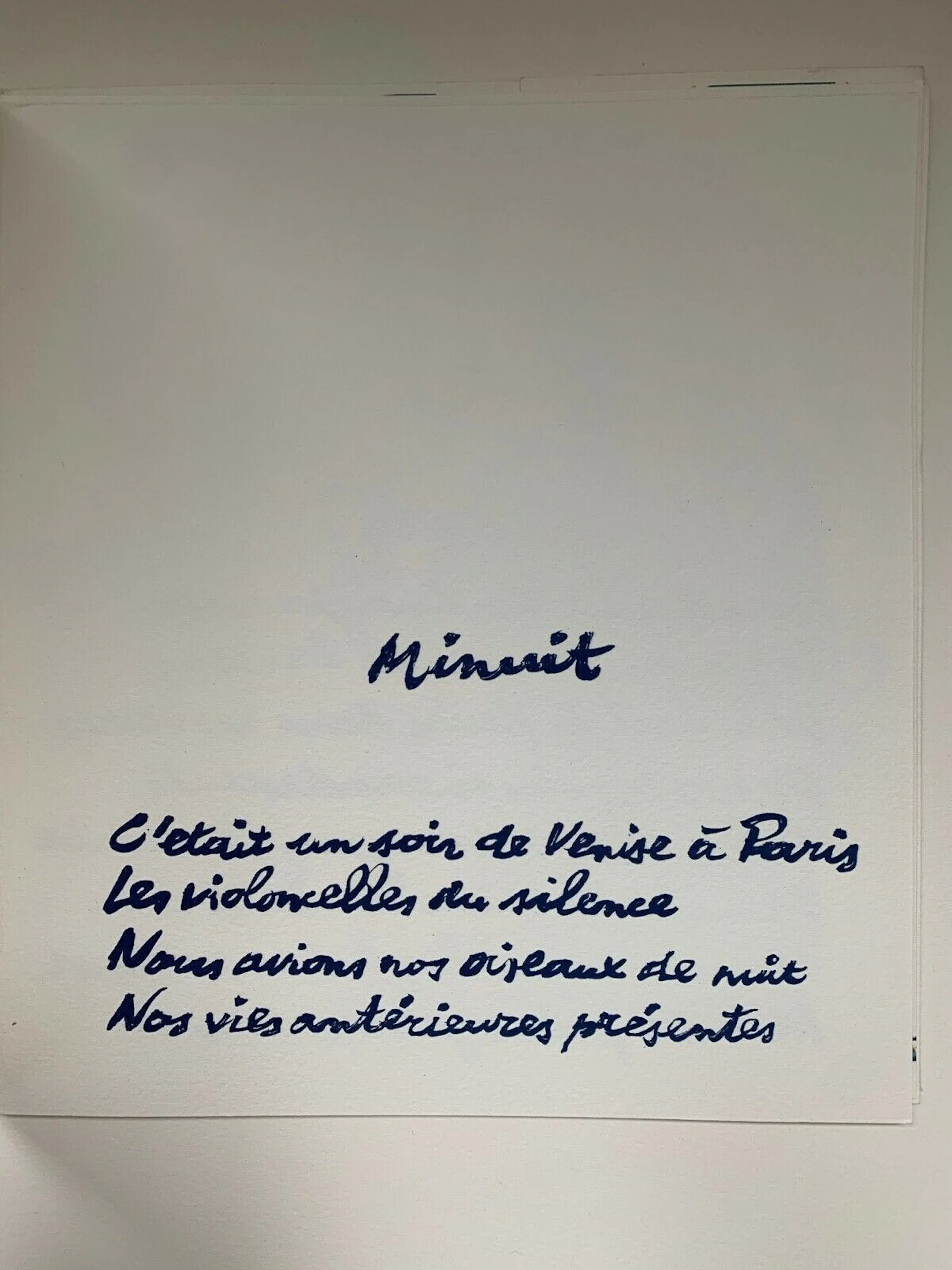"Het was een avond van Venetië naar Parijs. De cello's van de stilte we hadden onze nachtvogels onze vorige levens aanwezig ..."