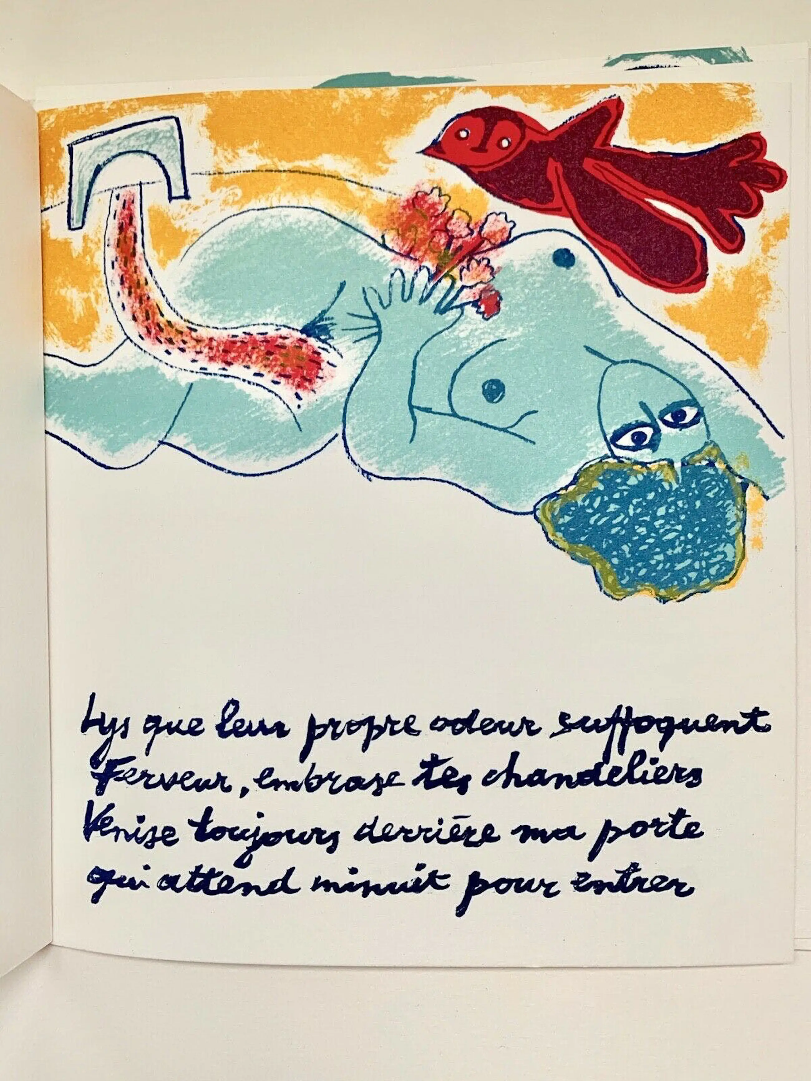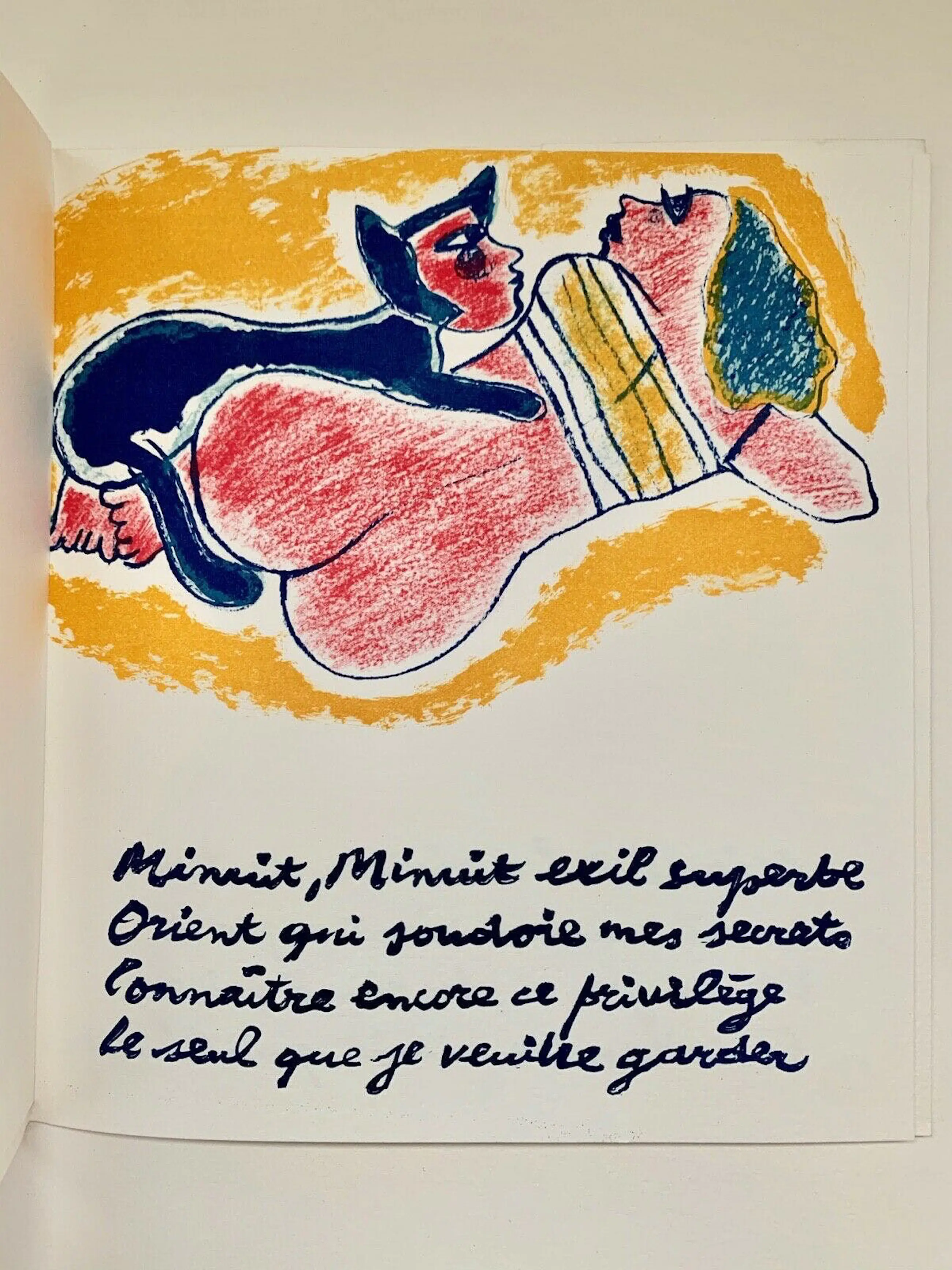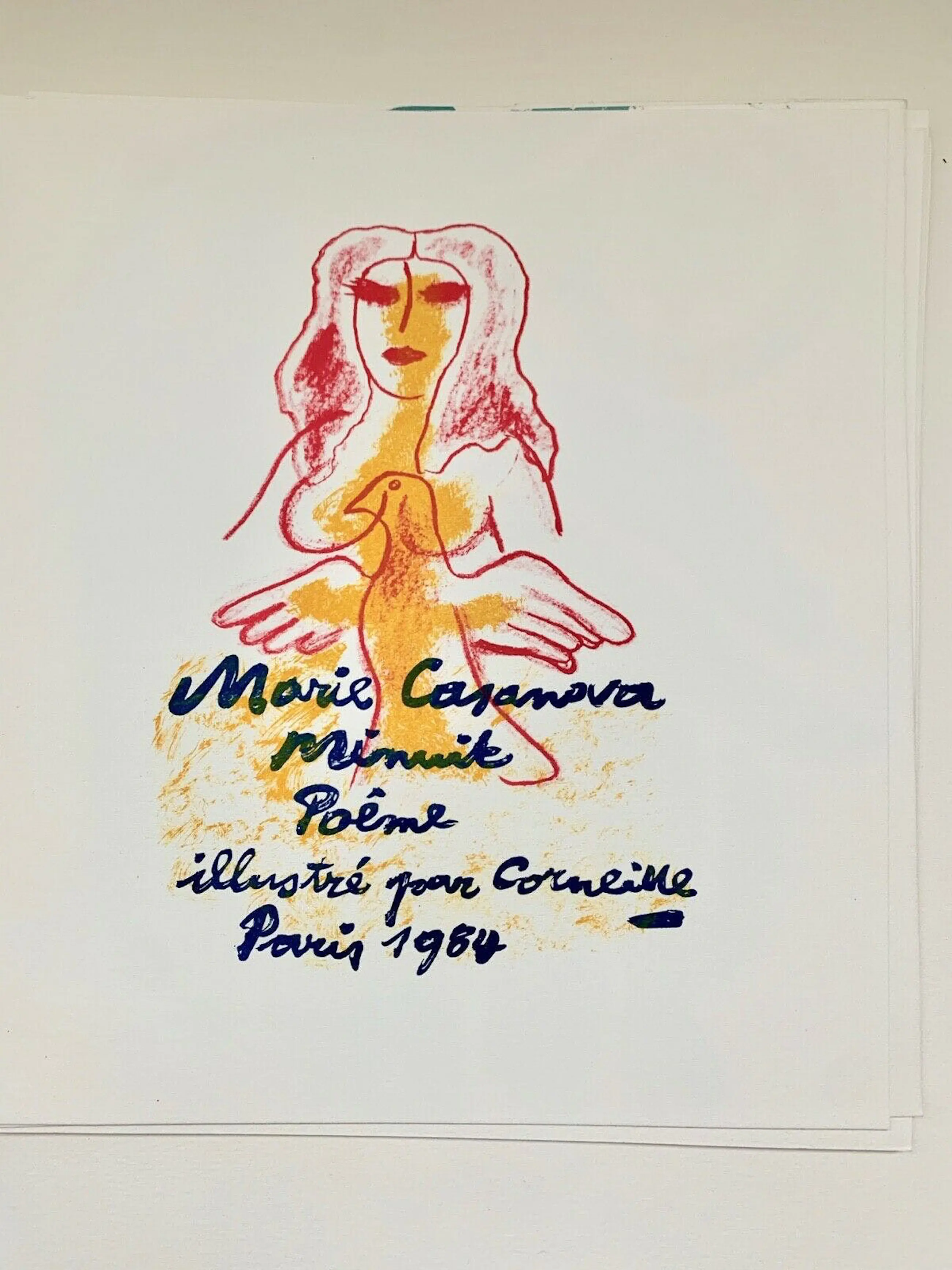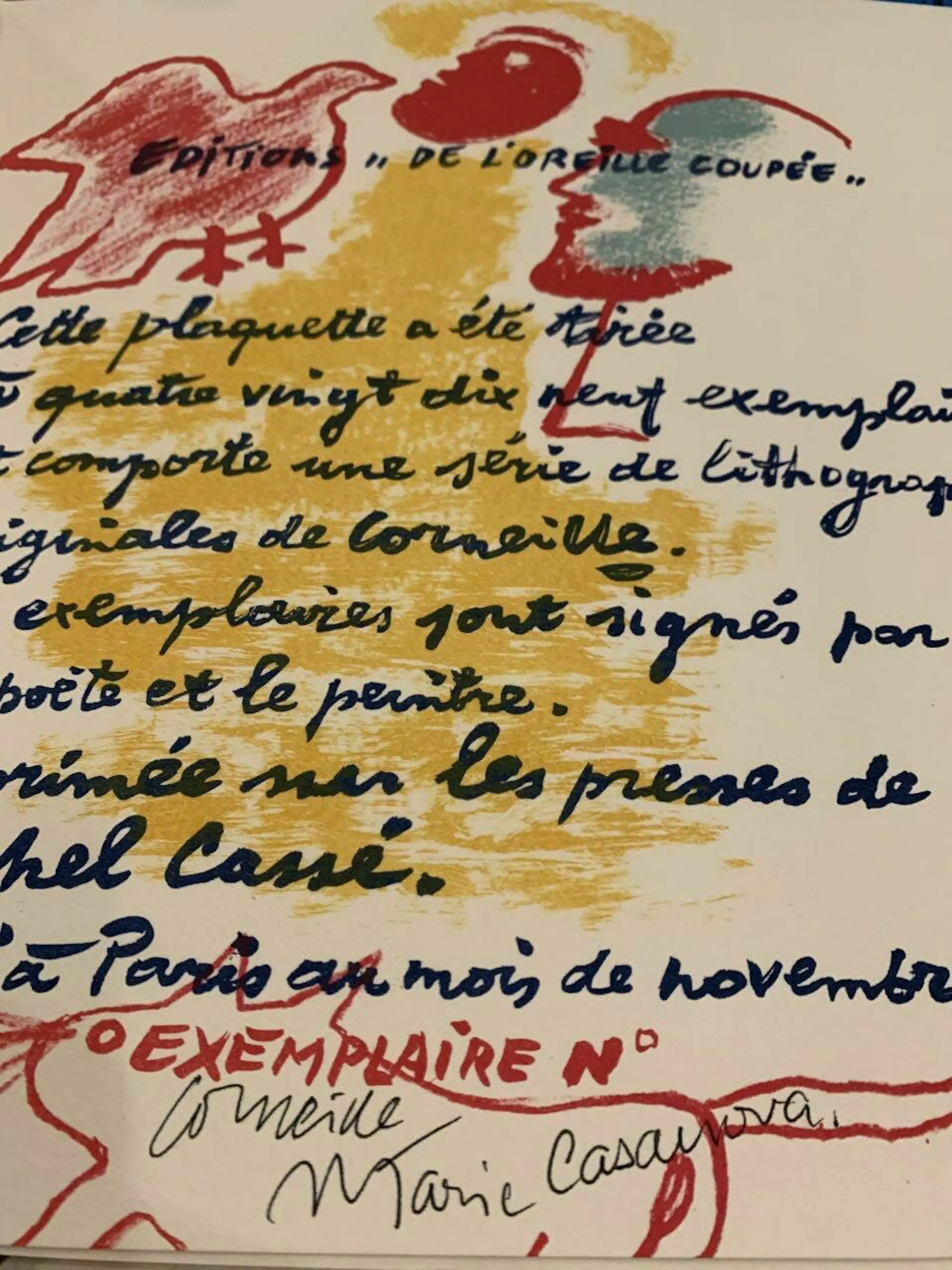 Boekje met gedichten, geïllustreerd door Corneille. Serie van 8 originele litho's, waarvan 3 op een volle pagina, door Guillaume Corneille (1922-2010) in een boekje gedrukt in oplage van 99 exemplaren, edities "De l'Oreille Coupée", gedrukt op de persen Michel Cassé, uitgegeven in Parijs in november 1984.