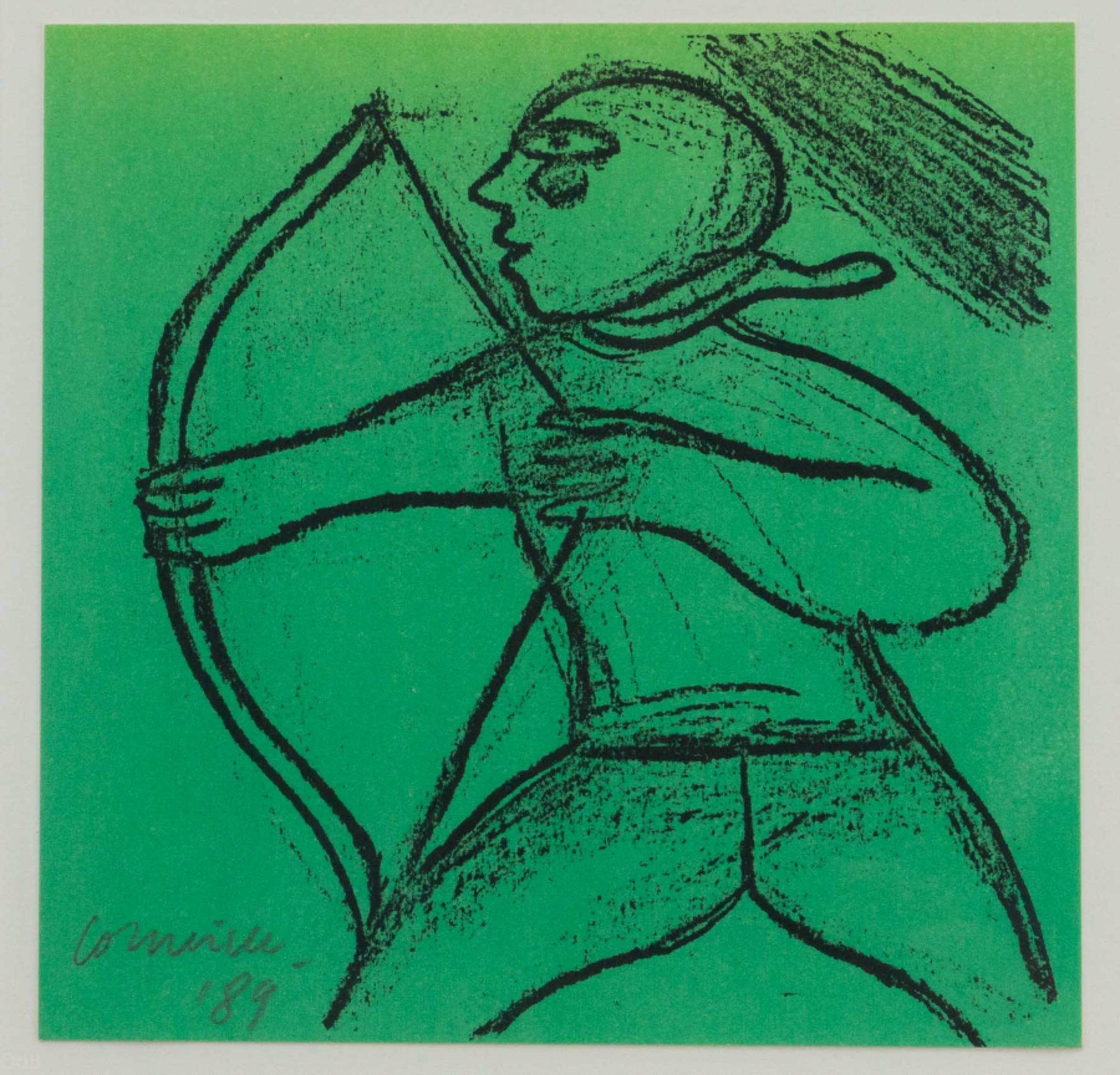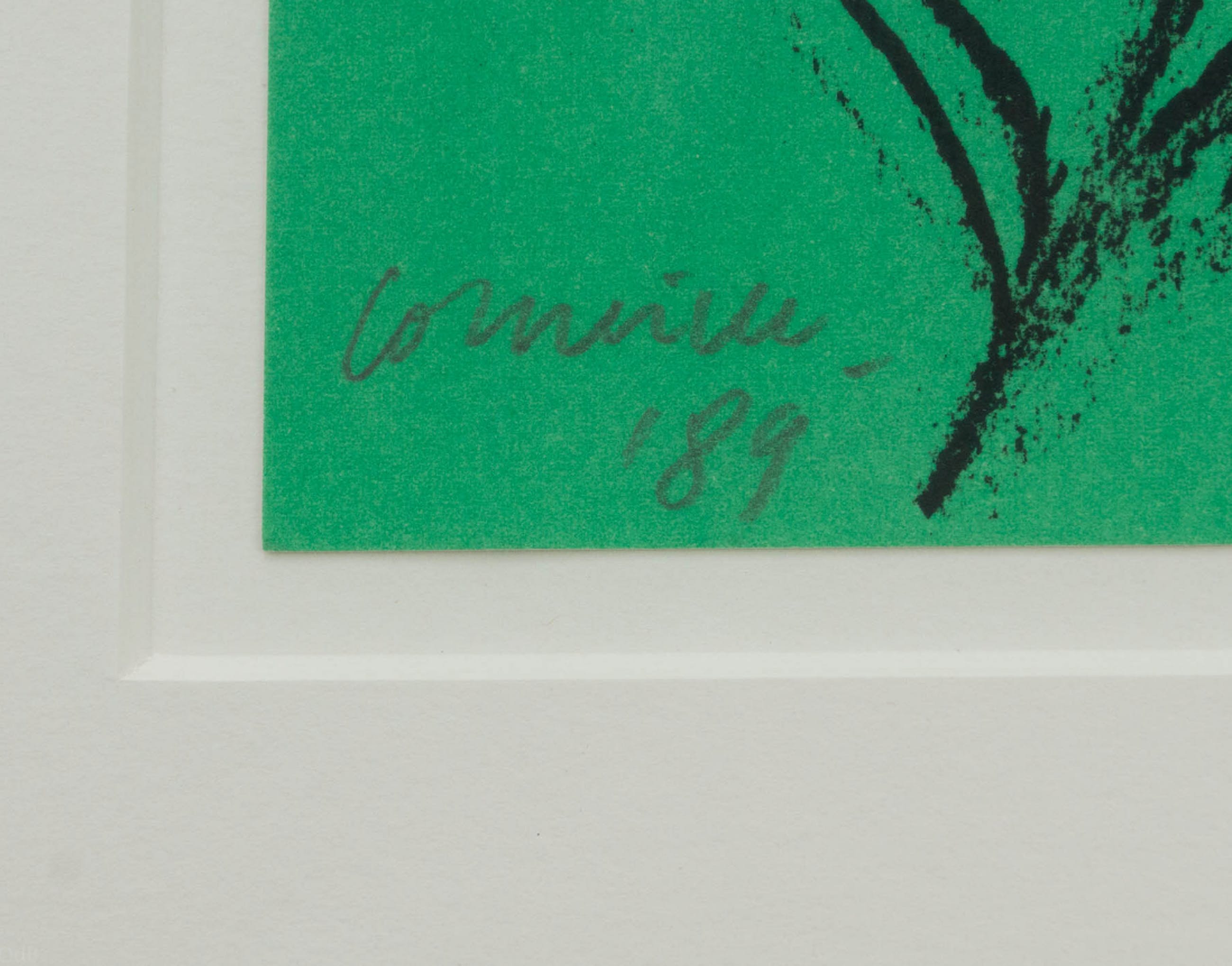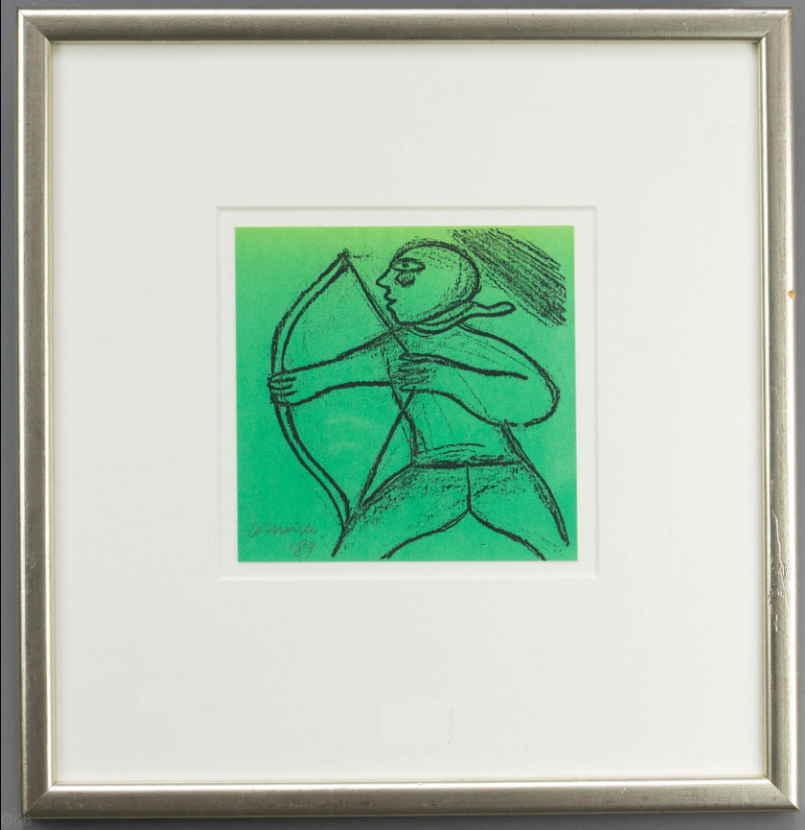 Zeefdruk van Corneille welke hij linksonder heeft gesigneerd. Gedateerd '89 en de zeefdruk zelf is een formaat van19 x 19 cm. Grootte werk in lijst is 46 x 44.5 cm, waarbij te melden is dat de lijst een beschadiging heeft. Niet veel voorkomend werkje dus bent u jarig op het einde van het jaar..... dit is uw kans.