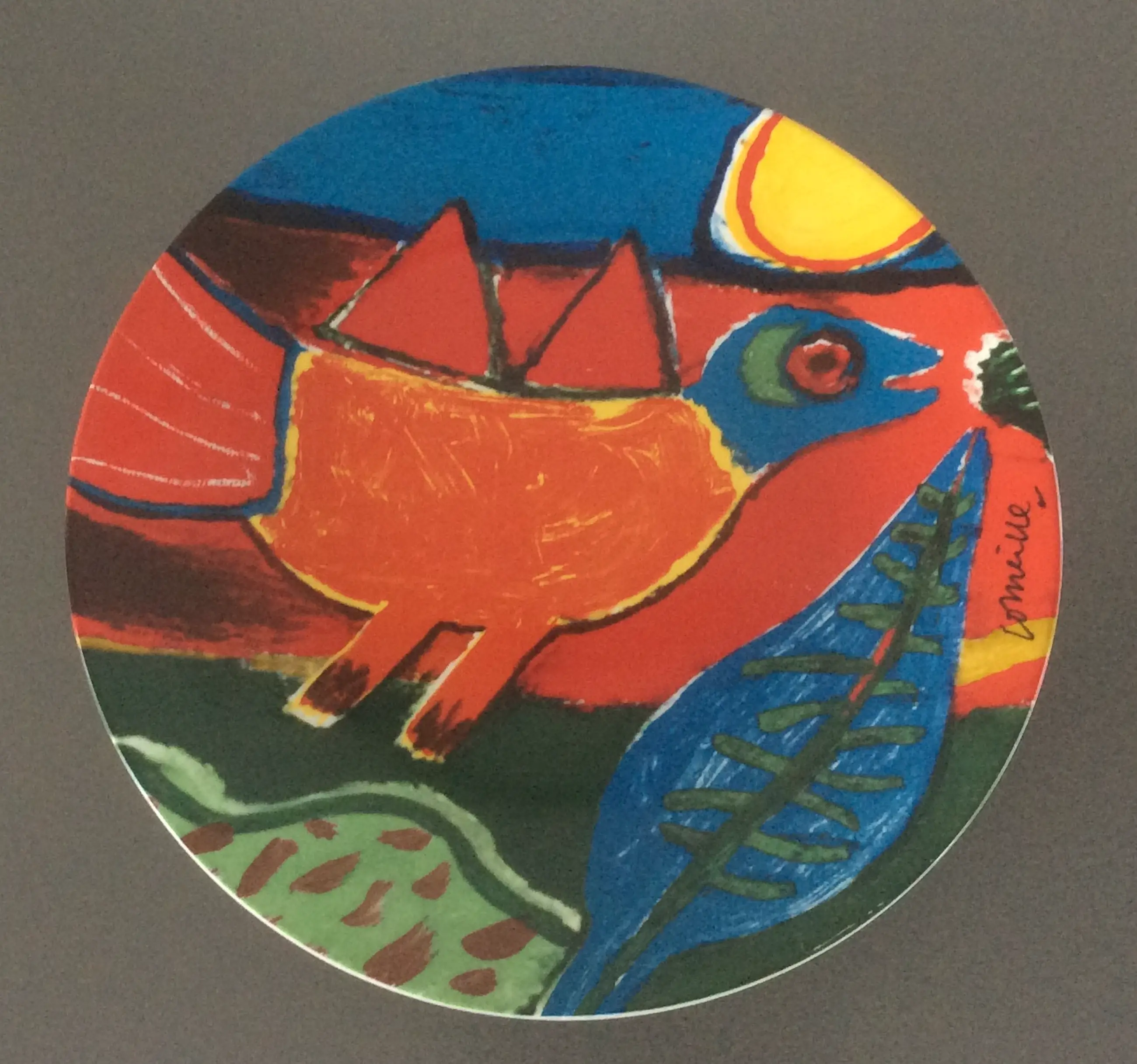 Een fraaie schotel met de afbeelding van een werk van Corneille met als titel L’été Commencant. Met signatuur aan voor- en achterzijde.