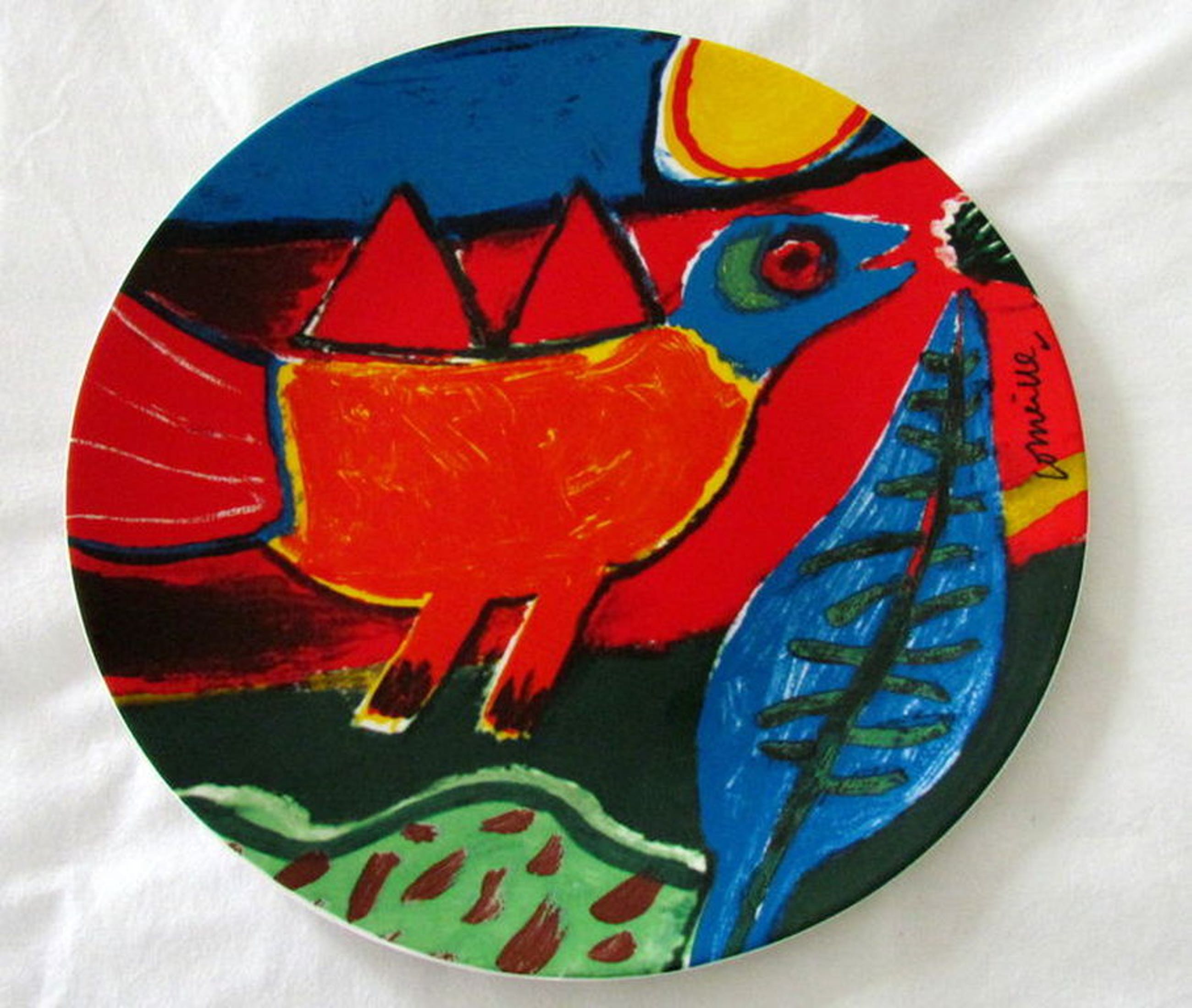 Fraai porseleinen bord, gesigneerd in de afbeelding en verso. 'L'été commencant', diameter 30 cm.