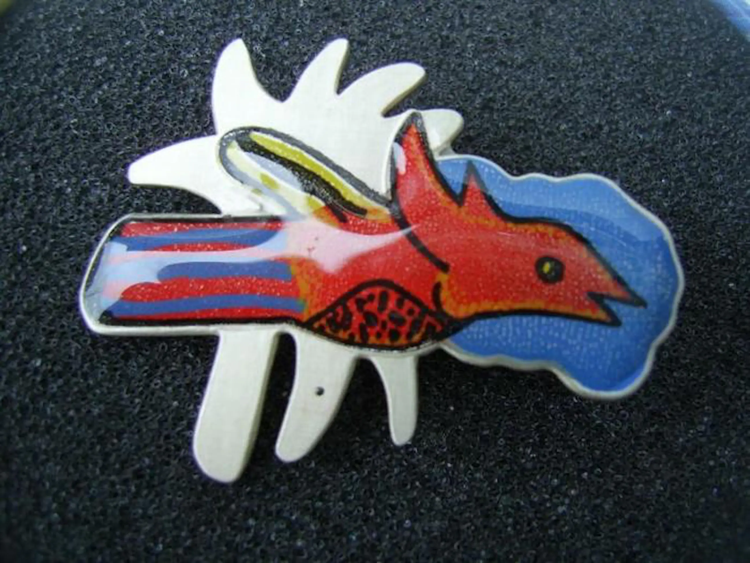 Zilveren broche met emaille Uitgegeven in de week vh sieraad in 2002 Gesigneerd en stempel zilver teken op achterkant