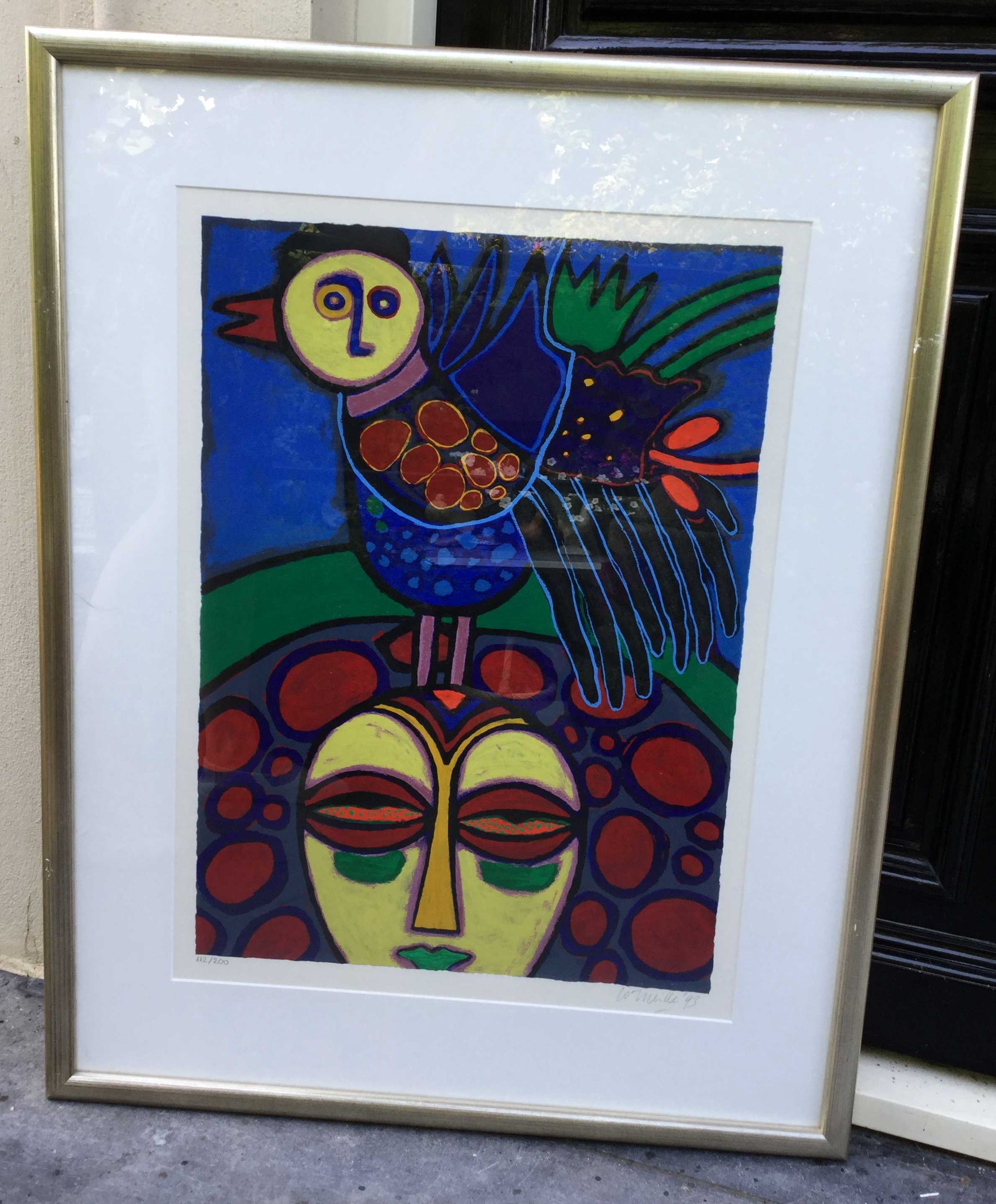 C3903W Corneille, vrouw met vogel, zeefdruk, oplage 112/200, r.o. gesigneerd en gedat 93