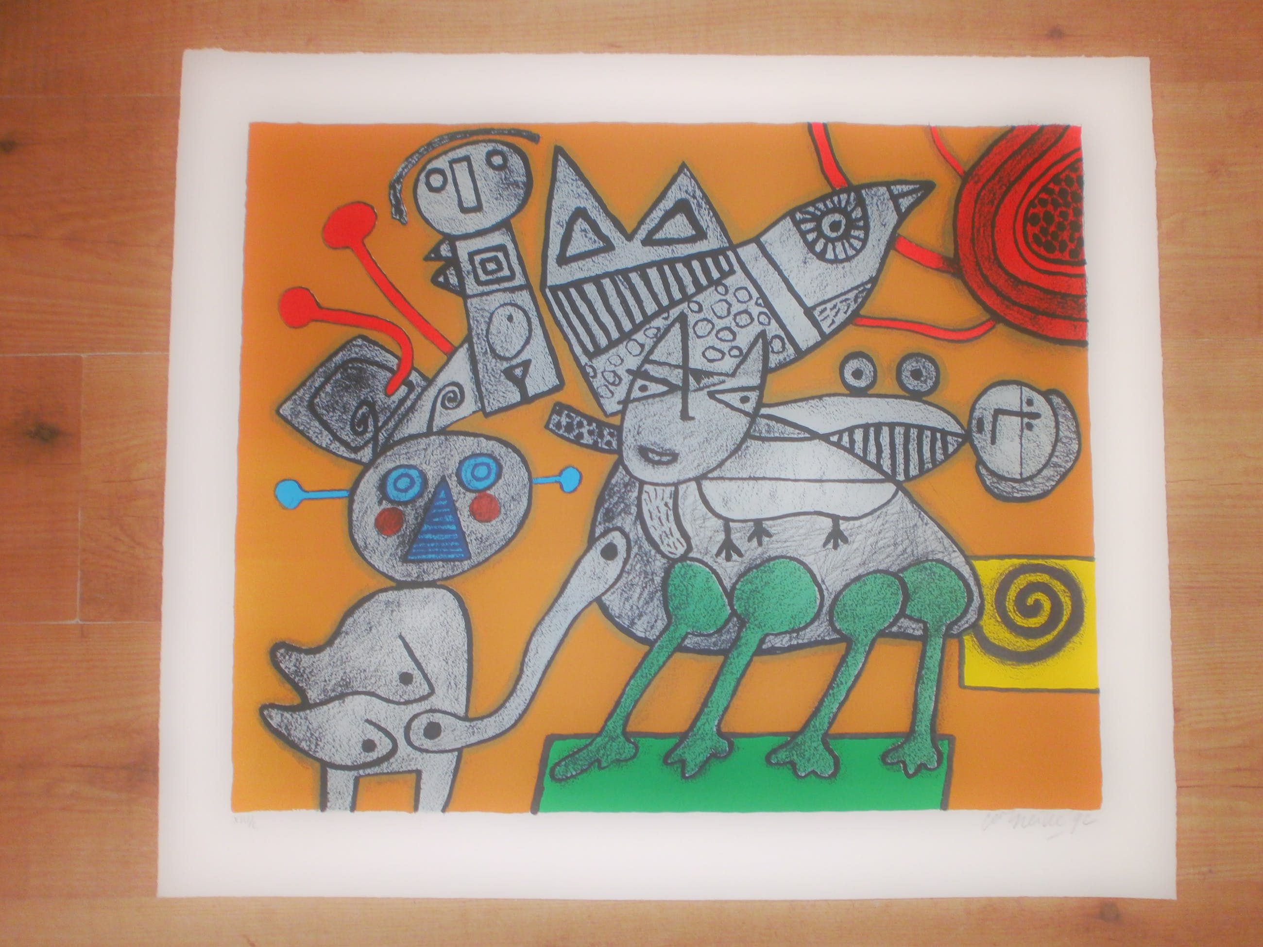 Zeer mooie grote zeldzame zeefdruk van corneille uit 1992 In werkelijke nieuwstaat,nog nooit ingelijst geweest. Slechts 50 exemplaren van gemaakt Uiteraard potlood gedateerd/gesigneerd en romeins genummerd XIV/L